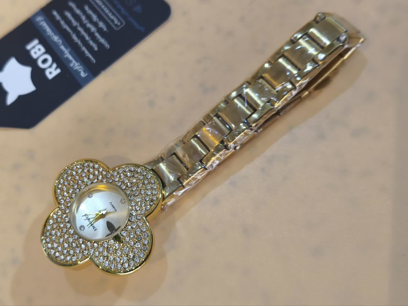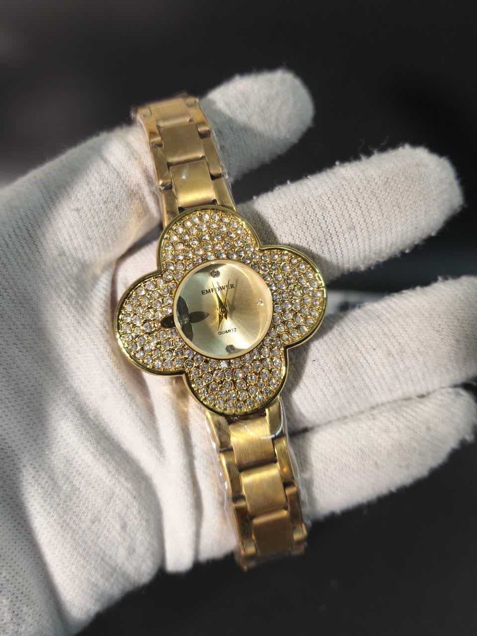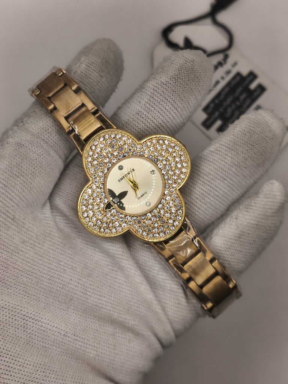 ساعت مچی زنانه امپاور EMPOWER طرح گل نگینی با بند و صفحه طلایی انتخابی لوکس و چشم نواز برای بانوان شیک پسند است. این مدل ارجینال شرکتی برند امپاور با موتور کوارتز دقت بالا و قاب استیل مقاوم طراحی شده و عقربه های شب تاب خوانایی مناسبی ایجاد می کند. طراحی جذاب طرح گل با فرم صفحه گل و صفحه نگین در کنار بند استیل ضد زنگ توپُر و سنگین با رنگ ثابت جلوه ای خاص به دستان شما می بخشد. شیشه معدنی ضد خش بند ضد حساسیت پوستی قفل کلیپسی دو قفله ضامن دار و خاصیت ضد آب راحتی و دوام را تضمین می کند. توجه داشته باشید عکس اول تزئینی می باشد و این محصول زیبا از فروشگاه اینترنتی روبی مد قابل تهیه است.