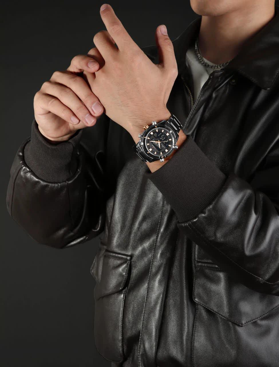 ساعت مچي کرنوگراف مردانه نيوي فورس NAVIFORCE مدل Nf8081 مشکي موتور ژاپني
