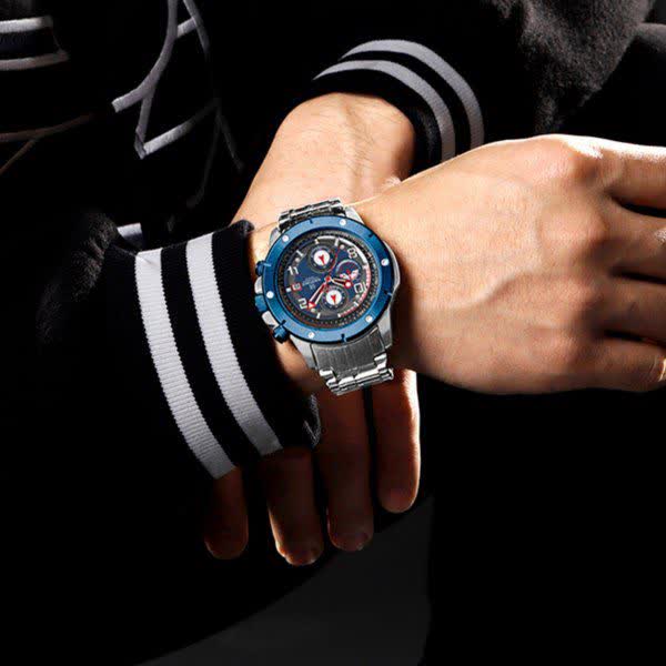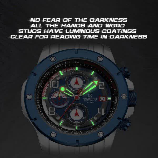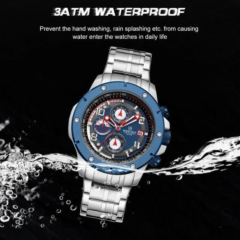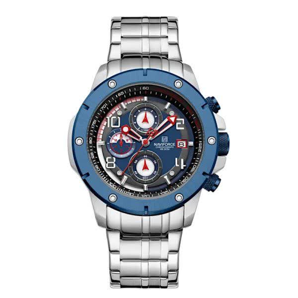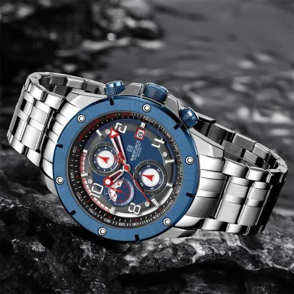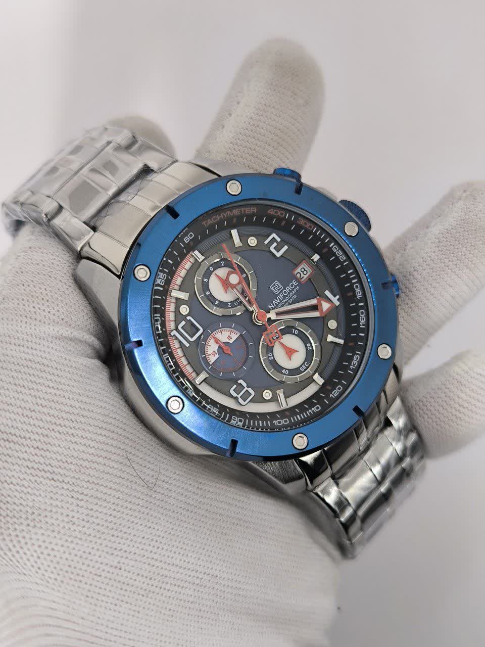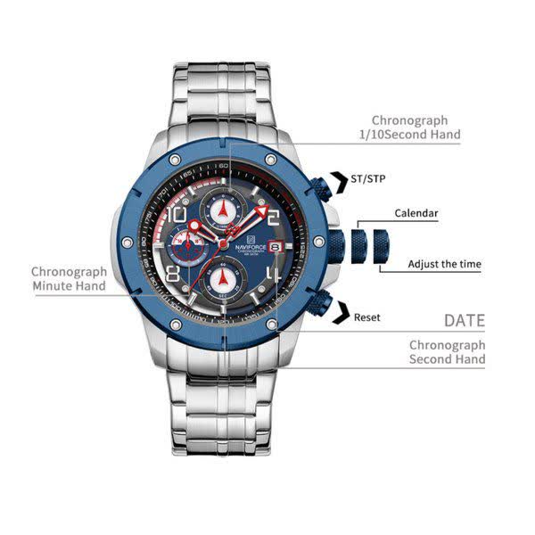 ساعت مچي کرنوگراف مردانه نيوي فورس NAVIFORCE مدل Nf8081 صفحه آبي موتور ژاپني