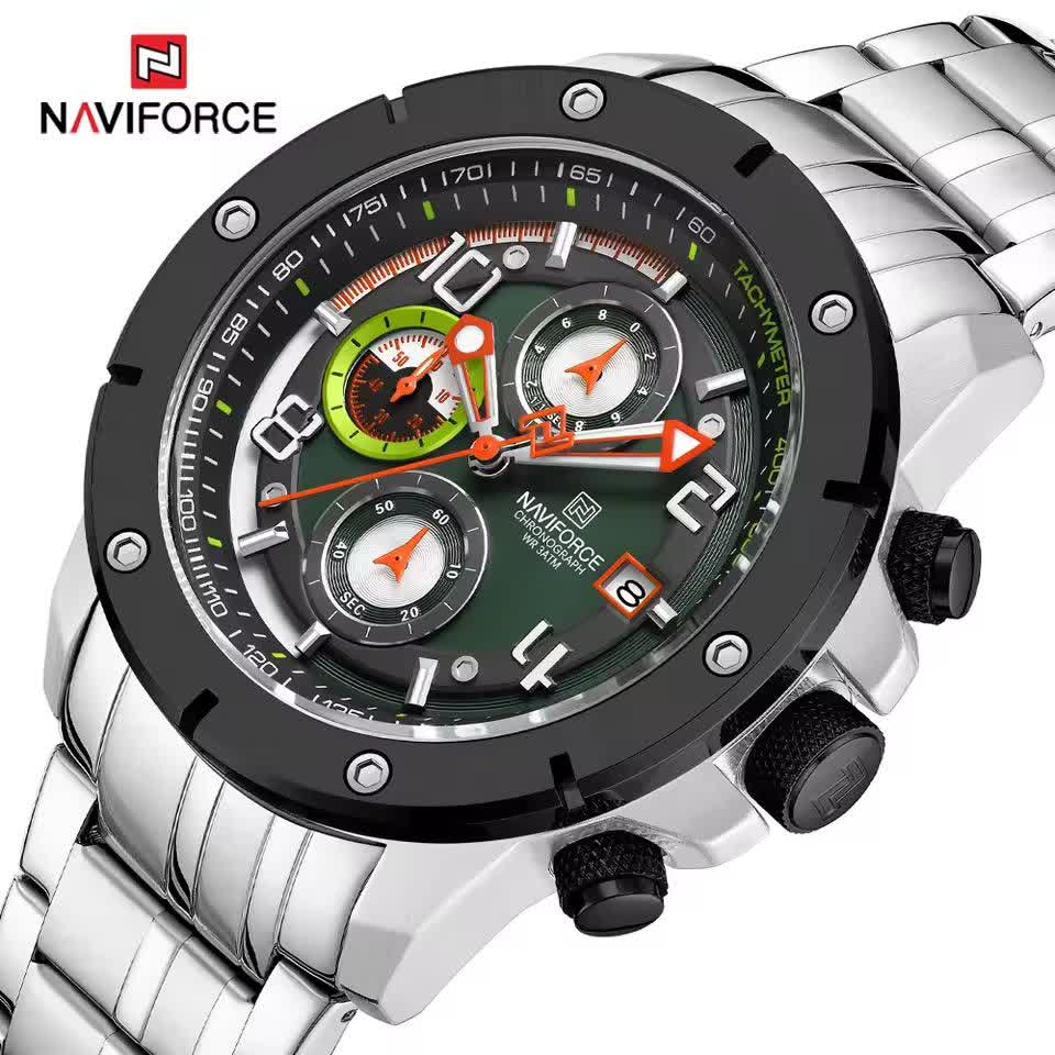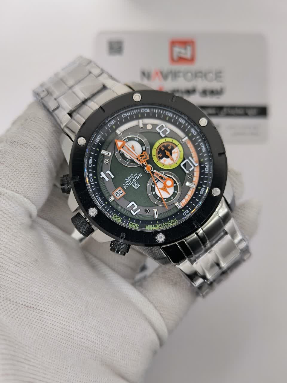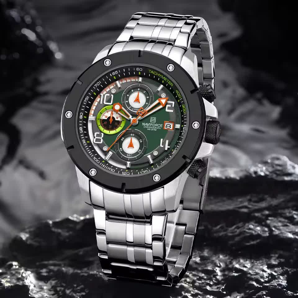 ساعت مچي کرنوگراف مردانه نيوي فورس NAVIFORCE مدل Nf8081 صفحه سبز موتور ژاپني