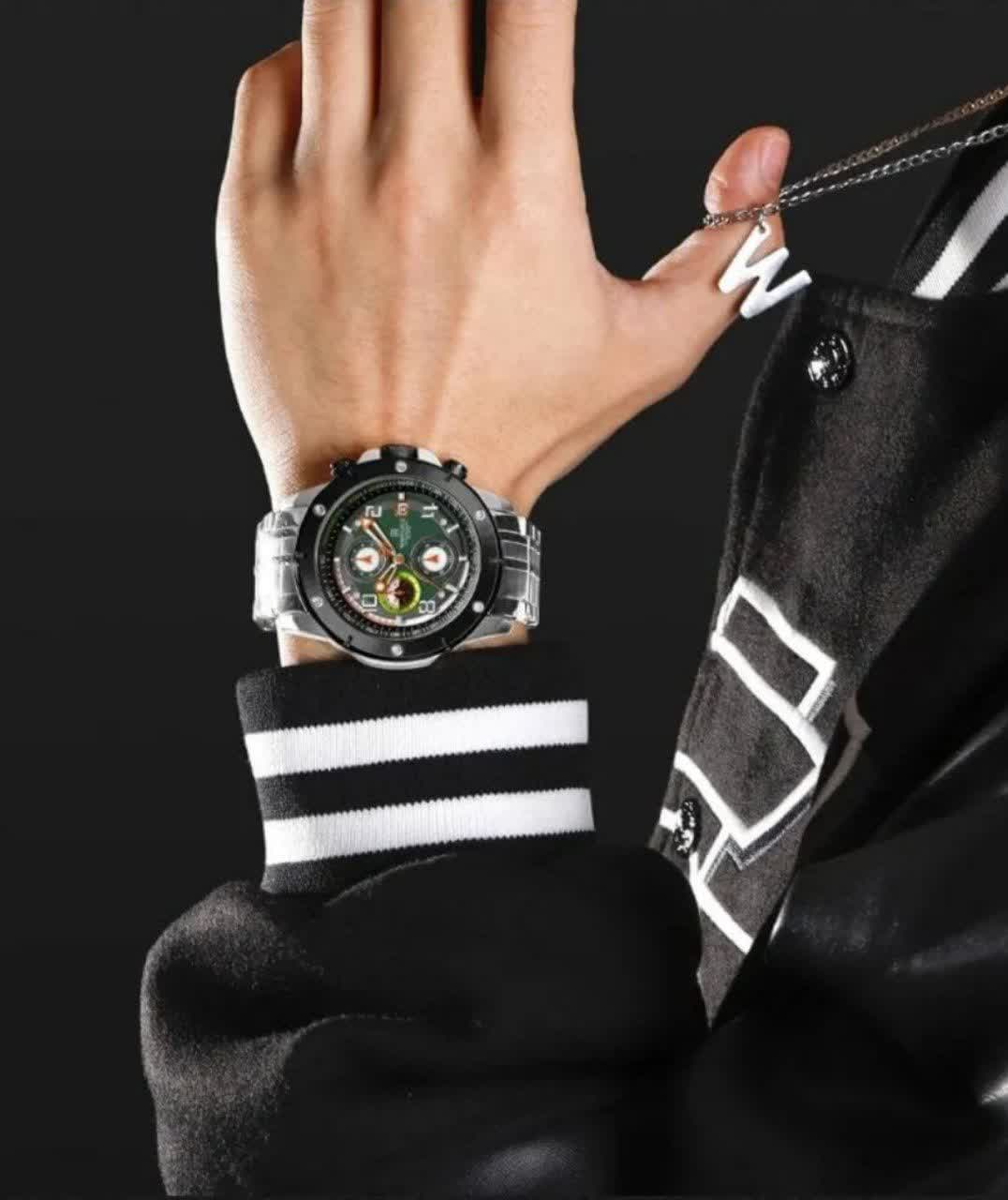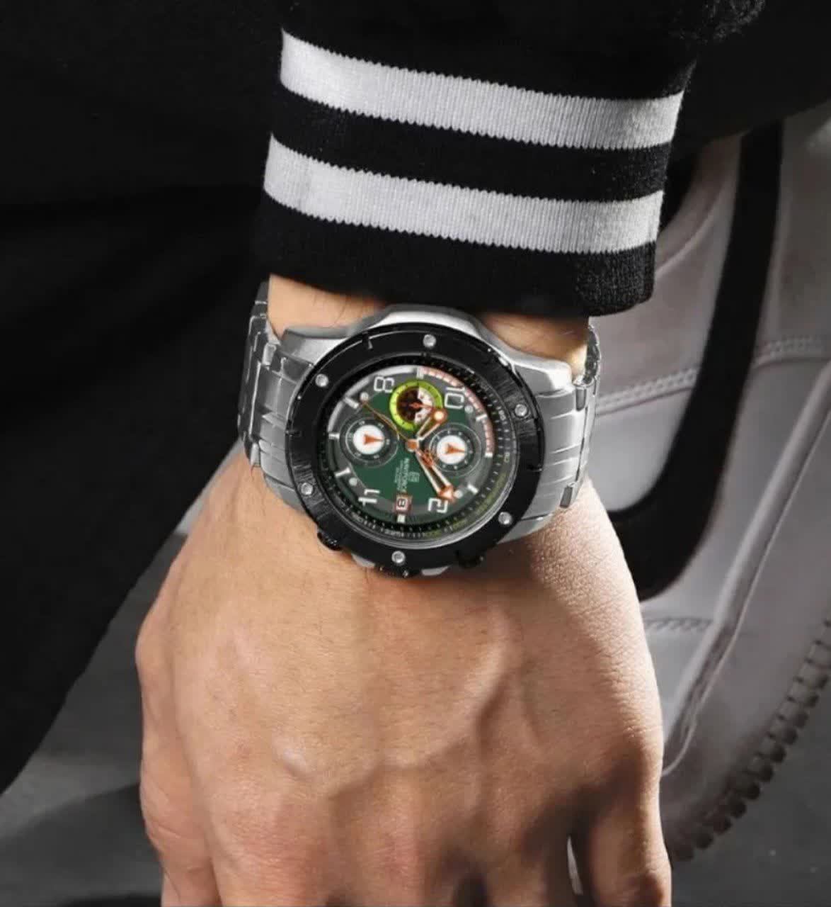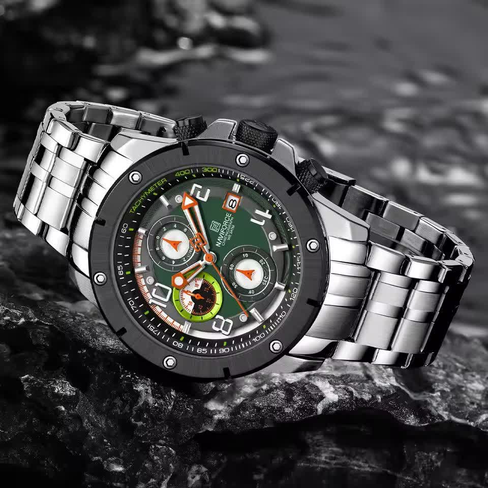 ساعت مچي کرنوگراف مردانه نيوي فورس NAVIFORCE مدل Nf8081 صفحه سبز موتور ژاپني