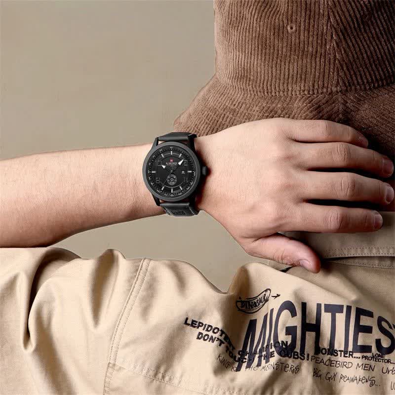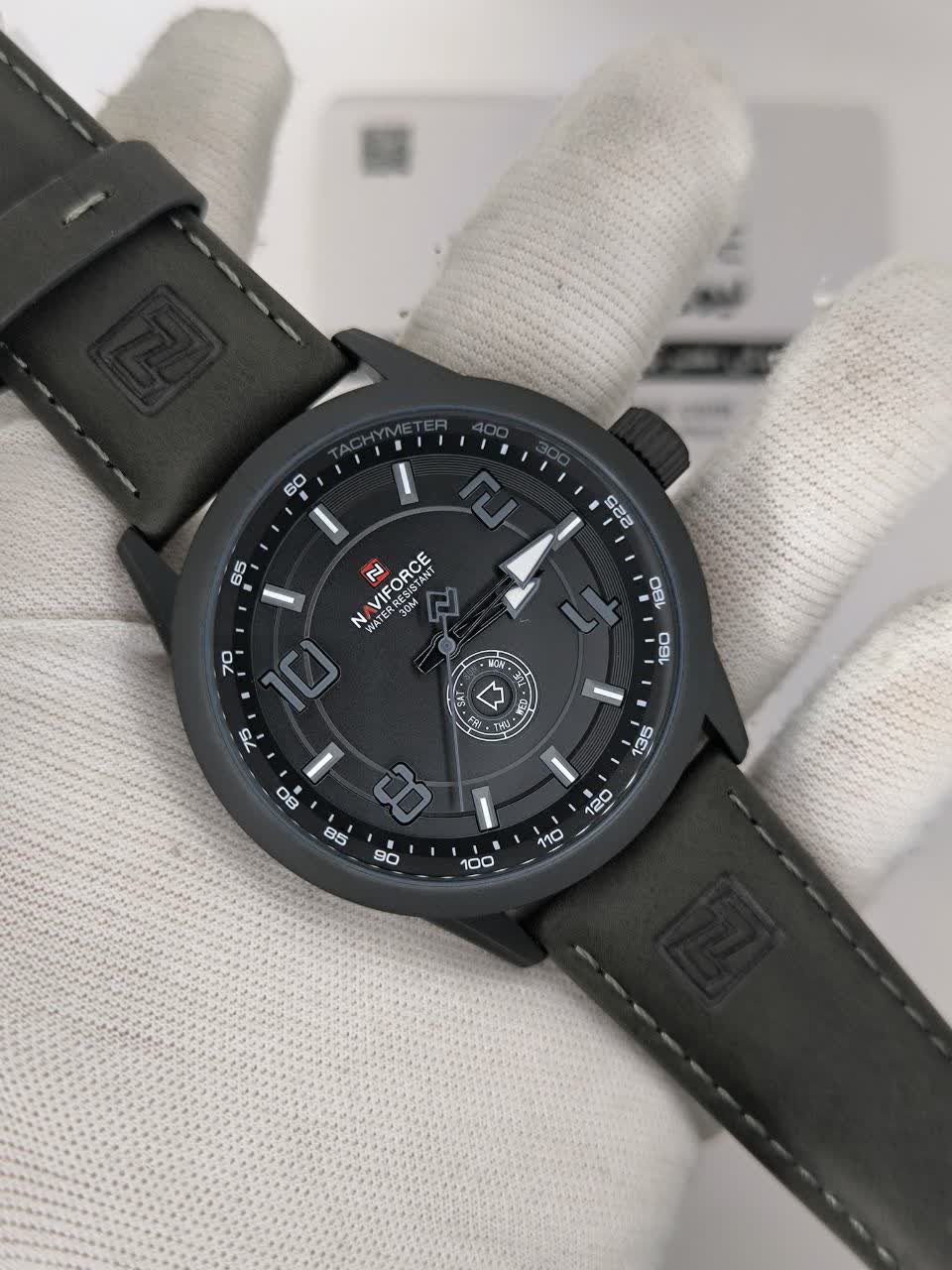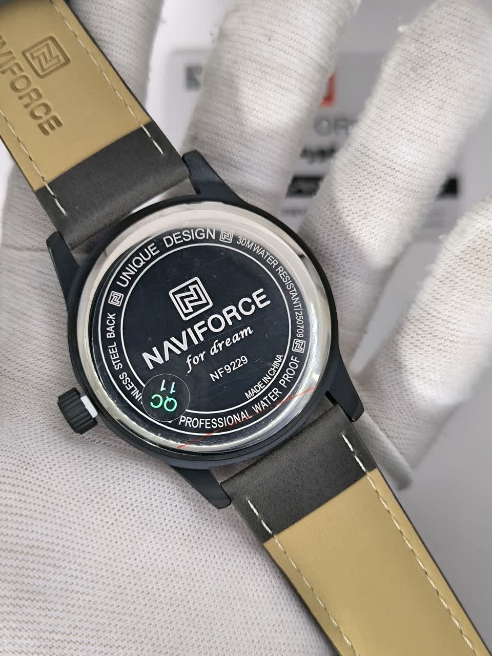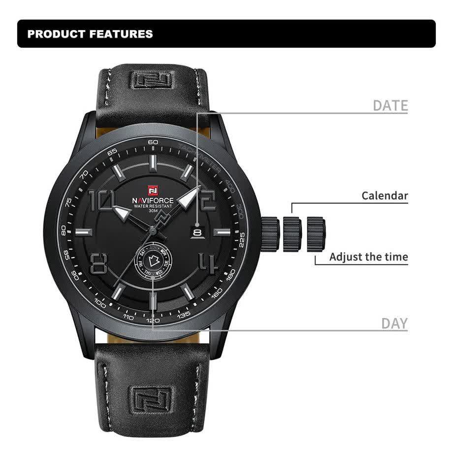 ساعت مچی عقربه ای مردانه نیوی فورس NAVIFORCE مدل Nf9229 با بند چرمی مشکی دور دوخت و صفحه مشکی طراحی ساده و شیک مناسب استایل های رسمی و روزمره دارد. این مدل به موتور ژاپنی کوارتز دقیق مجهز شده و با تقویم کاربردی عقربه های شب نما و خاصیت ضد آب کارایی بالایی ارائه می دهد. شیشه معدنی مقاوم بند ضد تعریق و رنگ ثابت دوام و راحتی استفاده را تضمین می کند. دور قاب استیل رنگ ثابت به همراه قفل سگکی کمربندی جلوه ای کلاسیک و مطمئن به ساعت می بخشد. این ساعت به صورت اورجینال همراه با جعبه و کارت گارانتی و گارانتی نیوی فورس ایران از فروشگاه اینترنتی روبی مد عرضه می شود.