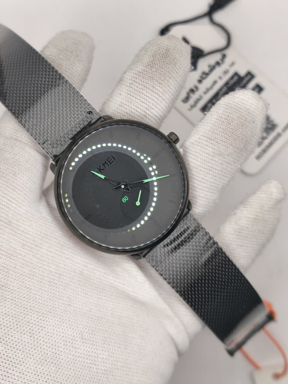 ساعت مچی مردانه اسکمی SKMEI مدل 9185 با بند حصیری انتخابی خاص و شیک برای استایلهای تیره و رسمی است. این مدل با بند مشکی صفحه مشکی و عقربه سبز جلوهای متفاوت دارد و به صورت ارجینال ضمانتی از برند اسکمی توسط فروشگاه اینترنتی روبی مد ارائه میشود. موتور کوارتز دقیق عقربهای به همراه زیر ثانیه مجزا دقت بالایی را تضمین میکند و عقربه و صفحه شبتاب خوانایی عالی در شب دارند. قاب استیل مقاوم بند استیل حصیری زنجیری بافت رنگ ثابت ضد زنگ و ضد حساسیت در کنار صفحه ضد خط و خش و مقاومت در برابر آب کیفیت ساخت بالایی را نشان میدهد. فرم صفحه دایرهای و جعبه هدیه همراه این ساعت را به یک ست عالی برای لباسهای مشکی تبدیل کرده است.