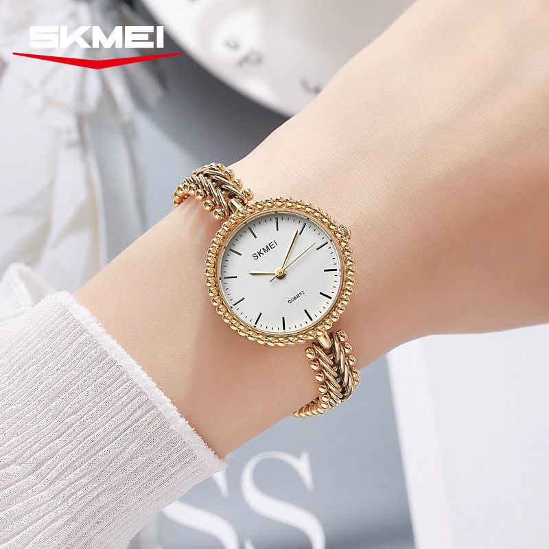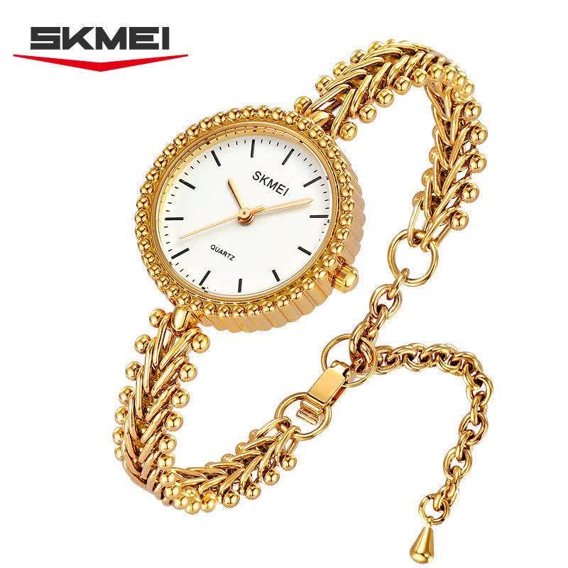 ساعت مچی دستبندی زنانه اسکمی SKMEI مدل 2548 زنجیری یک انتخاب خاص و متفاوت برای خانمهایی است که به جزئیات اهمیت میدهند. این مدل با بند طلایی و صفحه سفید به صورت ارجینال ضمانتی از برند اسکمی توسط فروشگاه اینترنتی روبی مد ارائه میشود. موتور کوارتز عقربهای با دقت بالا به همراه عقربه و صفحه شبتاب کارایی و زیبایی را همزمان فراهم میکند. قاب استیل مقاوم بند استیل رنگ ثابت ضد حساسیت با طراحی دستبندی بافت جذاب در کنار صفحه ضد خط و خش و مقاومت در برابر آب کیفیت بالای این ساعت را نشان میدهد. فرم صفحه دایرهای و جعبه هدیه همراه آن را به یکی از کمیابترین و خاصترین ساعتهای زنانه تبدیل کرده است.