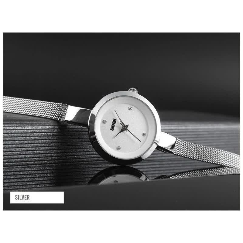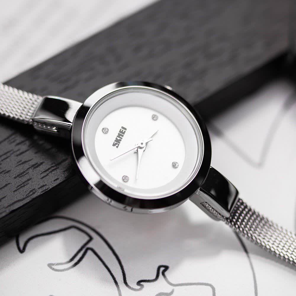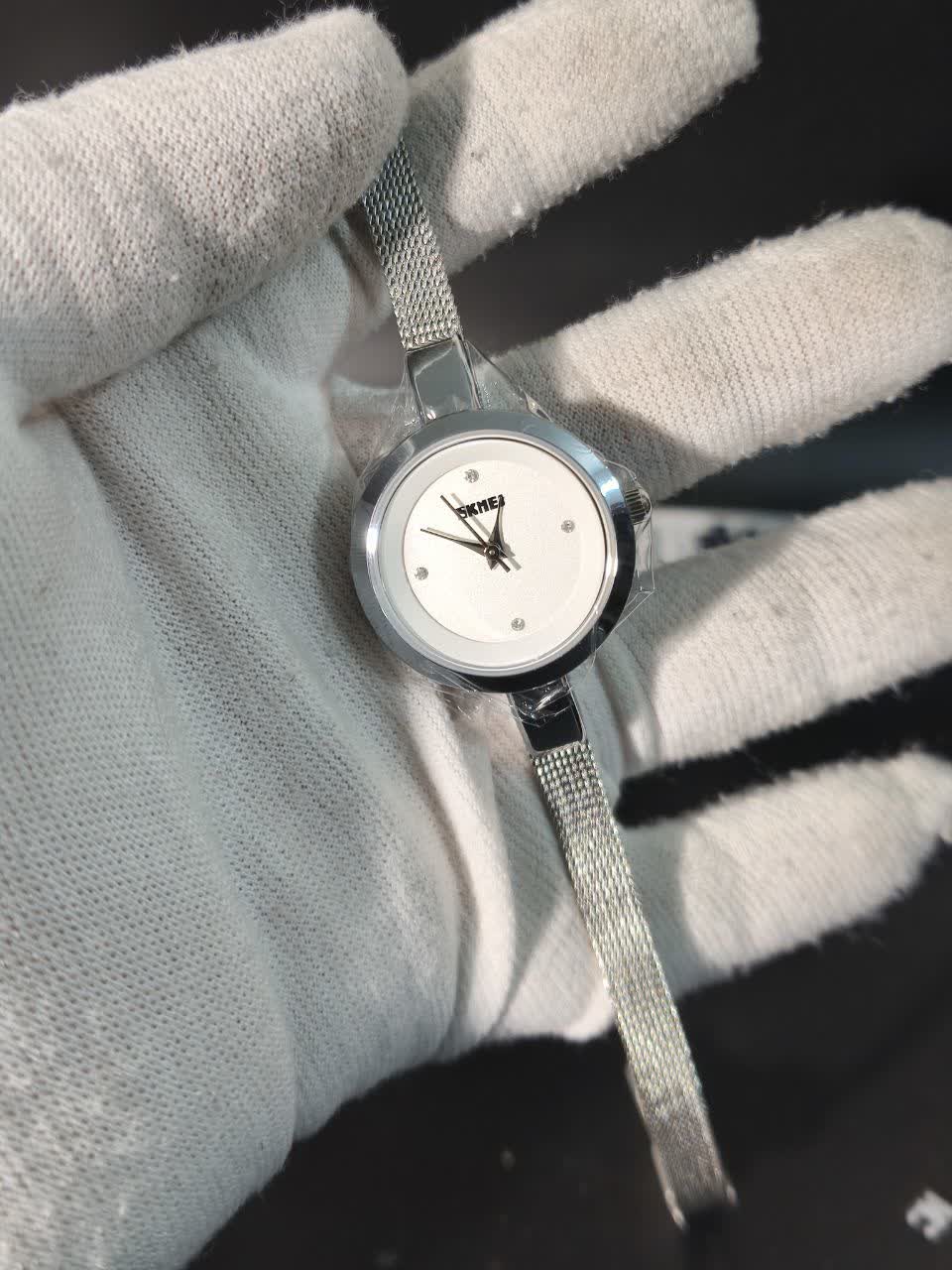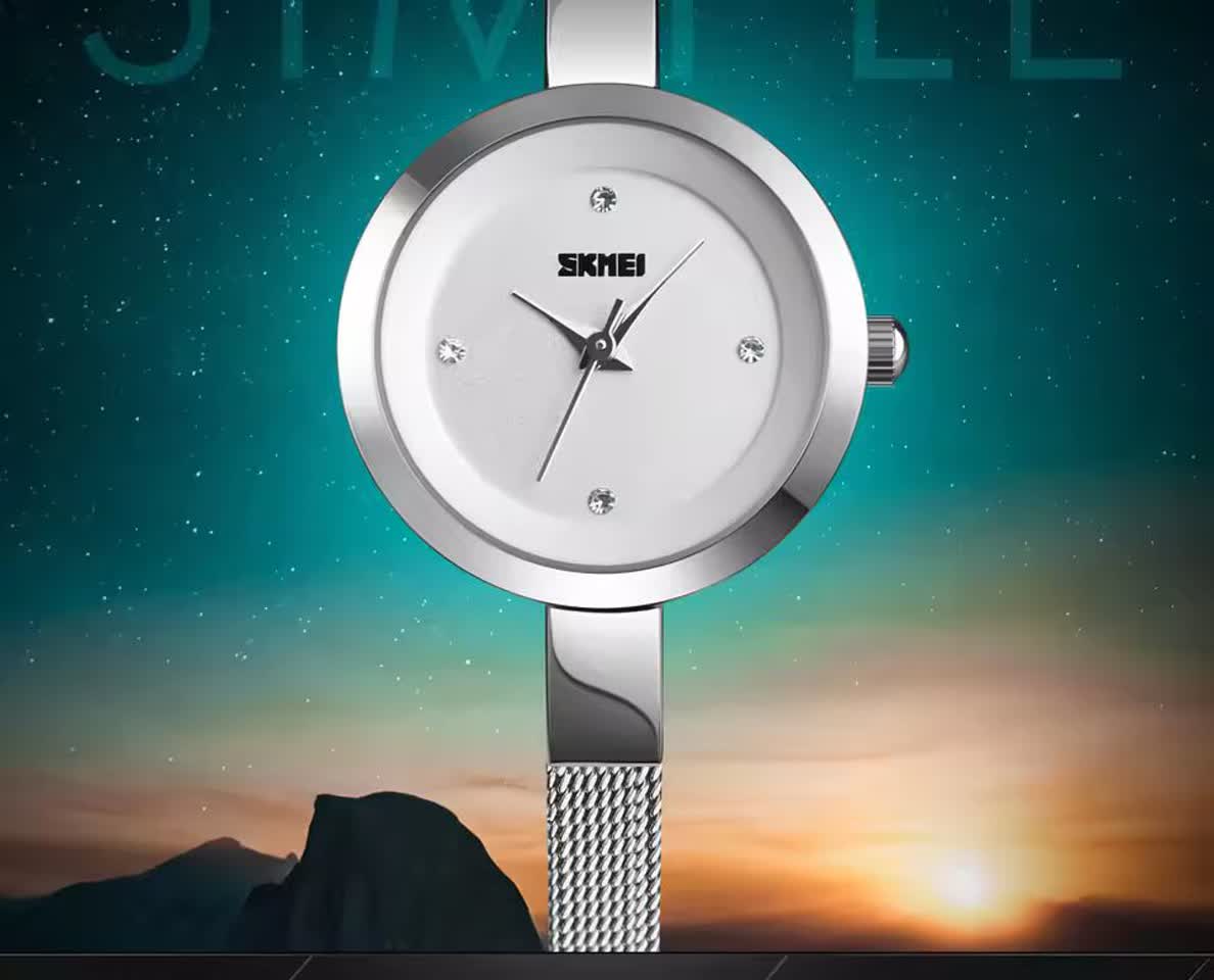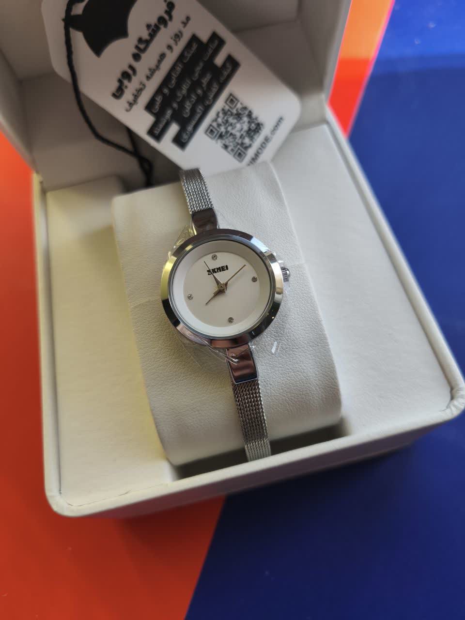 ساعت مچی دستبندی زنانه اسکمی SKMEI مدل 1390 اورجینال انتخابی مینیمال و شیک برای استفاده روزمره و رسمی است. این مدل با بند استیل حصیری و صفحه سفید به صورت ارجینال ضمانتی از برند اسکمی توسط فروشگاه اینترنتی روبی مد ارائه میشود. موتور کوارتز عقربهای با دقت بالا در کنار عقربه و صفحه شبتاب خوانایی مناسب در شب را فراهم میکند. قاب استیل مقاوم بند استیل رنگ ثابت ضد زنگ و ضد حساسیت به همراه صفحه ضد خط و خش و مقاومت در برابر آب کیفیت و دوام این ساعت را تضمین میکند. فرم صفحه دایرهای کلاسیک و جعبه هدیه همراه آن را به انتخابی ساده اما شیک و جذاب تبدیل کرده است.
