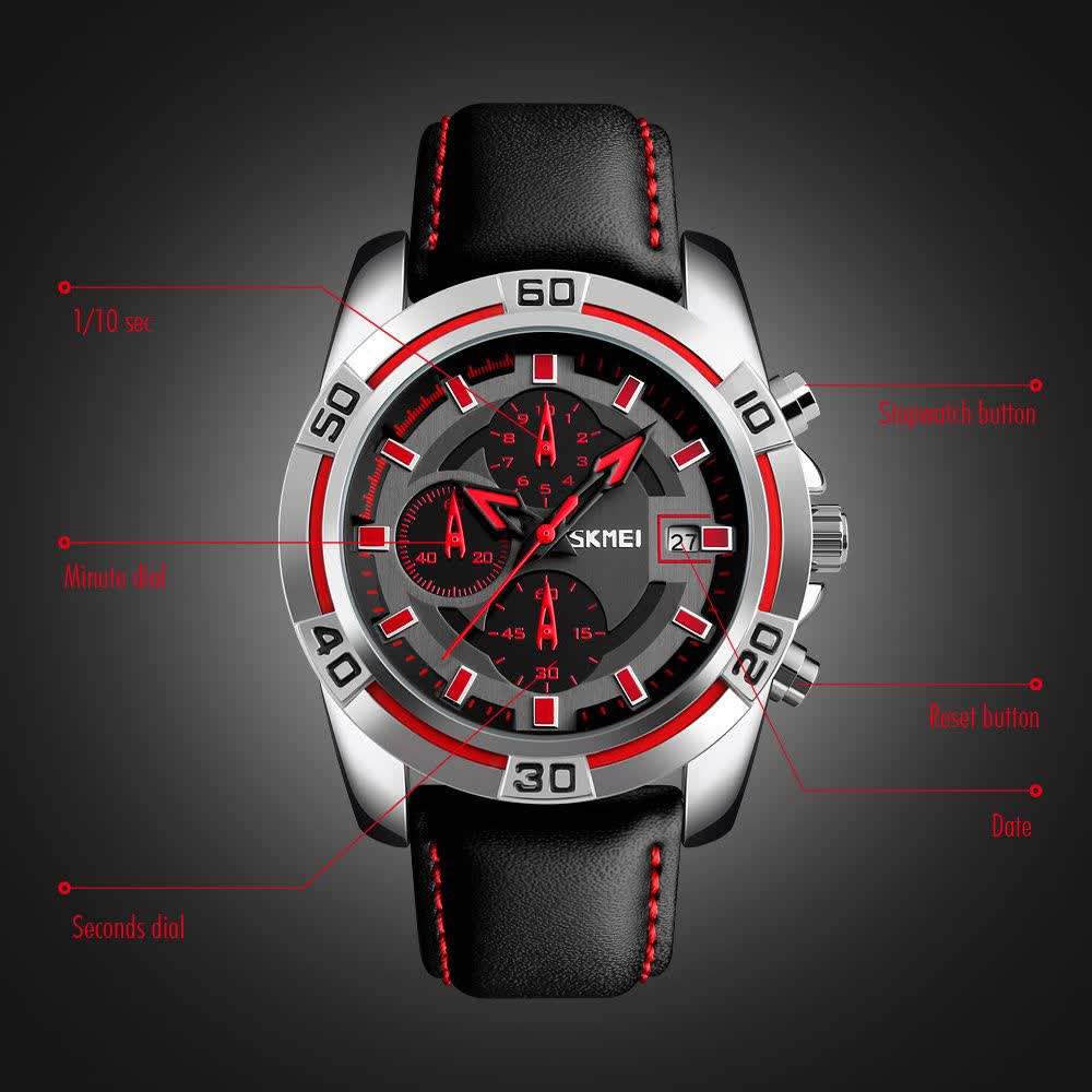 ساعت مچی کرنوگراف مردانه اسکمی مدل 9156 SKMEI با بند چرمی اورجینال بیشتر از یک ساعت است و ترکیبی از کیفیت و جذابیت بینظیر را ارائه میدهد. این مدل با بند مشکی و صفحه مشکی و قرمز دایرهای دارای سه موتور کرنوگراف تقویم دار قاب استیل مقاوم شیشه سافایر ضد خط و خش و خاصیت ضد آب است. عقربه و صفحه شب نما بند چرمی دور دوخت ضد حساسیت با قفل سگکی کمربندی راحتی و دوام بالایی فراهم میکند. طراحی شیک و کاربردی این ساعت آن را برای استفاده روزمره و رسمی ایدهآل کرده است. محصول ارجینال برند اسکمی با ضمانت به همراه جعبه هدیه از فروشگاه اینترنتی روبی مد عرضه میشود.