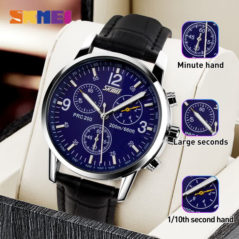 ساعت مچی کرنوگراف مردانه اسکمی مدل 9070 SKMEI با بند چرمی اصلی خاص و کامل است و ترکیبی از کیفیت و طراحی شیک را ارائه میدهد. این ساعت با بند مشکی و صفحه سفید سرمهای دایرهای دارای سه موتور کرنوگراف تقویم دار قاب استیل مقاوم شیشه سافایر ضد خط و خش و خاصیت ضد آب است. عقربه و صفحه شب نما بند چرمی دور دوخت ضد حساسیت با قفل سگکی کمربندی راحتی و دوام بالایی فراهم میکند. طراحی مدرن و لوکس این مدل آن را برای استفاده روزمره و رسمی مناسب کرده است. محصول ارجینال برند اسکمی با ضمانت به همراه جعبه هدیه از فروشگاه اینترنتی روبی مد عرضه میشود.