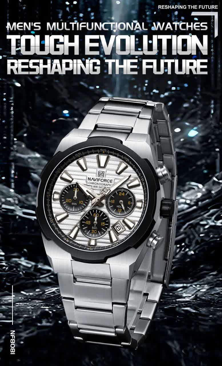 ساعت مچي کرنوگراف مردانه نيوي فورس NAVIFORCE مدل Nf8081 مشکي موتور ژاپني