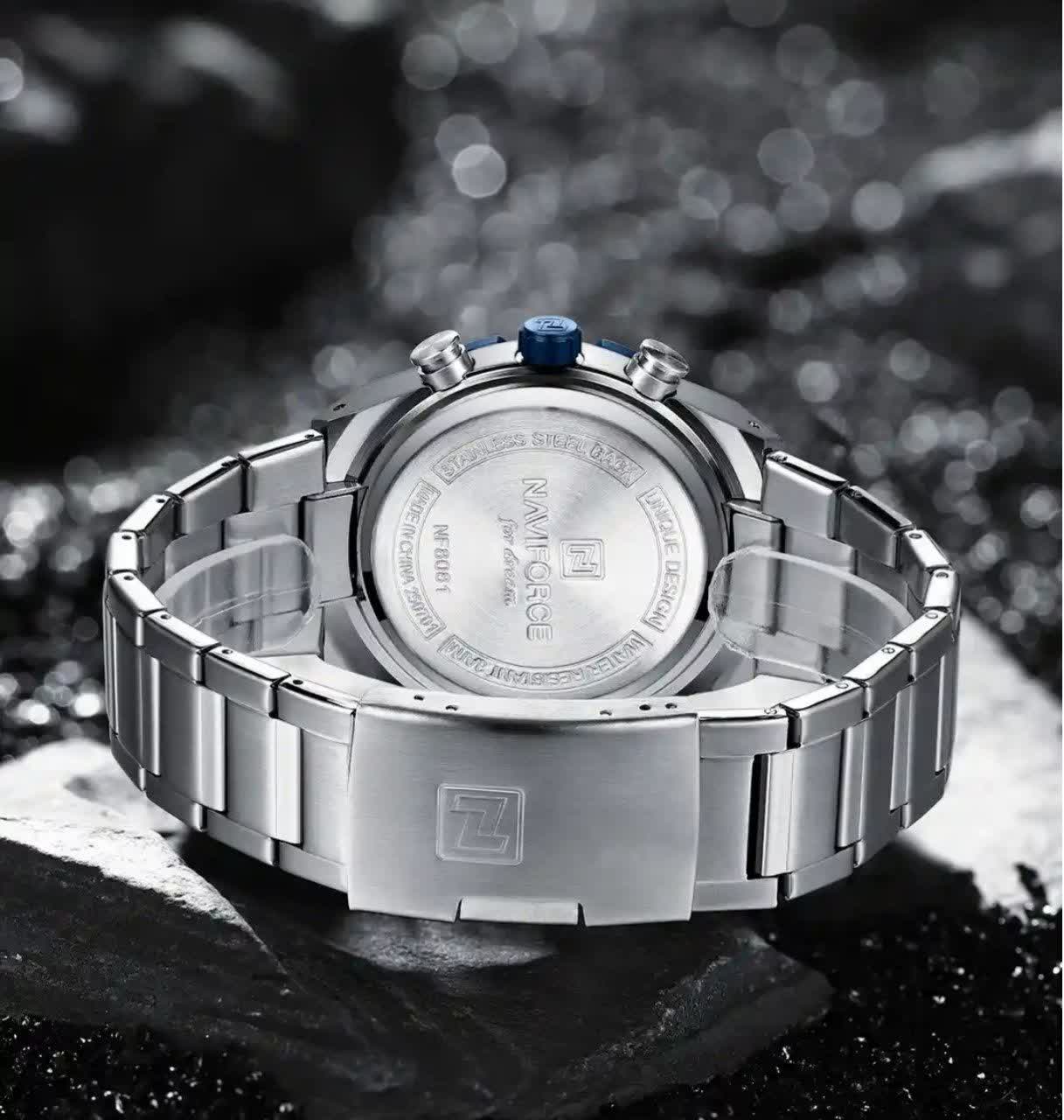ساعت مچي کرنوگراف مردانه نيوي فورس NAVIFORCE مدل Nf8081 صفحه آبي موتور ژاپني
