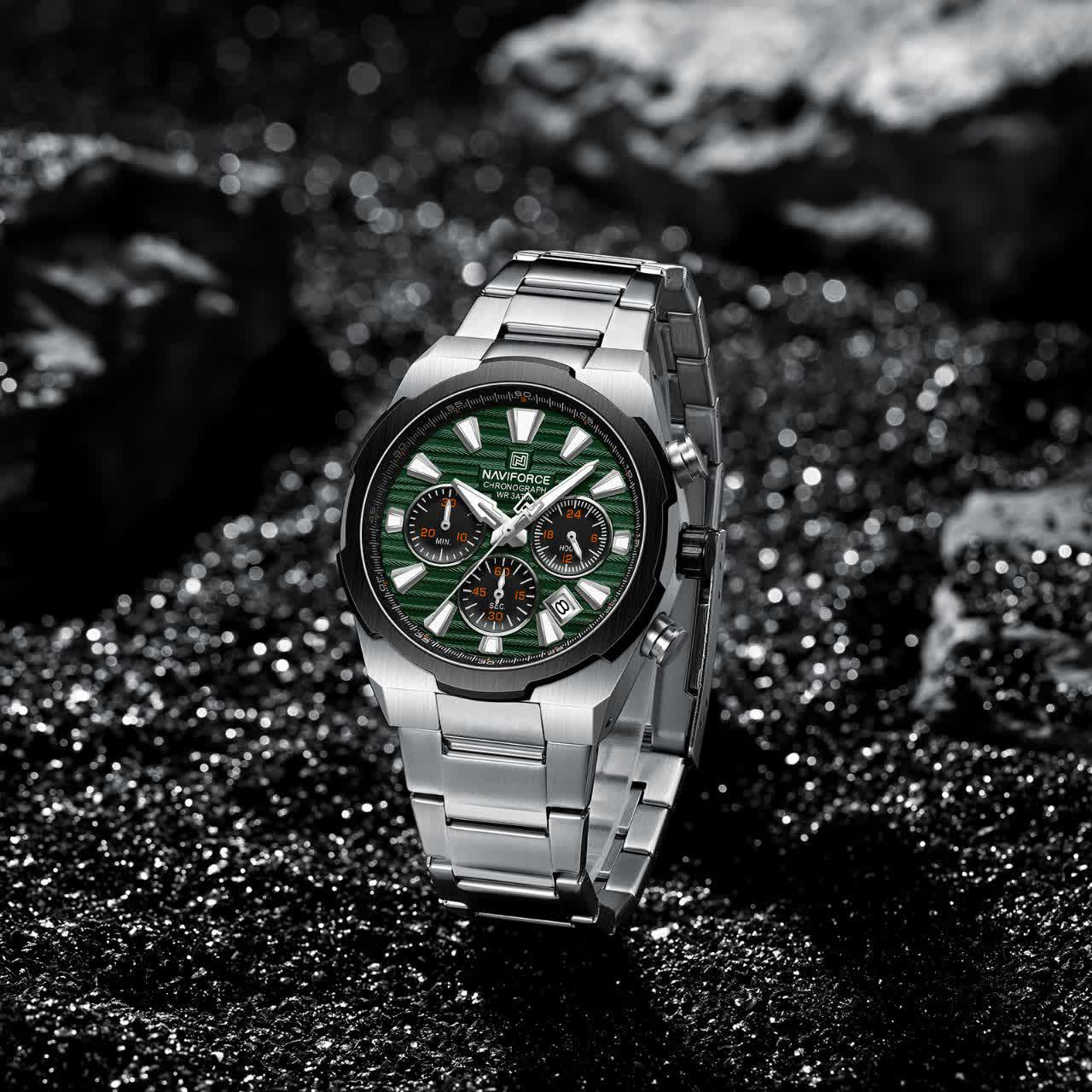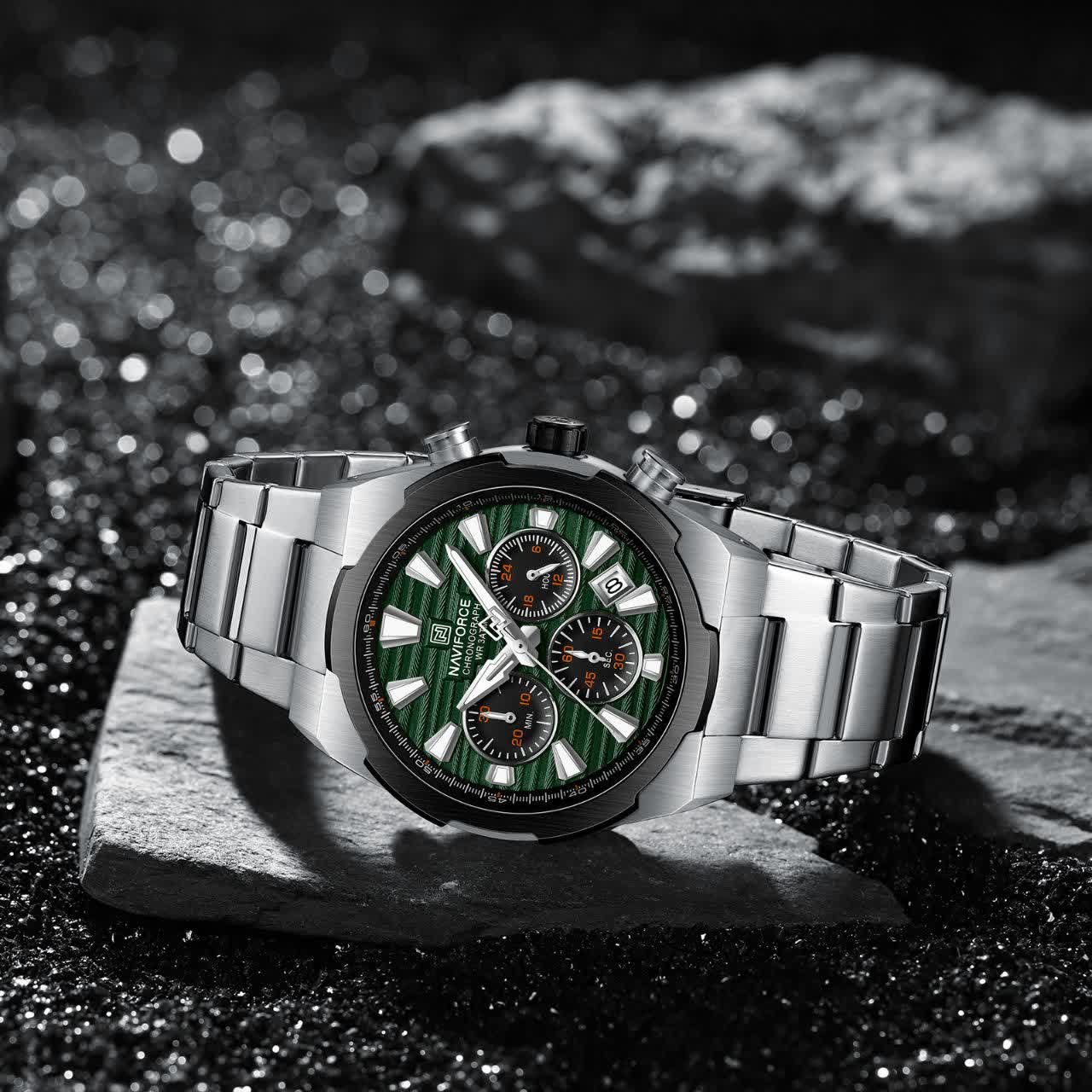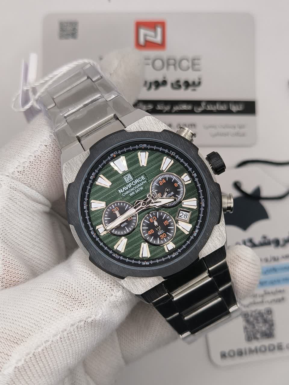 ساعت مچي کرنوگراف مردانه نيوي فورس NAVIFORCE مدل Nf8081 صفحه سبز موتور ژاپني