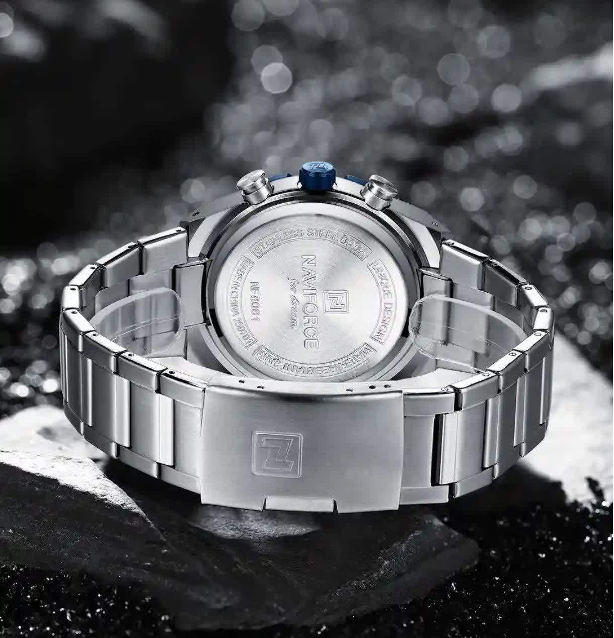 ساعت مچي کرنوگراف مردانه نيوي فورس NAVIFORCE مدل Nf8081 صفحه آبي موتور ژاپني
