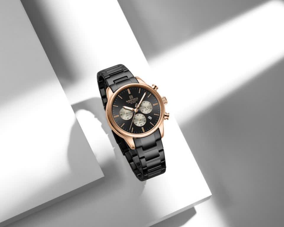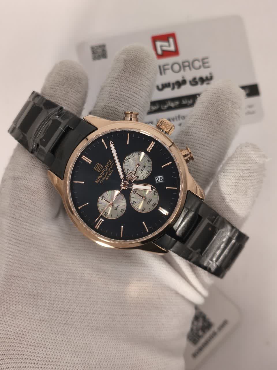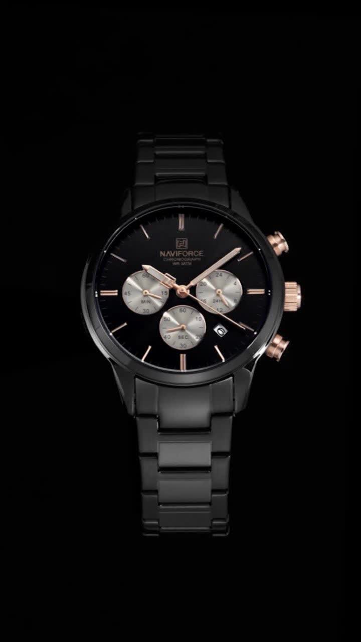 ساعت مچی کرنوگراف مردانه Naviforce NF8076 با صفحه مشکی و بند استیل توپُر مشکی، ترکیبی شیک و مقاوم برای هر استایل است. این مدل سه موتوره کرنوگراف با موتور ژاپن کوارتز دقیق، قاب استیل، شیشه معدنی ضد خش و فرم صفحه دایره ای طراحی شده و دارای تقویم و عقربه شب تاب می باشد. بند استیل ضد حساسیت پوستی با قفل کلیپسی ضامن دار راحتی و امنیت را تضمین می کند و ساعت ضد آب است. محصول ارجینال همراه با کارت گارانتی، جعبه و گارانتی نیوی فورس ایران از کالکشن جدید نیوی فورس از فروشگاه اینترنتی روبی مد قابل تهیه است و بیشتر از یک ساعت، یک دوست واقعی را ارائه می دهد.
