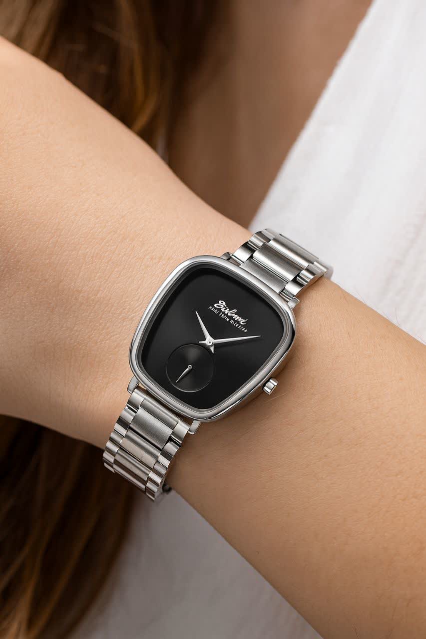 ساعت مچی زنانه عقربه ای بین باند BIN BOND با بند نقره ای و صفحه مشکي، انتخابی شیک و متفاوت برای استایل خاص شماست. این مدل ارجینال با دفترچه، بدنه تمام استیل رنگ ثابت، شیشه ضد خط و خش نشکن، موتور کوارتز دقیق، قابلیت ضد آب، زیر ثانیه و عقربه و صفحه شب نما، کیفیت و زیبایی را همزمان ارائه می دهد. فرم صفحه خاص زاویه دار با قفل پروانه ای دو قفله و ارائه به همراه جعبه هدیه، آن را به انتخابی بیشتر از یک ساعت تبدیل کرده که از فروشگاه اینترنتی روبی مد قابل تهیه است.