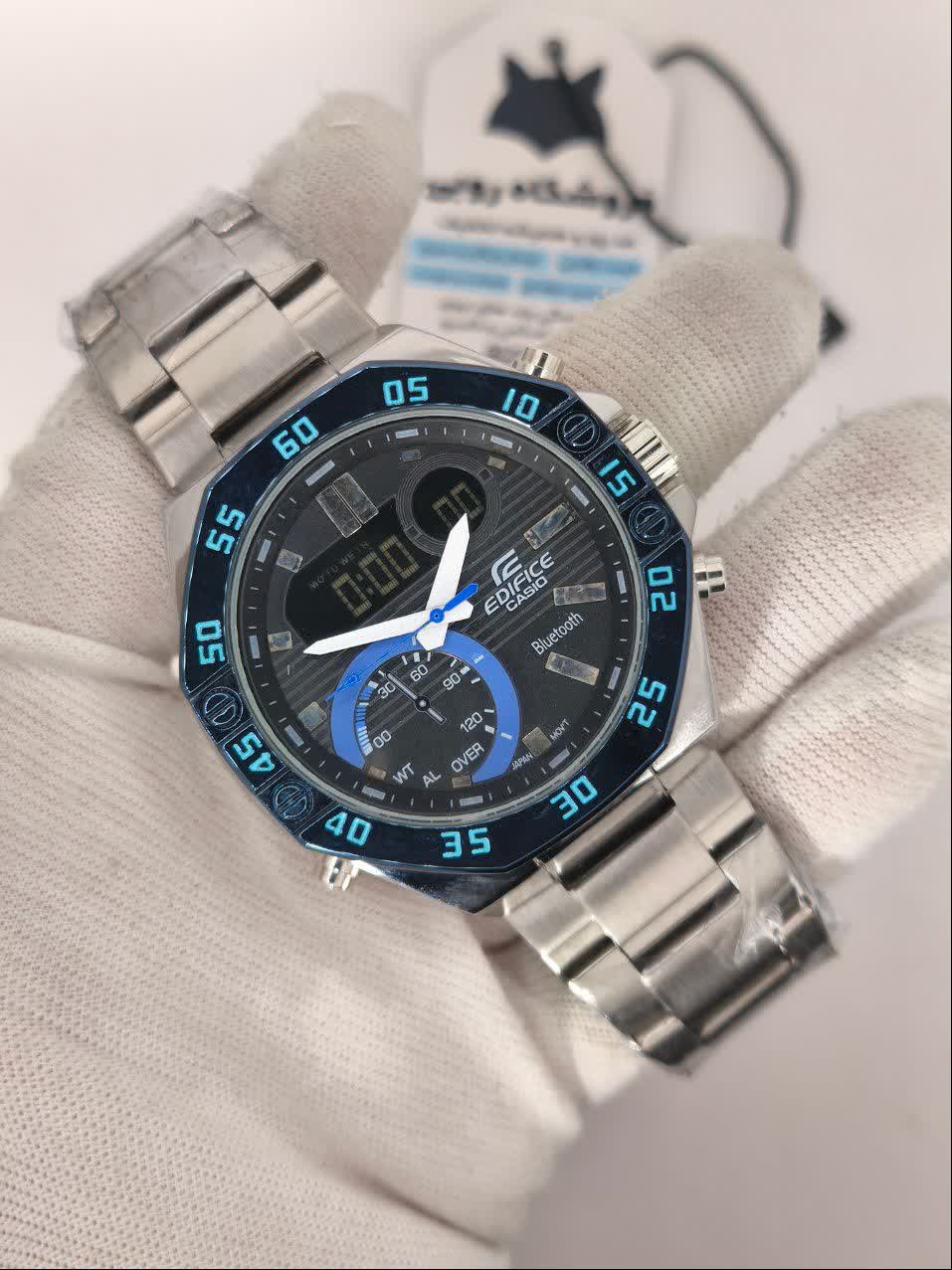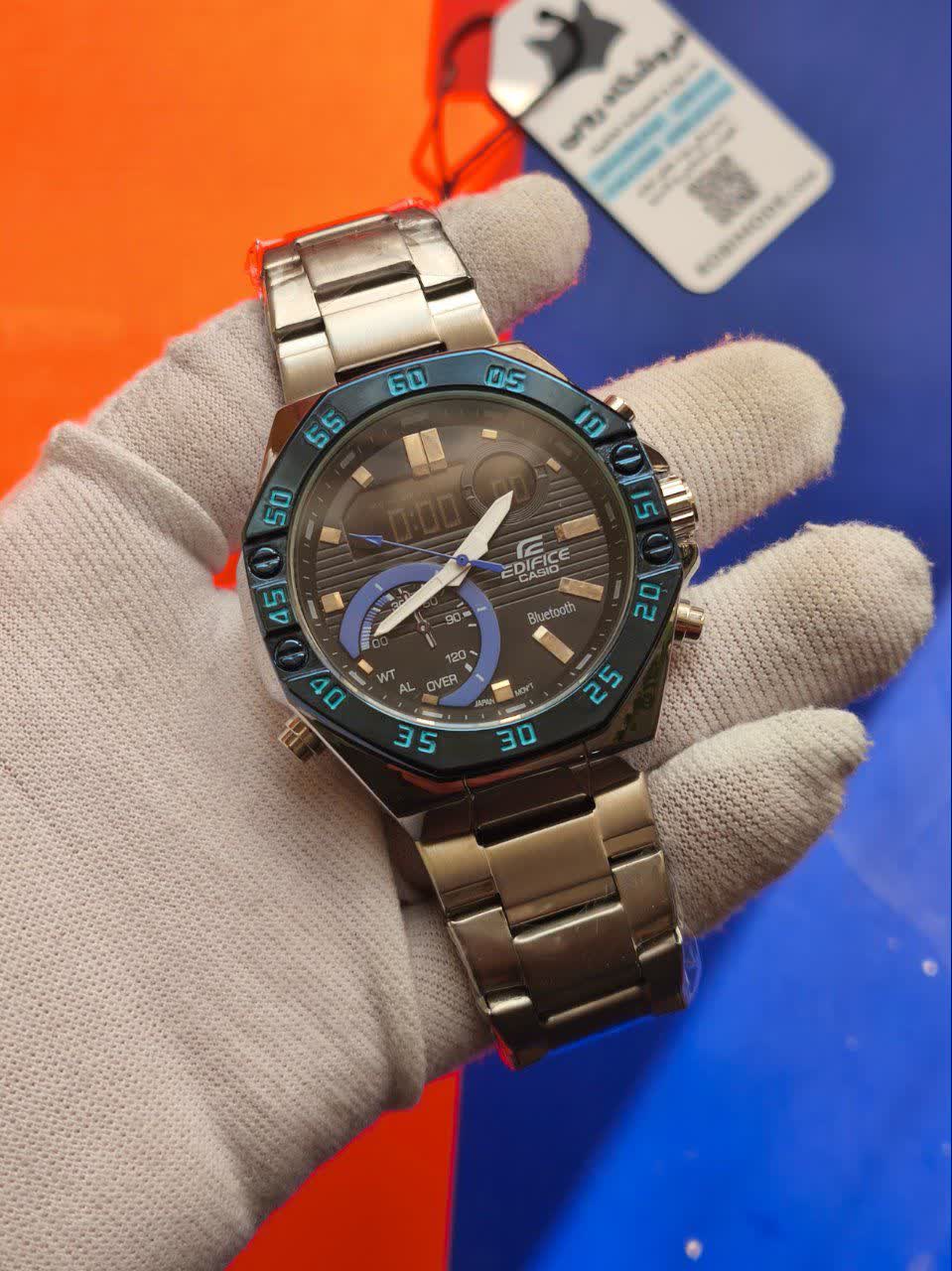 ساعت مچی مردانه عقربه ای و دیجیتال ادیفایس CASIO EDIFICE مدل 3 با بند سیلور و صفحه مشکی، انتخابی قدرتمند برای استایل حرفهای و پرانرژی شماست که با نمایش دیجیتال و عقربه ای، تک زمانه تقویم دار، دو زمانه با کرنومتر، آلارم و نمایش تاریخ کارایی کاملی ارائه می دهد. این مدل مجهز به موتور ژاپن دقت بالا، قاب استیل رنگ ثابت تضمینی، بند استیل ضد زنگ توپُر سنگین و ضد حساسیت پوستی و شیشه معدنی ضد خش با فرم صفحه دایره ای است که کیفیت و دوام را تضمین می کند. عقربه شب تاب و صفحه چراغ دید در شب در کنار قابلیت ضد آب و قفل کلیپسی ضامن دار دو قفله، راحتی و اطمینان را کامل کرده است. این محصول به همراه جعبه عرضه می شود و از فروشگاه اینترنتی روبی مد قابل تهیه است.
