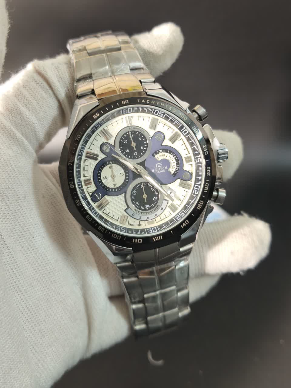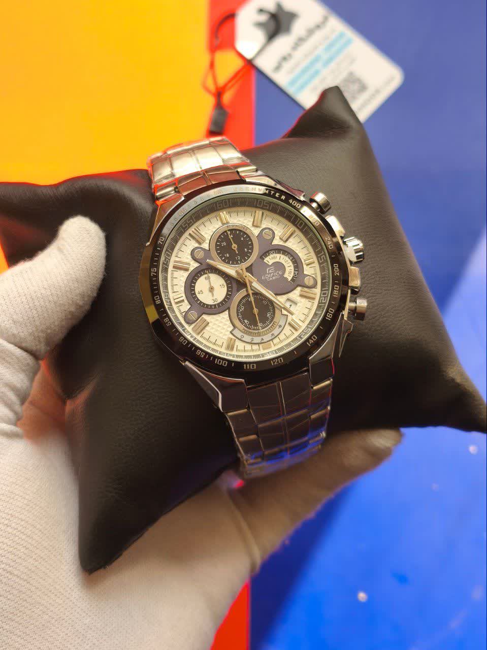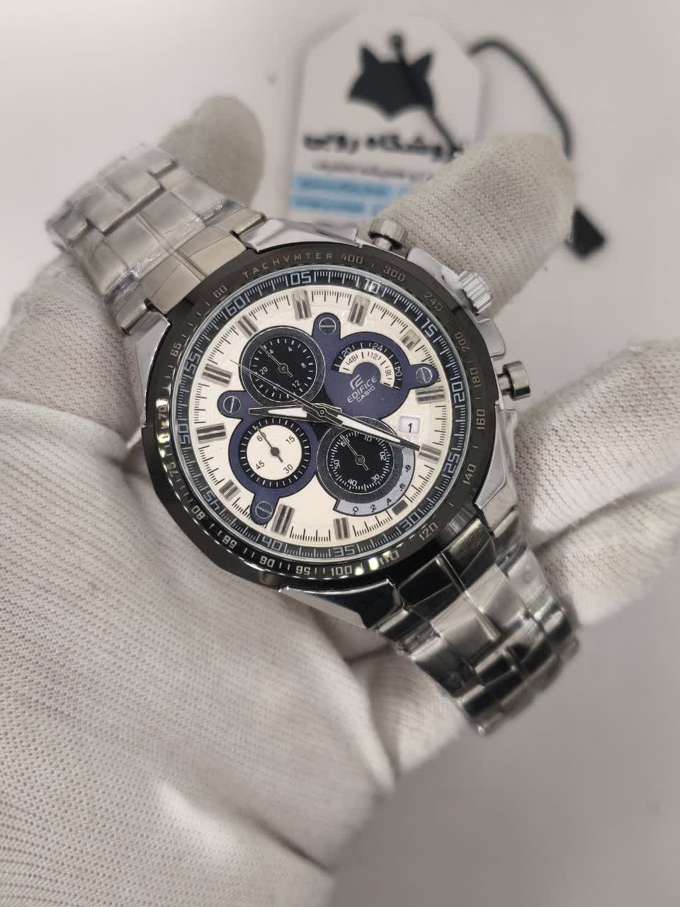 ساعت مچی مردانه سه موتوره ادیفایس CASIO EDIFICE مدل 44 با بند سیلور و صفحه سفید، انتخابی شیک و قدرتمند برای آقایان خوش استایل است که با سه موتوره کرنوگراف، تقویم دار و زیر ثانیه کارایی حرفه ای ارائه می دهد. این مدل مجهز به موتور ژاپن دقت بالا، قاب استیل رنگ ثابت تضمینی، بند استیل ضد زنگ توپُر سنگین و ضد حساسیت پوستی و شیشه معدنی ضد خش با فرم صفحه دایره ای است که دوام و کیفیت را تضمین می کند. عقربه شب تاب و قابلیت ضد آب در کنار قفل کلیپسی ضامن دار دو قفله، امنیت و راحتی را کامل کرده است. این محصول به همراه جعبه عرضه می شود و ساعتی که باهات حرف میزنه را می توانید از فروشگاه اینترنتی روبی مد تهیه کنید.