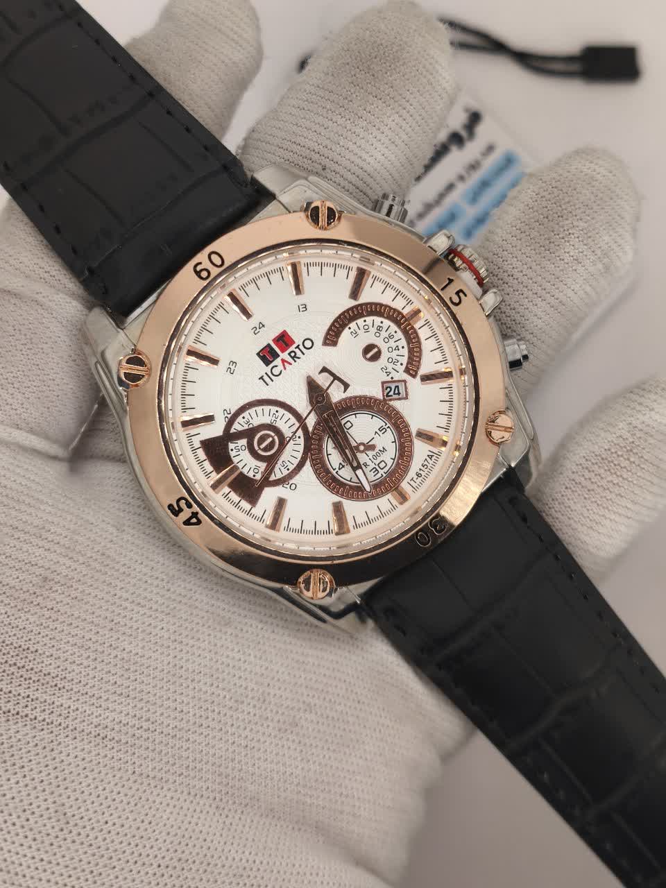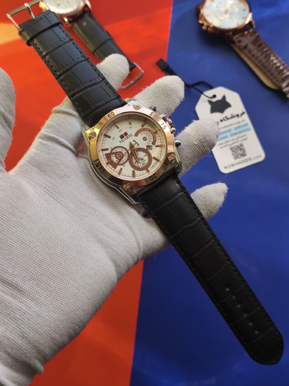 ساعت مچی مردانه TICARTO مدل 1 با موتور تایوان کیفیت بالا و کوارتز دقت عالی، انتخابی لوکس، کلاسیک و اسپورت برای آقایان خوش سلیقه است. این مدل با بند چرمی مشکی دوردوخت و صفحه سفید با فرم گرد، طرح کرنو سه موتور و تقویم دار طراحی شده و دارای دور قاب استیل رنگ ثابت و شیشه کریستال مقاوم می باشد. عقربه و صفحه شب نما در کنار ضد آب صدرصد بودن، کارایی آن را کامل می کند و قفل سگکی کمربندی سوزنی استفاده آسانی دارد. محصول به همراه جعبه هدیه ارائه می شود و جلوه ای خاص به استایل شما می بخشد. همین حالا از فروشگاه اینترنتی روبی مد تهیه کنید و متفاوت بدرخشید.
