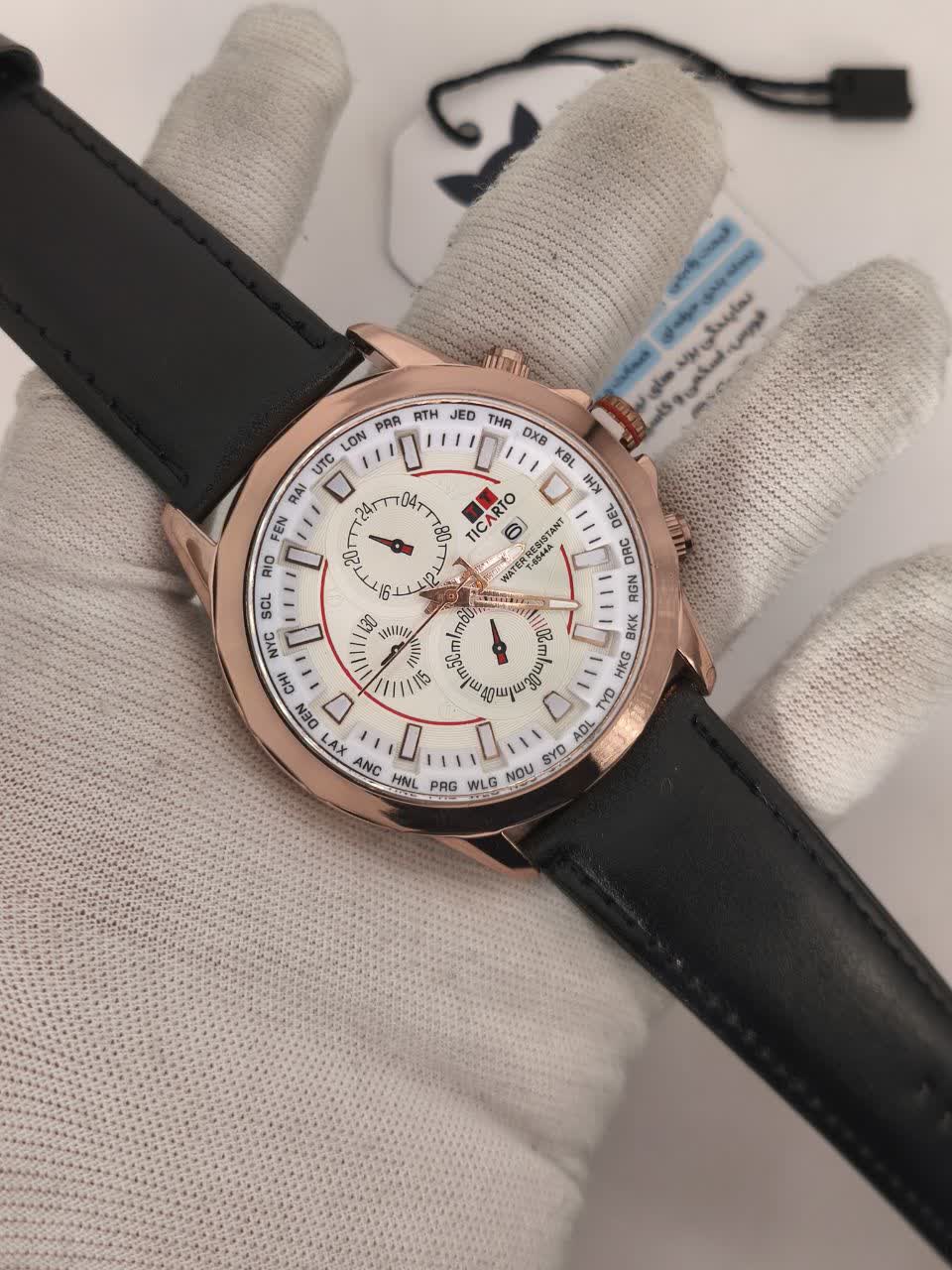 ساعت مچی مردانه TICARTO مدل 3 با موتور تایوان کیفیت بالا و کوارتز دقت عالی، انتخابی شیک برای آقایان خوش سلیقه است. این مدل با بند چرمی مشکی دوردوخت و صفحه سفید با فرم گرد طراحی شده و دارای طرح کرنو سه موتور و تقویم دار می باشد. دور قاب استیل رنگ ثابت، شیشه کریستال مقاوم، عقربه و صفحه شب نما و ضد آب صدرصد بودن از ویژگی های کاربردی آن است. قفل سگکی کمربندی سوزنی استفاده آسانی را فراهم می کند و محصول به همراه جعبه هدیه عرضه می شود. همین حالا از فروشگاه اینترنتی روبی مد تهیه کنید، جایی که زمان هنر می شود.