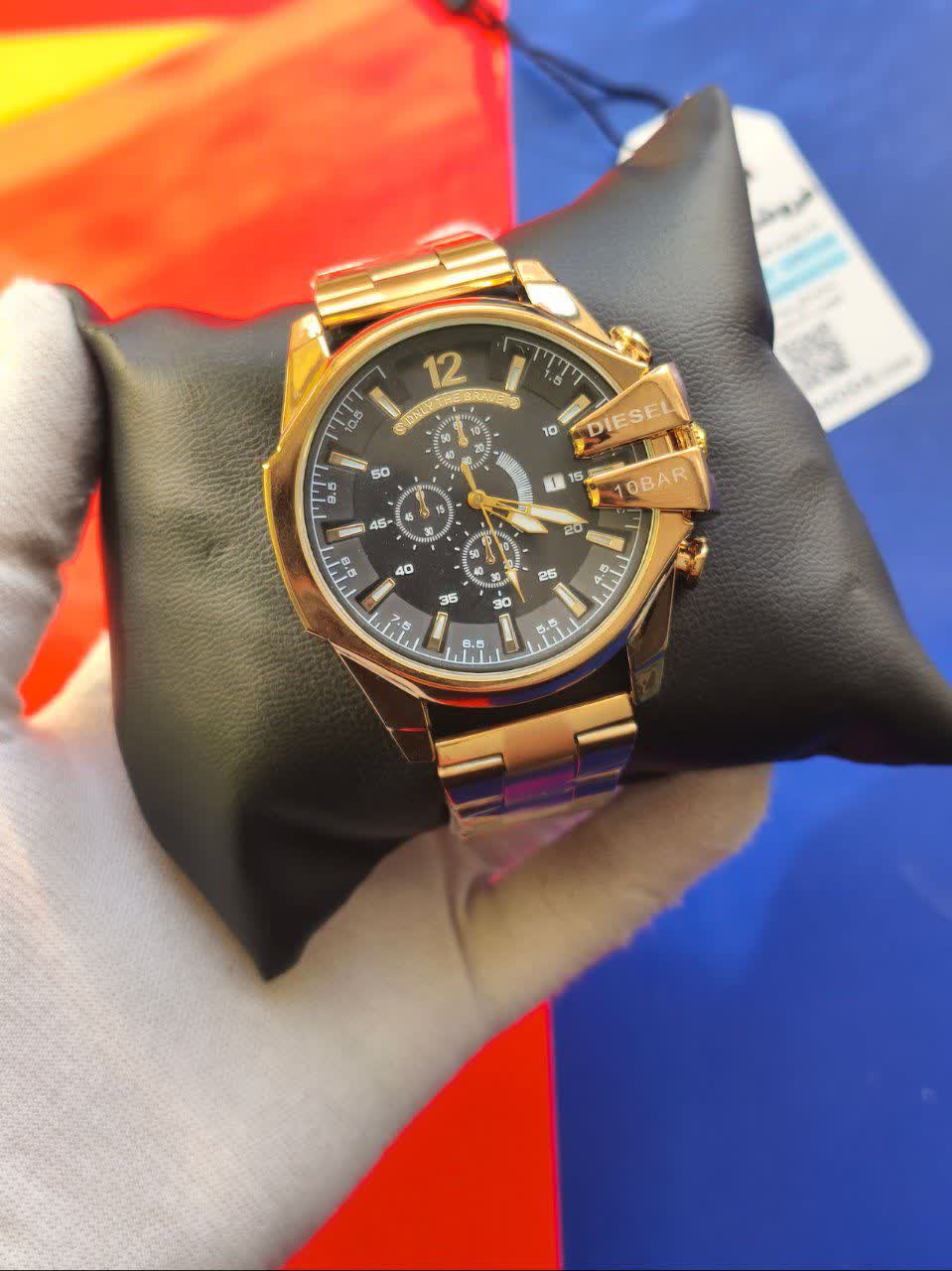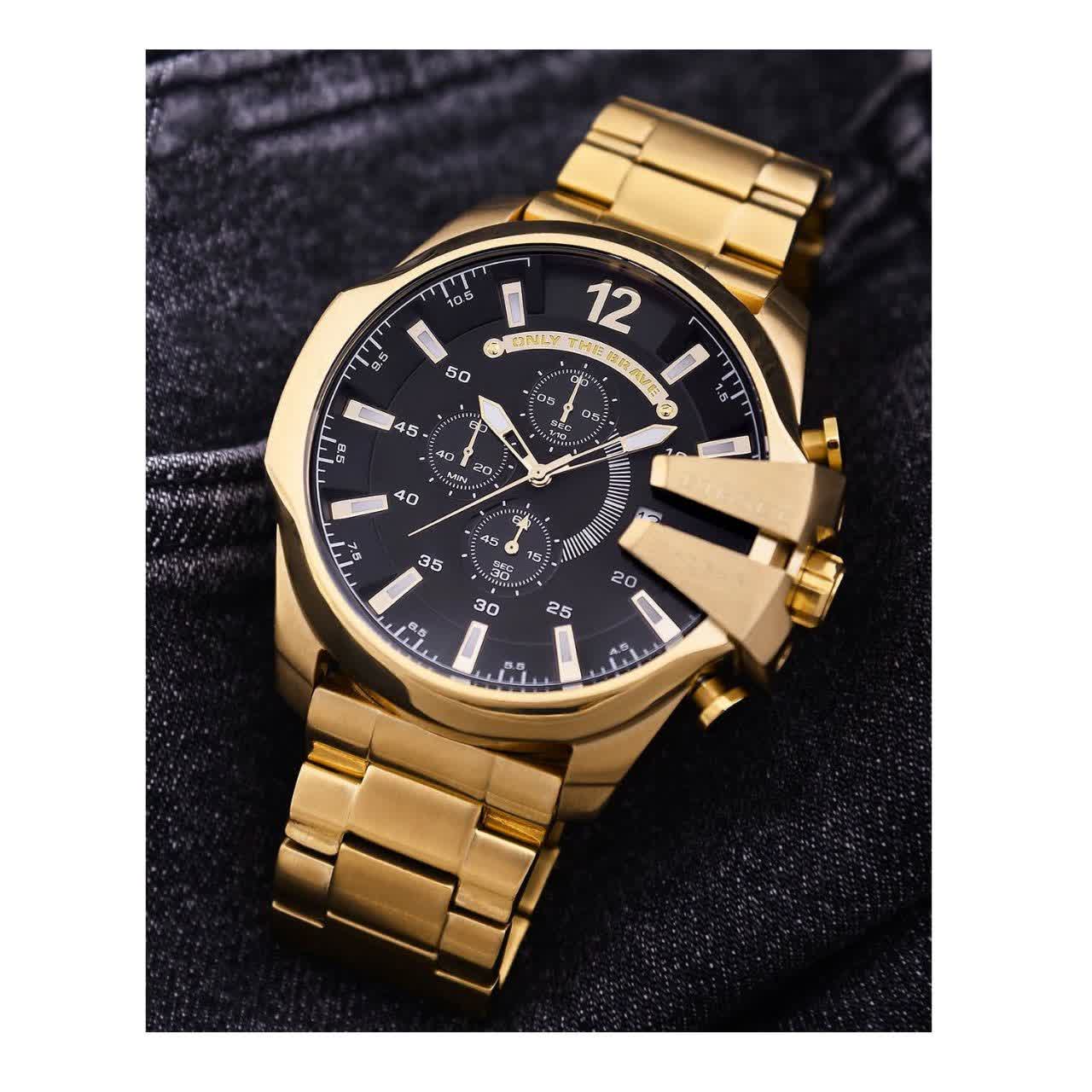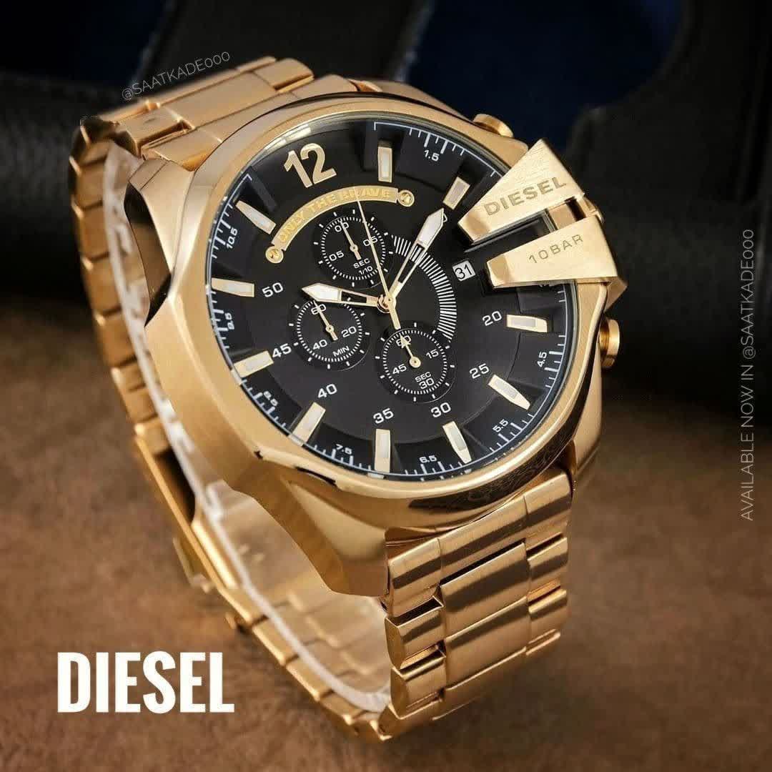 ساعت مچی مردانه Diesel شاخ دار طرح کرنو طلایی، انتخابی قدرتمند برای سخت پسند هاست. این مدل با بند طلایی و صفحه مشکی با فرم گرد طراحی شده و دارای سه موتور طرح کرنوگراف، ثانیه شمار فعال و تقویم دار می باشد. بدنه تمام استیل رنگ ثابت با قفل کلیپسی، موتور کوارتز با دقت عالی، ضد آب بودن و شیشه ضد خط و خش نشکن دوام و کیفیت بالایی را تضمین می کند. عقربه و صفحه شب نما جلوه ای خاص در نور کم ایجاد می کند و محصول به همراه جعبه هدیه عرضه می شود. همین حالا از فروشگاه اینترنتی روبی مد تهیه کنید و استایلی متفاوت را تجربه کنید.