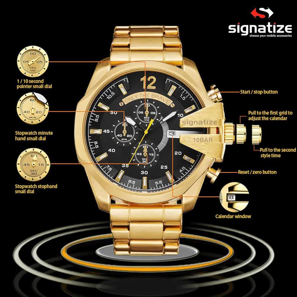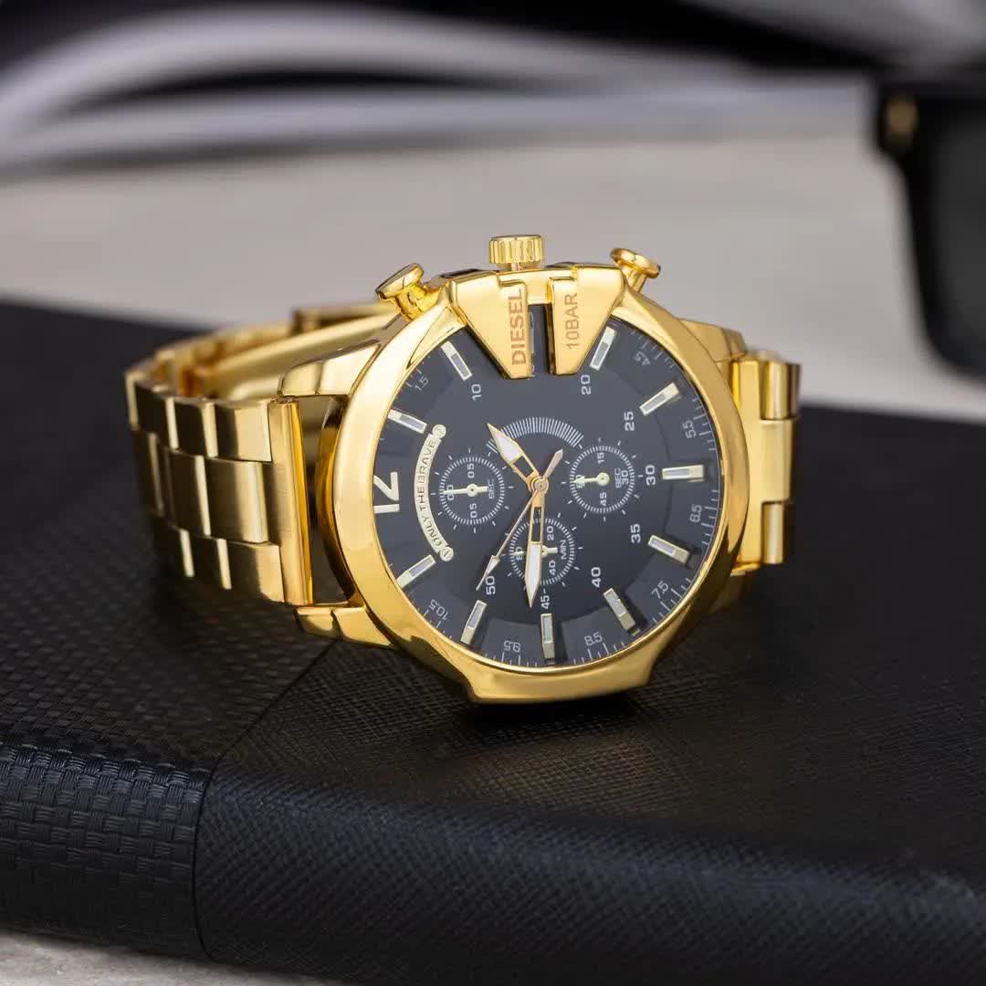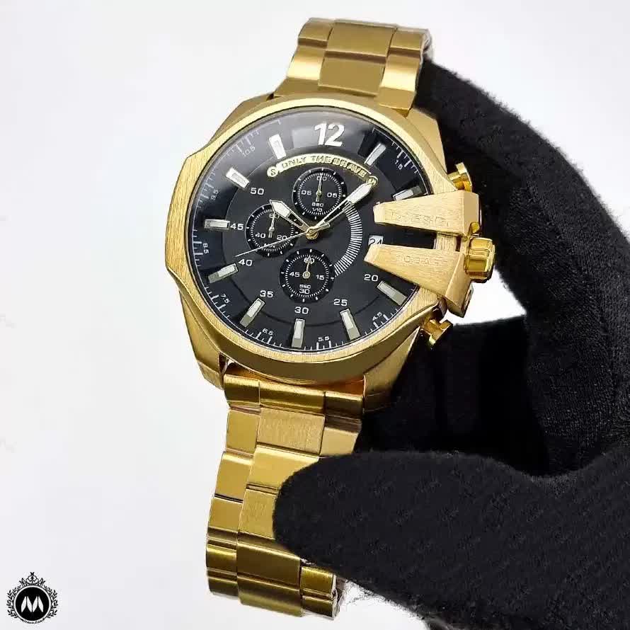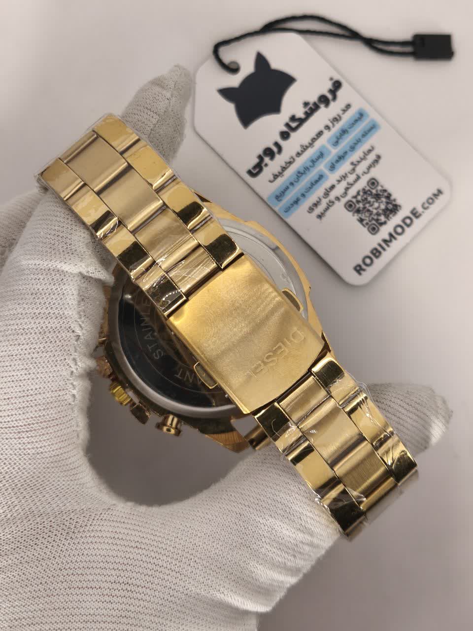 ساعت مچی مردانه Diesel شاخ دار طرح کرنو طلایی، انتخابی قدرتمند برای سخت پسند هاست. این مدل با بند طلایی و صفحه مشکی با فرم گرد طراحی شده و دارای سه موتور طرح کرنوگراف، ثانیه شمار فعال و تقویم دار می باشد. بدنه تمام استیل رنگ ثابت با قفل کلیپسی، موتور کوارتز با دقت عالی، ضد آب بودن و شیشه ضد خط و خش نشکن دوام و کیفیت بالایی را تضمین می کند. عقربه و صفحه شب نما جلوه ای خاص در نور کم ایجاد می کند و محصول به همراه جعبه هدیه عرضه می شود. همین حالا از فروشگاه اینترنتی روبی مد تهیه کنید و استایلی متفاوت را تجربه کنید.