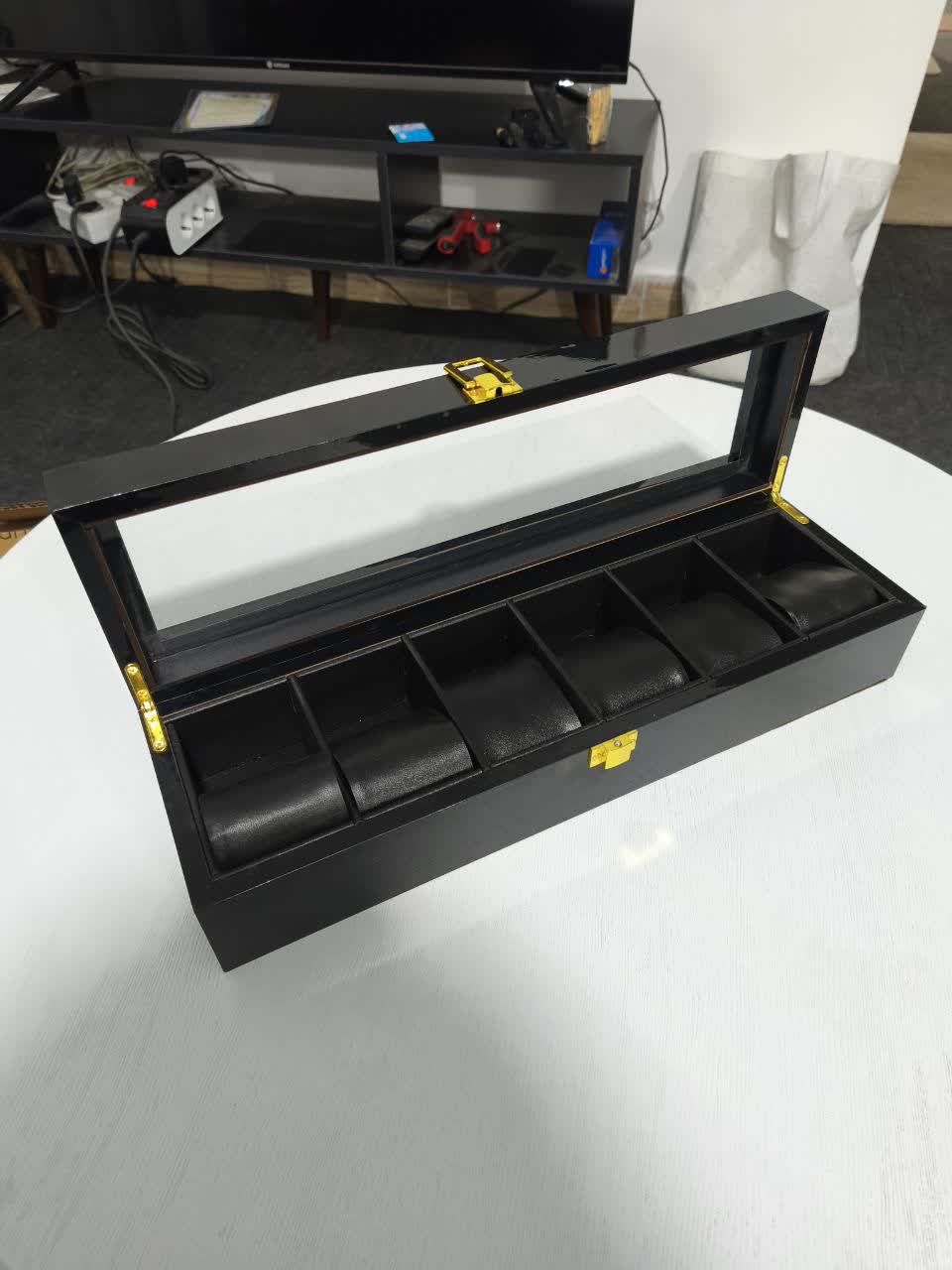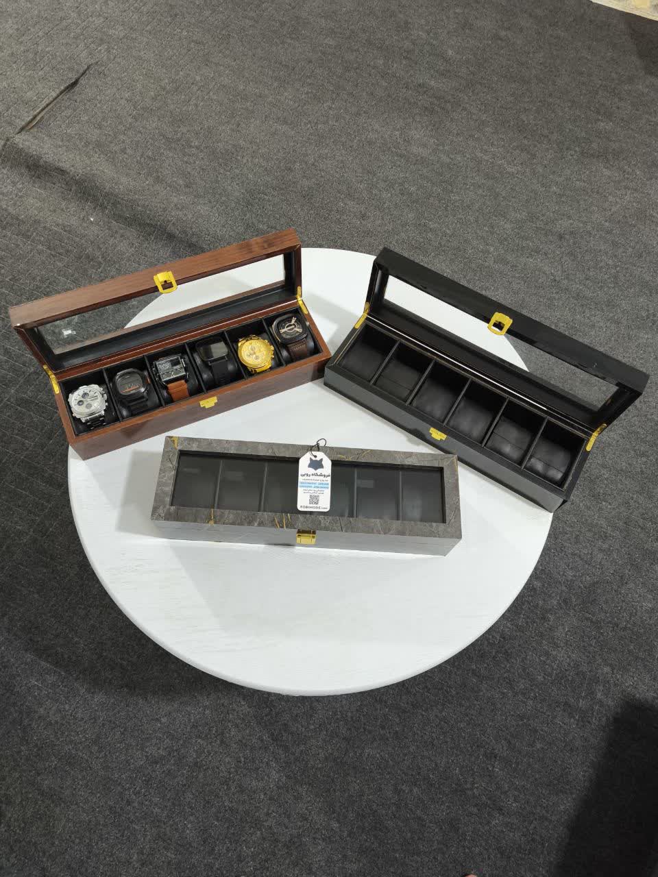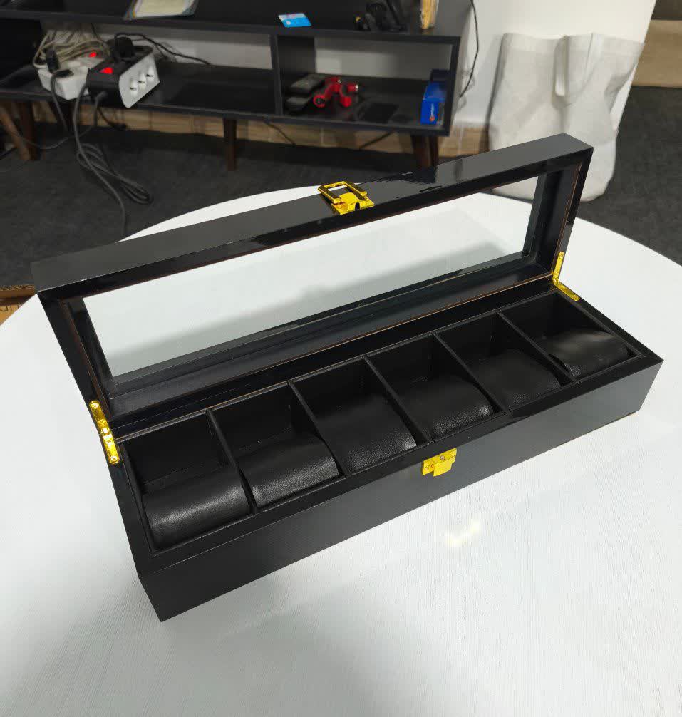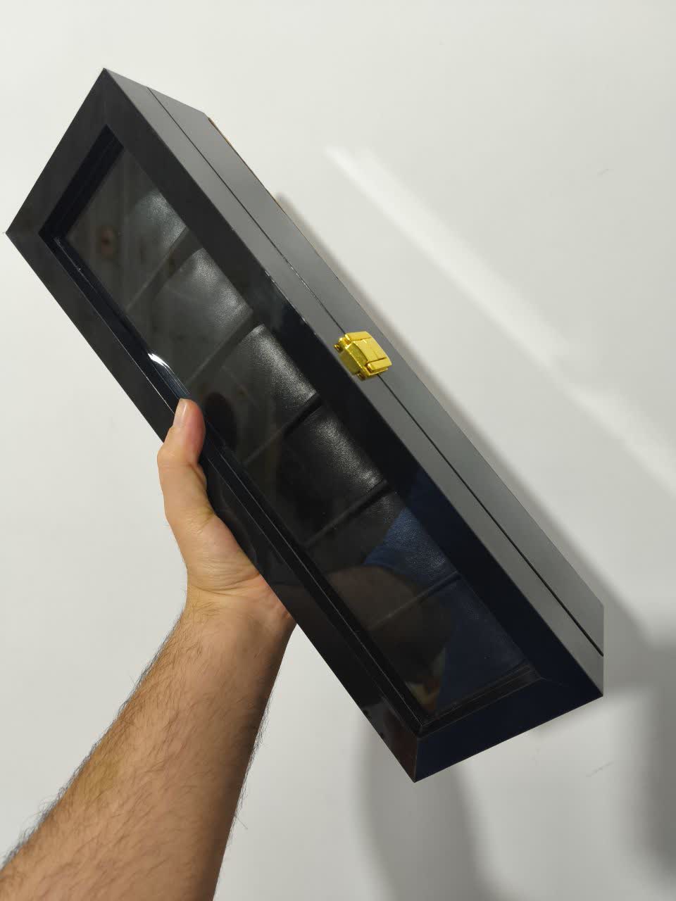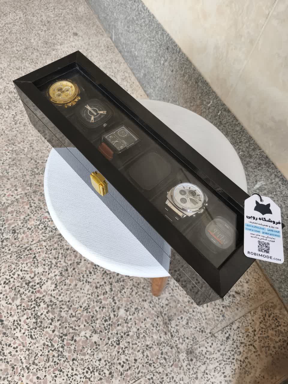 جعبه ساعت 6 خانه هايگلس لوکس ويتريني يا کلکسيوني مشکي يک انتخاب شيک و کاربردي براي نگهداري و نمايش ساعت هاي ارزشمند شماست. بدنه مشکي ضد خط و خش در کنار بالشتک هاي مشکي جلوه اي خاص ايجاد کرده و با شیشه ویترینی امکان مشاهده آسان ساعت ها را فراهم مي کند. اين جعبه داراي قفل ضامن دار ايمن، 6 عدد بالشتک چرم، لولاهاي مقاوم و جنس عالي و باکيفيت است تا خانه اي امن براي ساعت هاي شما باشد. همچنين مدل هاي 2 خانه و 10 خانه نيز موجود است و کافيست پيام دهيد. همين حالا از فروشگاه اینترنتی روبی مد تهيه کنيد و به کلکسيون خود نظم و جلوه اي لوکس ببخشيد.
