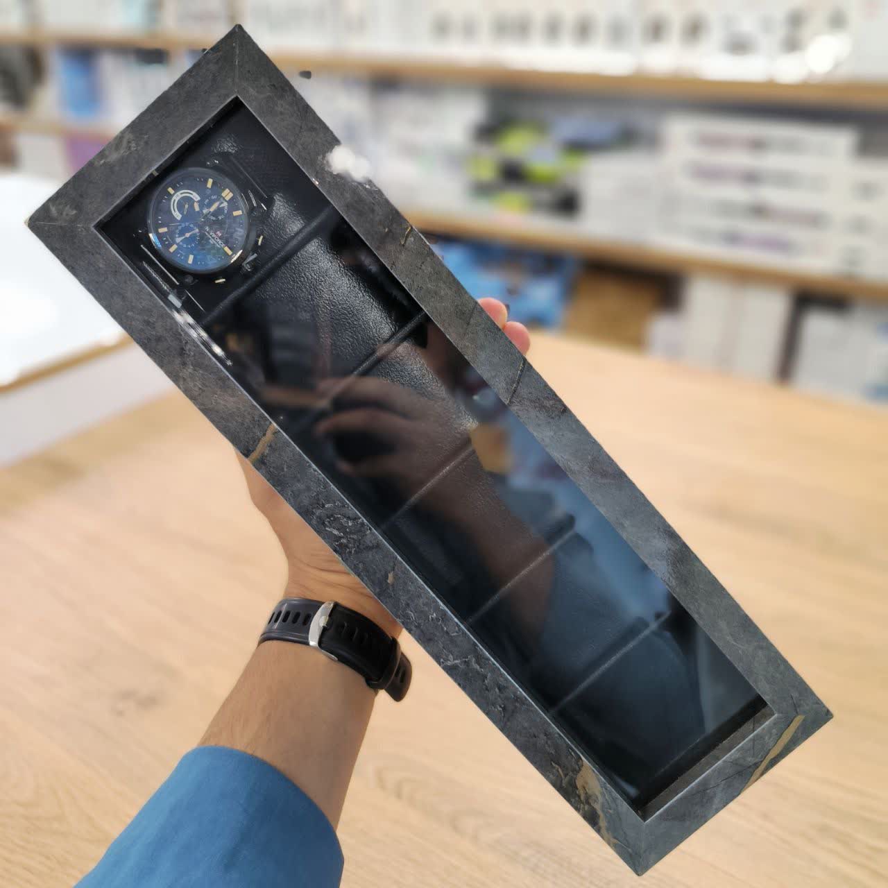 جعبه ساعت 6 خانه هايگلس لوکس ويتريني يا کلکسيوني طوسي يک انتخاب شيک و کاربردي براي نگهداري و نمايش ساعت هاي ارزشمند شماست. بدنه طوسي ضد خط و خش در کنار بالشتک هاي مشکي جلوه اي خاص ايجاد کرده و با شیشه ویترینی امکان مشاهده آسان ساعت ها را فراهم مي کند. اين جعبه داراي قفل ضامن دار ايمن، 6 عدد بالشتک چرم، لولاهاي مقاوم و جنس عالي و باکيفيت است تا خانه اي امن براي ساعت هاي شما باشد. همچنين مدل هاي 2 خانه و 10 خانه نيز موجود است و کافيست پيام دهيد. همين حالا از فروشگاه اینترنتی روبی مد تهيه کنيد و به کلکسيون خود نظم و جلوه اي لوکس ببخشيد.