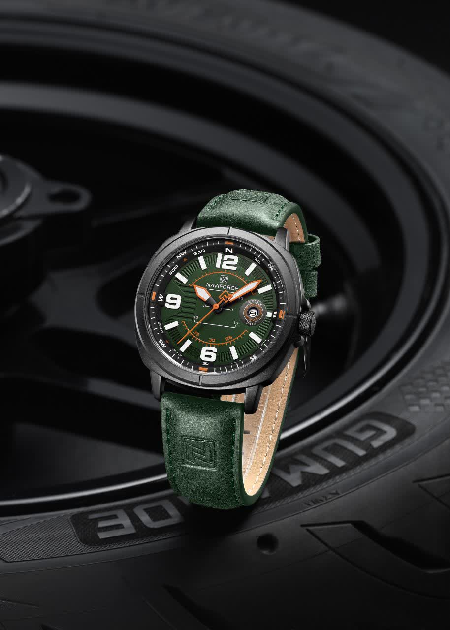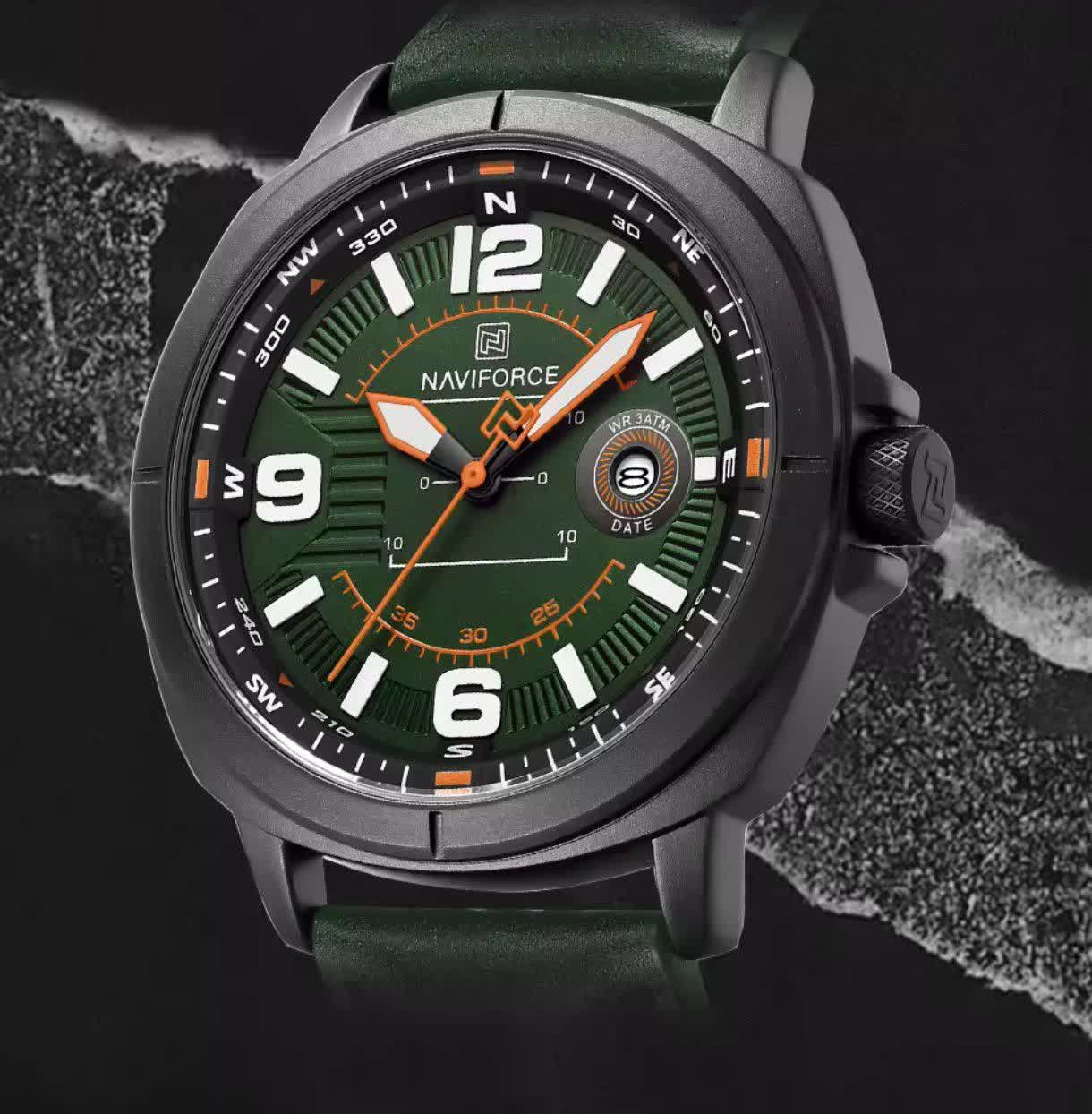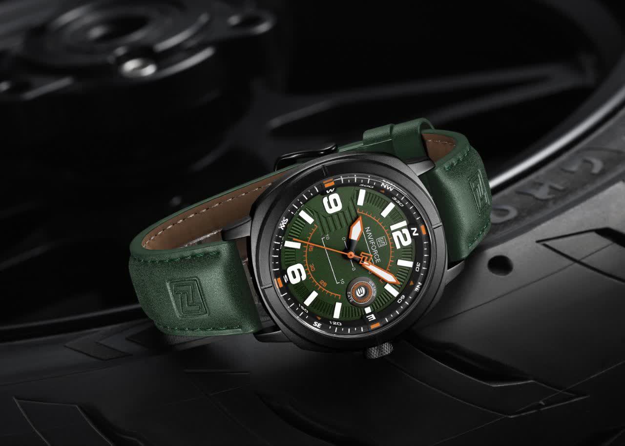 ساعت مچی عقربه ای مردانه NAVIFORCE مدل Nf8078 با طراحی شیک و خاص، انتخابی جذاب برای آقایان خوش استایل است که با رنگ بند چرم سبز لجنی، صفحه لجنی و قاب مشکی جلوه ای متفاوت و چشم نواز ایجاد می کند. این مدل اورجینال همراه با کارت گارانتی، جعبه اصلی و گارانتی نیوی فورس ایران ارائه می شود و به موتور ژاپن کوارتز دقیق و تقویم دار مجهز است. شیشه معدنی مقاوم، قاب استیل رنگ ثابت و عقربه های شب نما خوانایی و دوام بالایی را فراهم می کند. بند چرمی دور دوخت با خاصیت ضد تعریق در کنار قفل سگکی راحتی و استحکام را تضمین می کند و مقاومت در برابر آب خیال شما را از استفاده روزمره آسوده می سازد. این محصول با کیفیت را می توانید با اطمینان از فروشگاه اینترنتی روبی مد تهیه کنید.