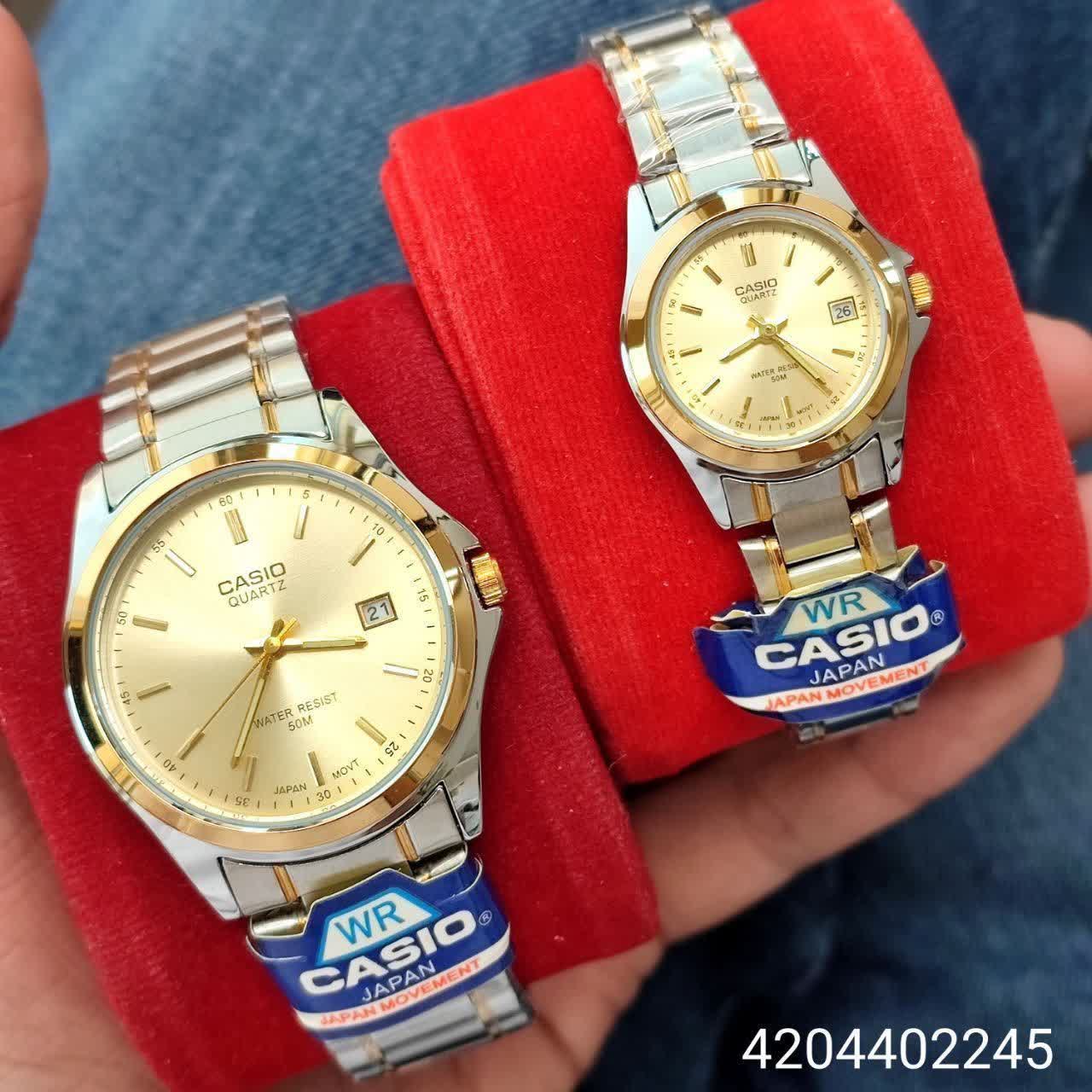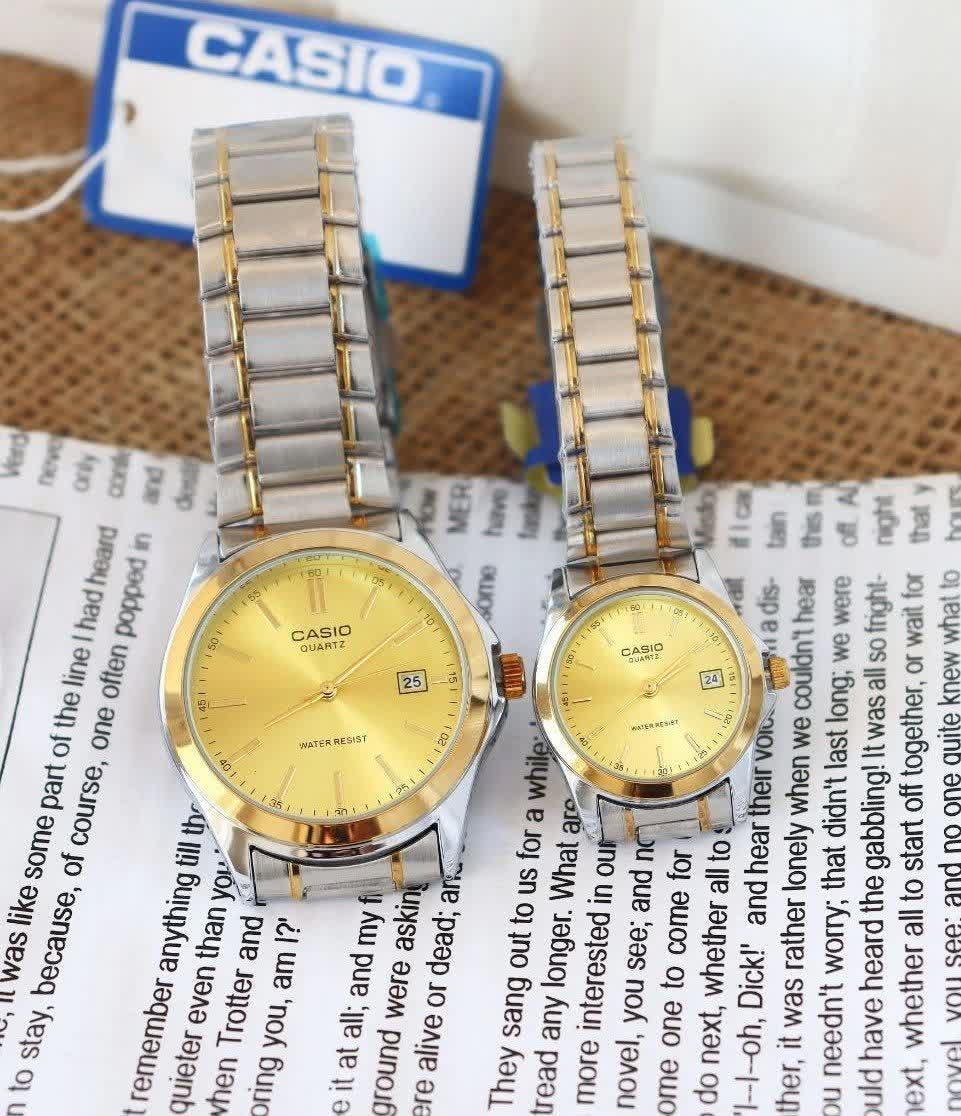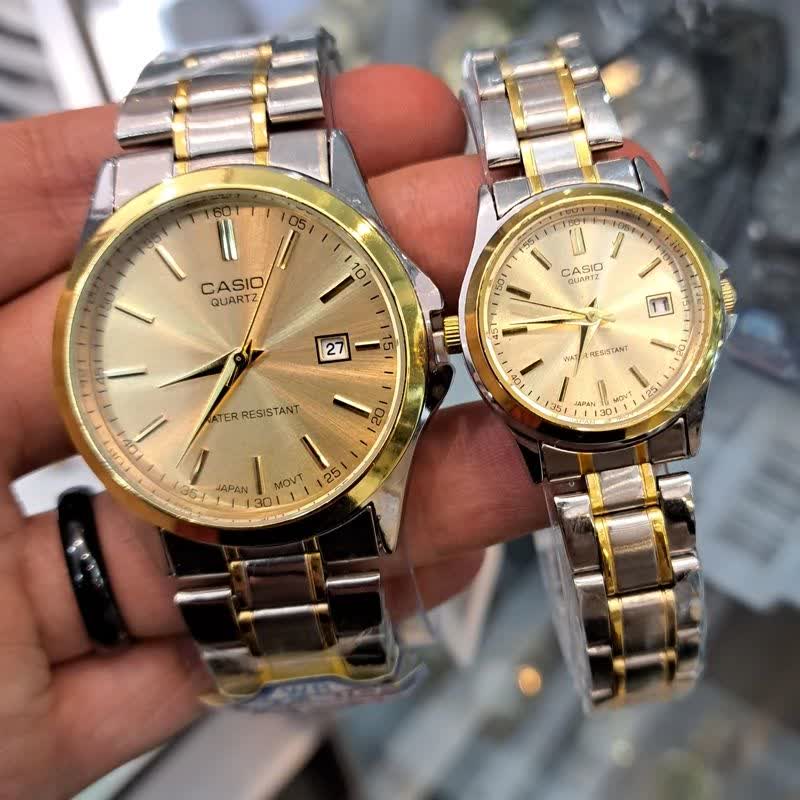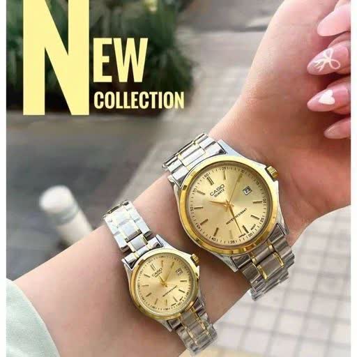 ست ساعت مچی زنانه و مردانه کاسیو CASIO موتور ژاپنی کد 2 انتخابی لوکس و هماهنگ برای زوج های خوش سلیقه است. این مدل با بند نقره ای رگه طلایی و صفحه طلایی طراحی شده و متفاوت با نمونه های بازاری می باشد. مجهز به موتور ژاپن با تکنولوژی کوارتز بوده و دارای تقویم دار و ضد آب است و از استیل رنگ ثابت ضد زنگ با کیفیت بالا ساخته شده است. قفل کلیپسی ضامن دار عقربه و صفحه شب نما شیشه معدنی نشکن صفحه ضد خط و خش و بند ضد حساسیت پوستی با فرم صفحه دایره ای از ویژگی های کاربردی آن است. این ست شیک به همراه جعبه رایگان از فروشگاه اینترنتی روبی مد قابل سفارش می باشد.