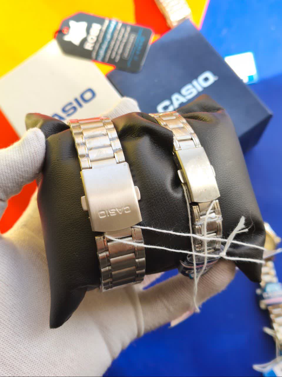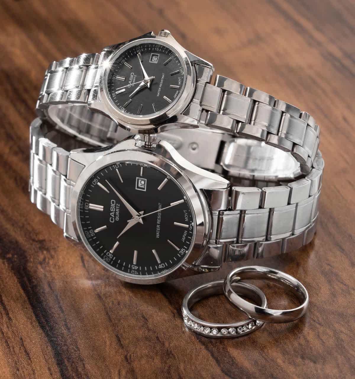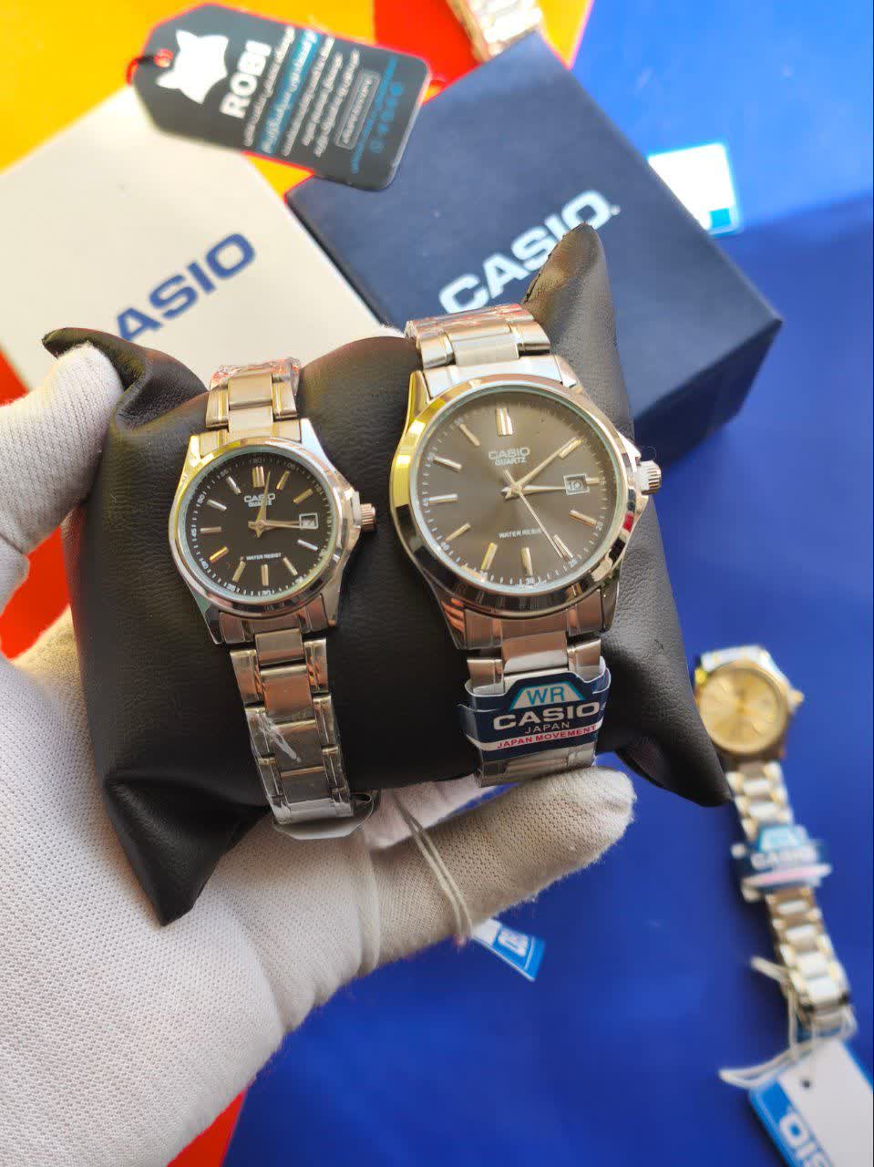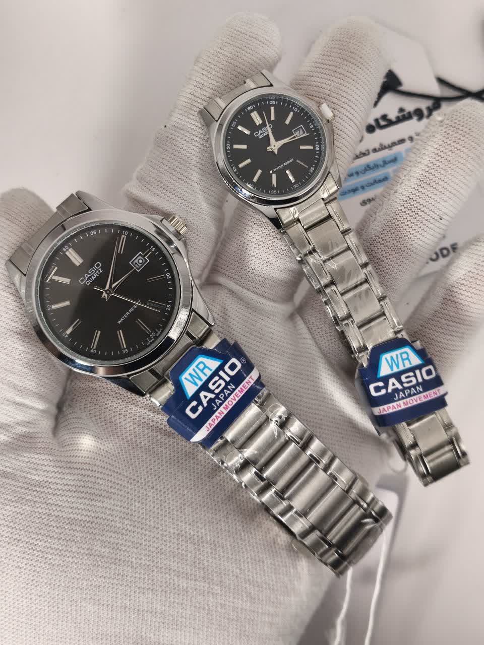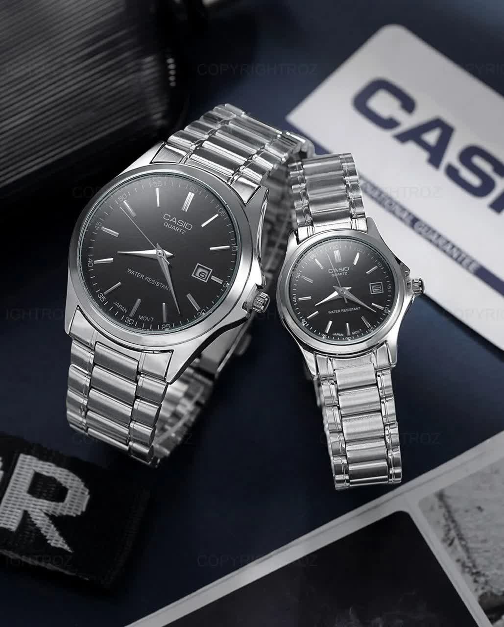 ست ساعت مچی زنانه و مردانه کاسیو CASIO موتور ژاپنی کد 4 انتخابی خاص و هماهنگ برای زوج های خوش سلیقه است. این مدل با بند نقره ای و صفحه مشکی طراحی شده و متفاوت با نمونه های بازاری می باشد. مجهز به موتور ژاپن با تکنولوژی کوارتز بوده و دارای تقویم دار و ضد آب است و از استیل رنگ ثابت ضد زنگ با کیفیت فوق العاده ساخته شده است. قفل کلیپسی ضامن دار عقربه و صفحه شب نما شیشه معدنی نشکن صفحه ضد خط و خش و بند ضد حساسیت پوستی با فرم صفحه دایره ای از ویژگی های کاربردی این ست جذاب است. این محصول به همراه جعبه رایگان از فروشگاه اینترنتی روبی مد قابل سفارش می باشد.