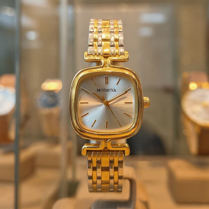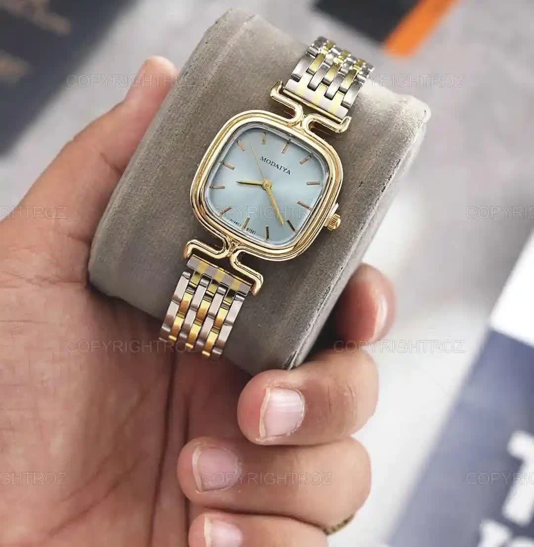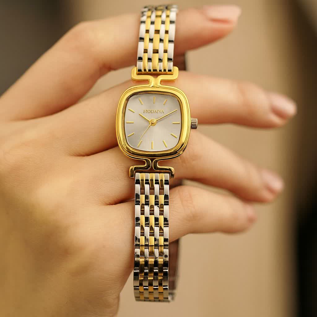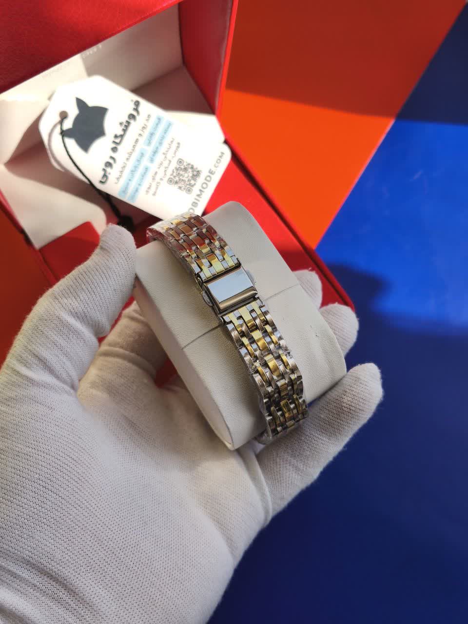 ساعت مچی عقربه ای زنانه مودیا MODAIYA پاپیونی با طراحی ظریف و خاص انتخابی متفاوت برای بانوان خوش سلیقه است. این مدل با بند نقره ای رگه طلایی و صفحه سفید جلوه ای شیک داشته و با طرح پاپیونی خاص زیبایی استایل شما را تکمیل می کند. بدنه از استیل رنگ ثابت ضد زنگ ساخته شده و دارای زیر ثانیه فعال و ضد آب می باشد. قفل کلیپسی ضامن دار صفحه ضد خط و خش بند ضد حساسیت پوستی و فرم صفحه مربع شکل از ویژگی های کاربردی آن است. این ساعت جذاب به همراه جعبه رایگان از فروشگاه اینترنتی روبی مد قابل سفارش می باشد.