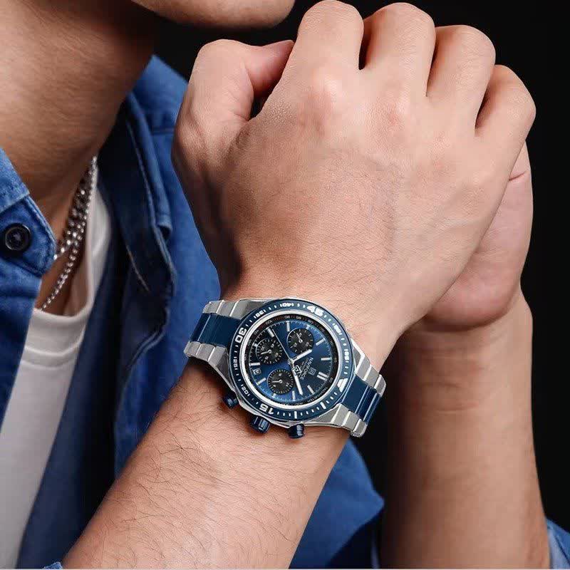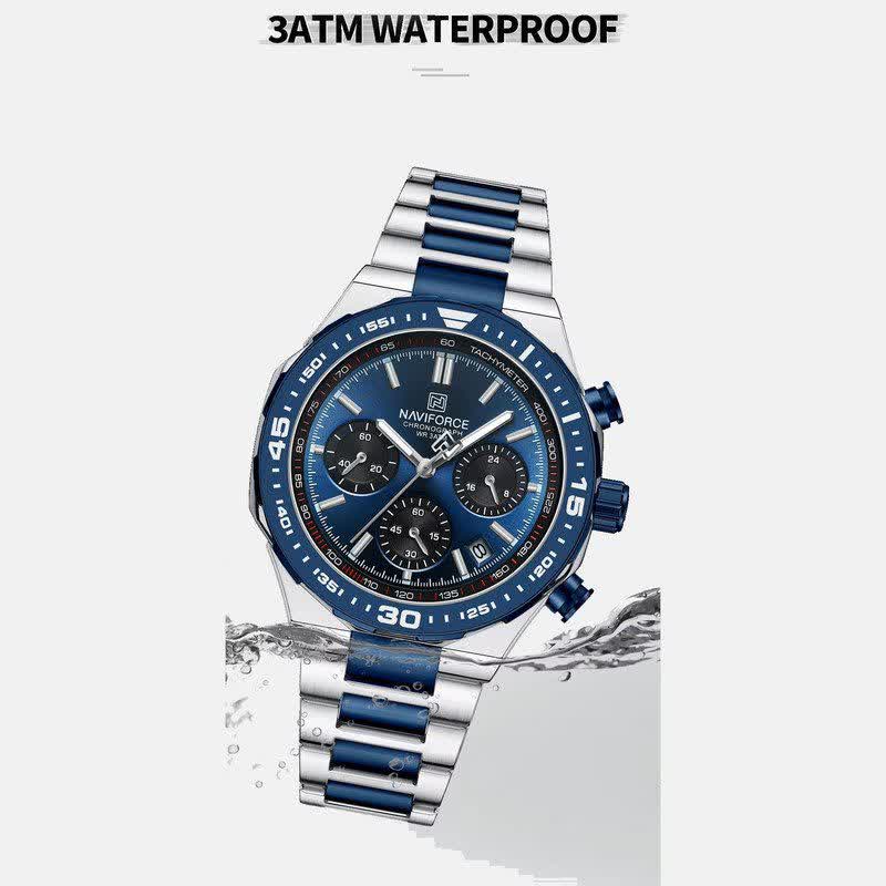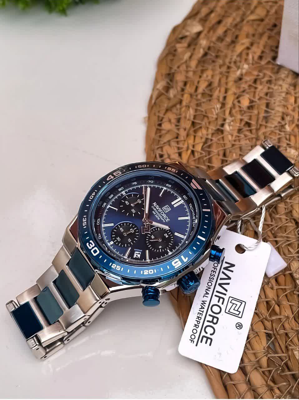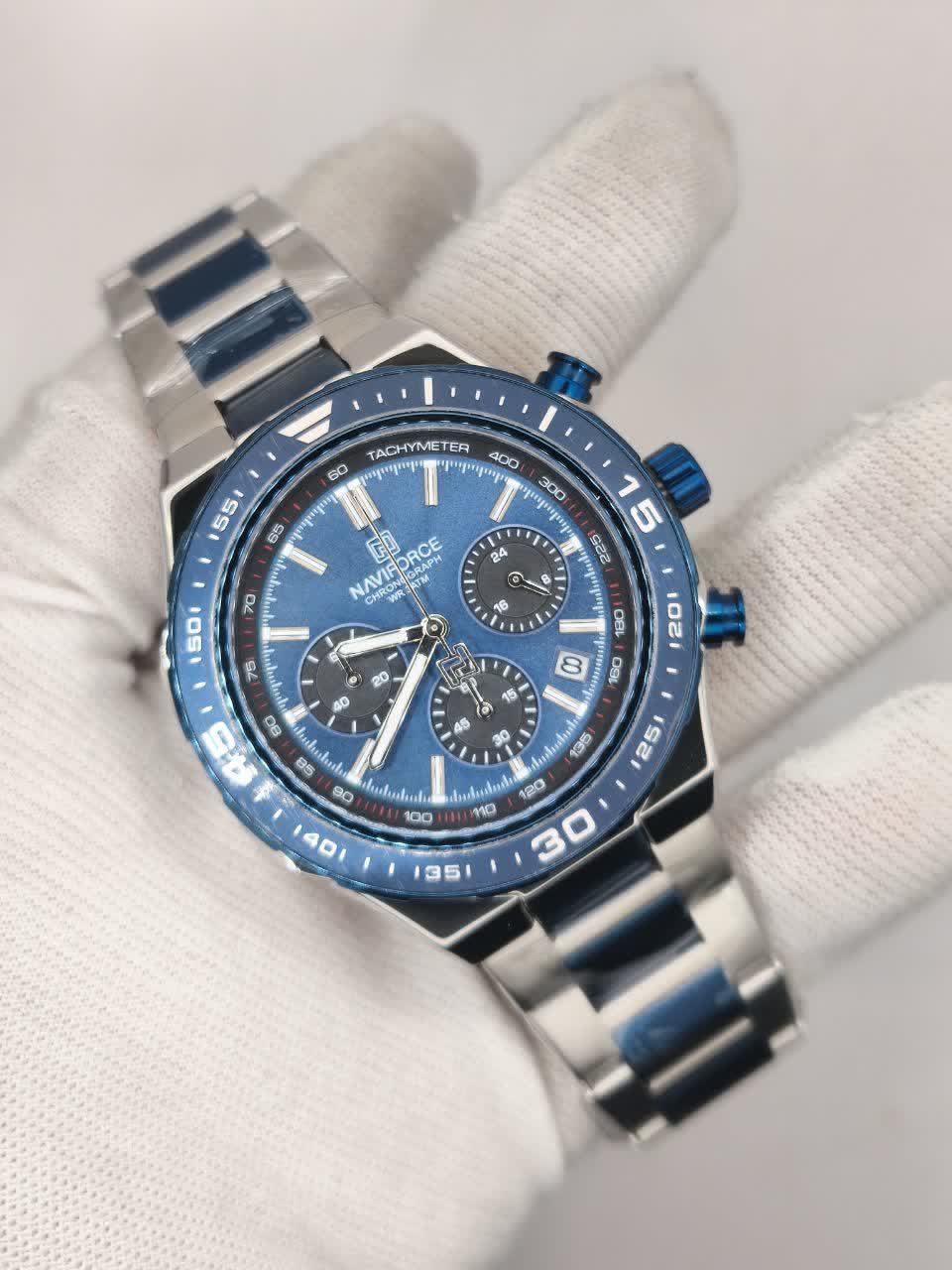 اگر به دنبال یک ساعت شیک و قدرتمند هستید ساعت مچي کرنوگراف مردانه نيوي فورس NAVIFORCE مدل Nf8049 موتور ژاپن انتخابی ایدهآل برای استایل رسمی و روزمره شماست. این مدل با رنگ بند استیل رگه آبی و صفحه آبی جذاب جلوهای خاص و متفاوت ایجاد میکند و با موتور ژاپن کوارتز و طراحی سه موتوره کرنوگراف عملکردی دقیق و حرفهای ارائه میدهد. قاب استیل مقاوم بند استیل ضد زنگ توپُر سنگین با قفل کلیپسی ضامن دار و بند ضد حساسیت پوستی دوام و راحتی را همزمان فراهم میکند. شیشه معدنی ضد خش عقربه شب تاب تقویم دار بودن و خاصیت ضد آب آن را به گزینهای کامل تبدیل کرده است. این محصول ارجینال همراه با کارت گارانتی و جعبه از فروشگاه اینترنتی روبی مد عرضه میشود تا با خیال راحت خرید کنید.