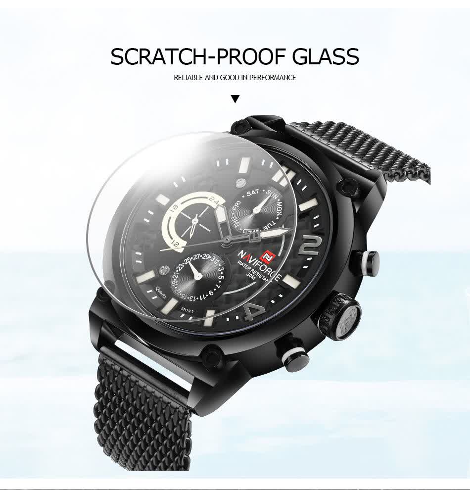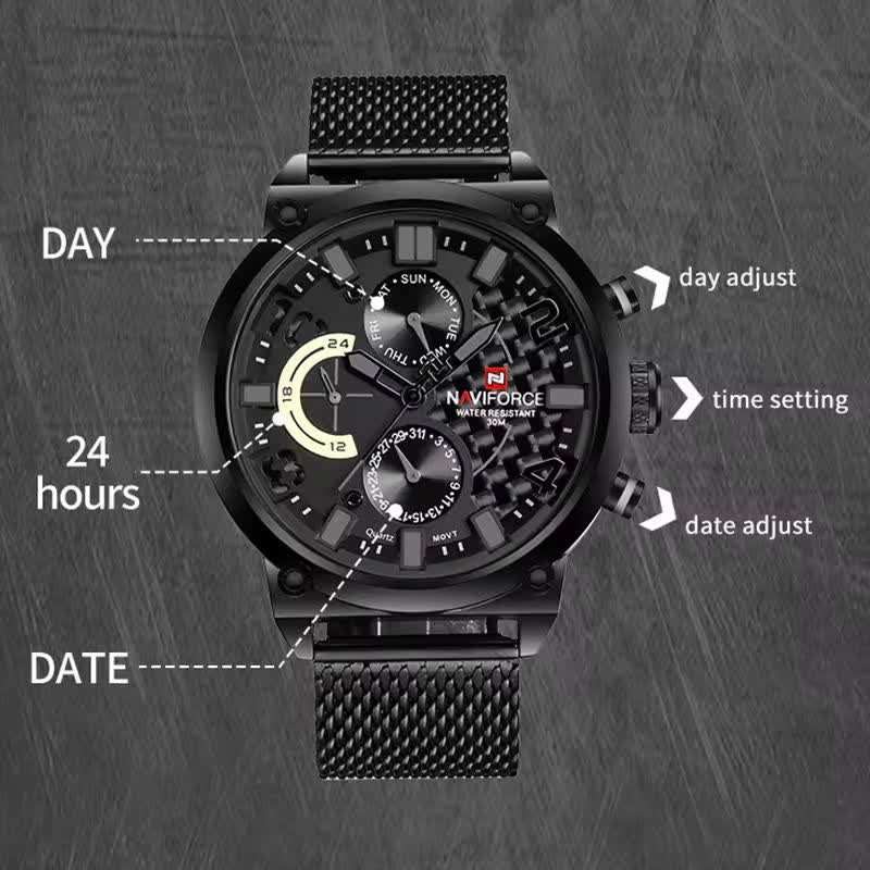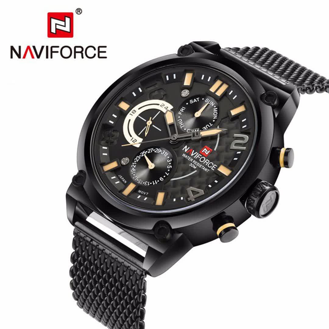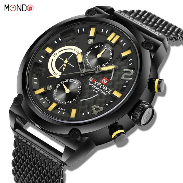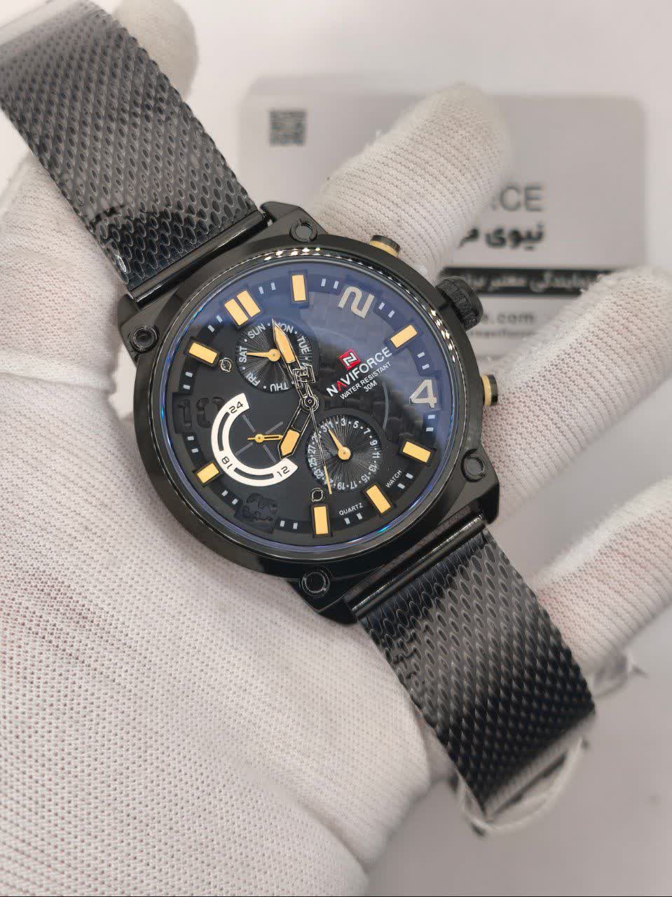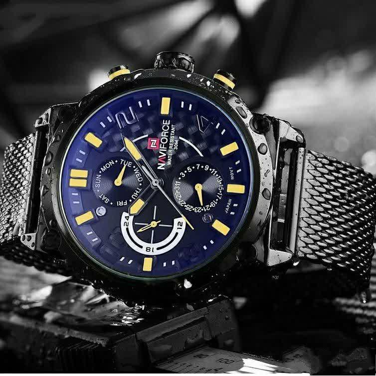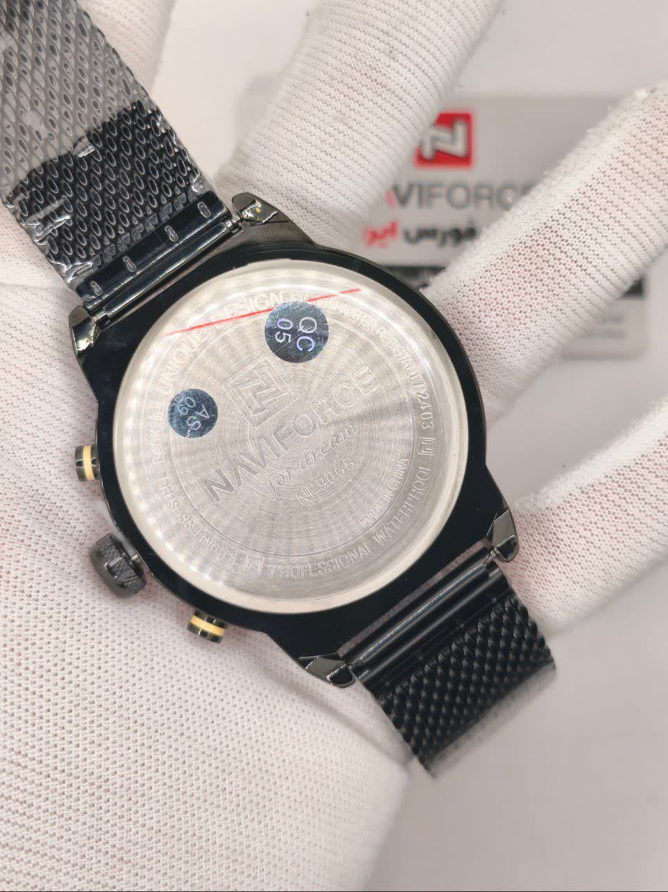 ساعت مچي کرنوگراف مردانه نيوي فورس NAVIFORCE مدل Nf9068s موتور ژاپني بند حصيري با طراحی جذاب رنگ بند مشکی و صفحه مشکی انتخابی خاص برای آقایان خوش استایل است. این مدل با موتور ژاپن کوارتز و سه موتور فعال کرنوگراف دقت و عملکرد حرفهای را در کنار نمایش ایام هفته ارائه میدهد. قاب استیل مقاوم به همراه بند حصیری رنجیری استیل توپُر سنگین با قفل فشاری ضامن دار علاوه بر استحکام دارای بند ضد حساسیت پوستی و راحتی بالا است. شیشه معدنی ضد خش عقربه شب تاب و خاصیت ضد آب آن را به گزینهای کاربردی برای استفاده روزمره تبدیل کرده است. این محصول ارجینال با کارت گارانتی و جعبه به همراه گارانتی نیوی فورس ایران از فروشگاه اینترنتی روبی مد عرضه میشود تا با اطمینان خرید کنید.