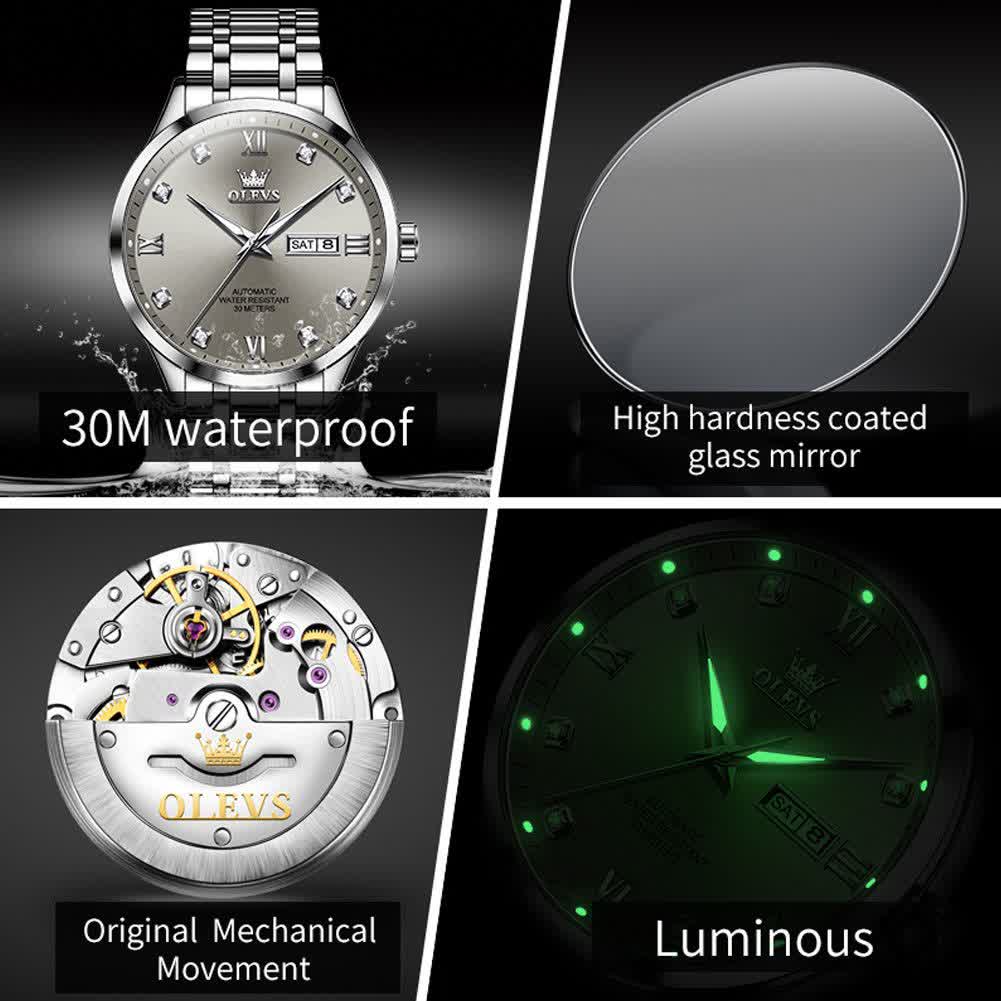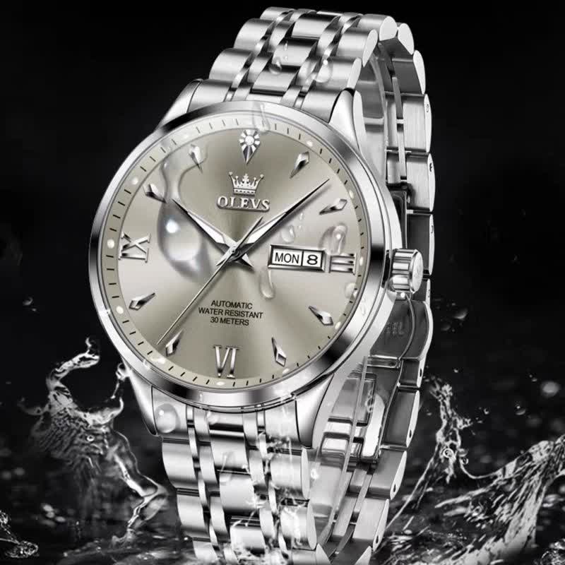 ساعت مچی مردانه اولوز OLEVS اورجینال استیل صفحه طوسی انتخابی لوکس و چشم نواز برای آقایان خوش پوش است که به کیفیت عالی اهمیت می دهند. این مدل با رنگ بند استیل و صفحه طوسی طرح الماس در فرم دایره ای طراحی شده و با قاب الماسی جلوه ای خاص ایجاد کرده است. موتور کوارتز با دقت بالا به همراه روز شمار و ایام هفته، صفحه و عقربه شب نما و خاصیت ضد آب کارایی کامل را فراهم می کند. شیشه سافایر ضد خط خش، بند استیل ضد زنگ رنگ ثابت وستاری رگه طلایی توپُر سنگین و ضد حساسیت پوستی در کنار قفل کلیپسی ضامن دار دوام و امنیت بالایی دارد. این ساعت اولوز اورجینال را می توانید با اطمینان از فروشگاه اینترنتی روبی مد تهیه کنید.
