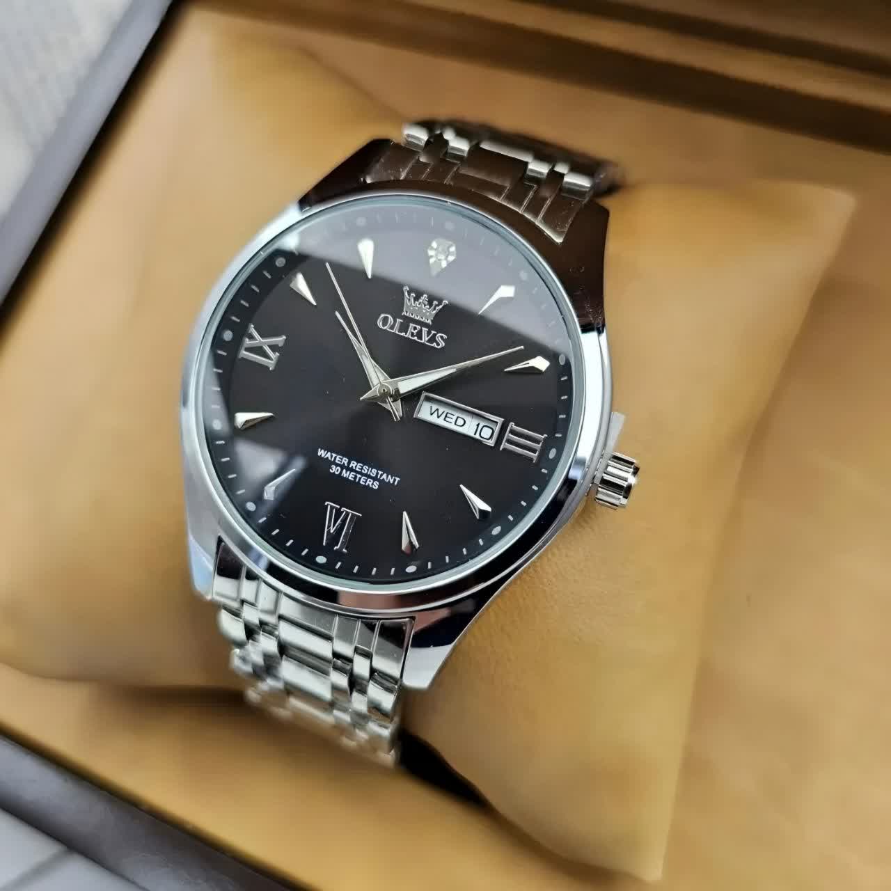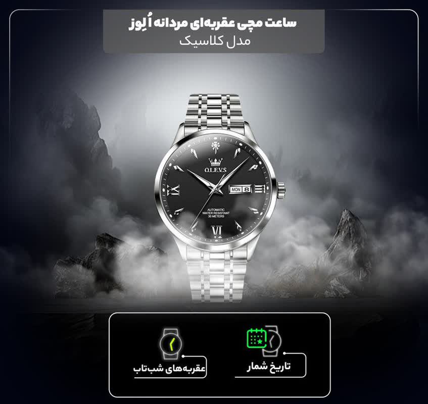 ساعت مچی مردانه اولوز OLEVS اورجینال استیل صفحه مشکی با طراحی شیک و فرم صفحه دایره ای، انتخابی خاص برای آقایان خوش سلیقه است که با بند استیل صفحه مشکی و بند وستاری رگه طلایی جلوه ای لوکس ایجاد می کند. این مدل با کیفیت عالی، موتور کوارتز با دقت بالا، قابلیت روز شمار و نمایش ایام هفته، همراه با صفحه طرح الماس و قاب الماسی عرضه شده و صفحه و عقربه شب نما خوانایی بالایی در تاریکی دارد. شیشه سافایر ضد خط خش، بدنه ضد آب و بند استیل ضد زنگ رنگ ثابت دوام و ماندگاری فوق العاده ای را تضمین می کند. بند توپُر و سنگین با قفل کلیپسی ضامن دار امنیت کامل روی دست ایجاد کرده و خاصیت ضد حساسیت پوستی راحتی بیشتری فراهم می سازد. این ساعت خاص را می توانید با اطمینان از اصالت کالا از فروشگاه اینترنتی روبی مد تهیه کنید.