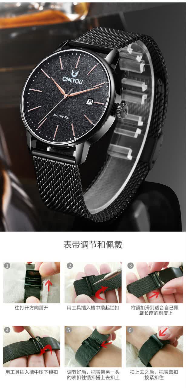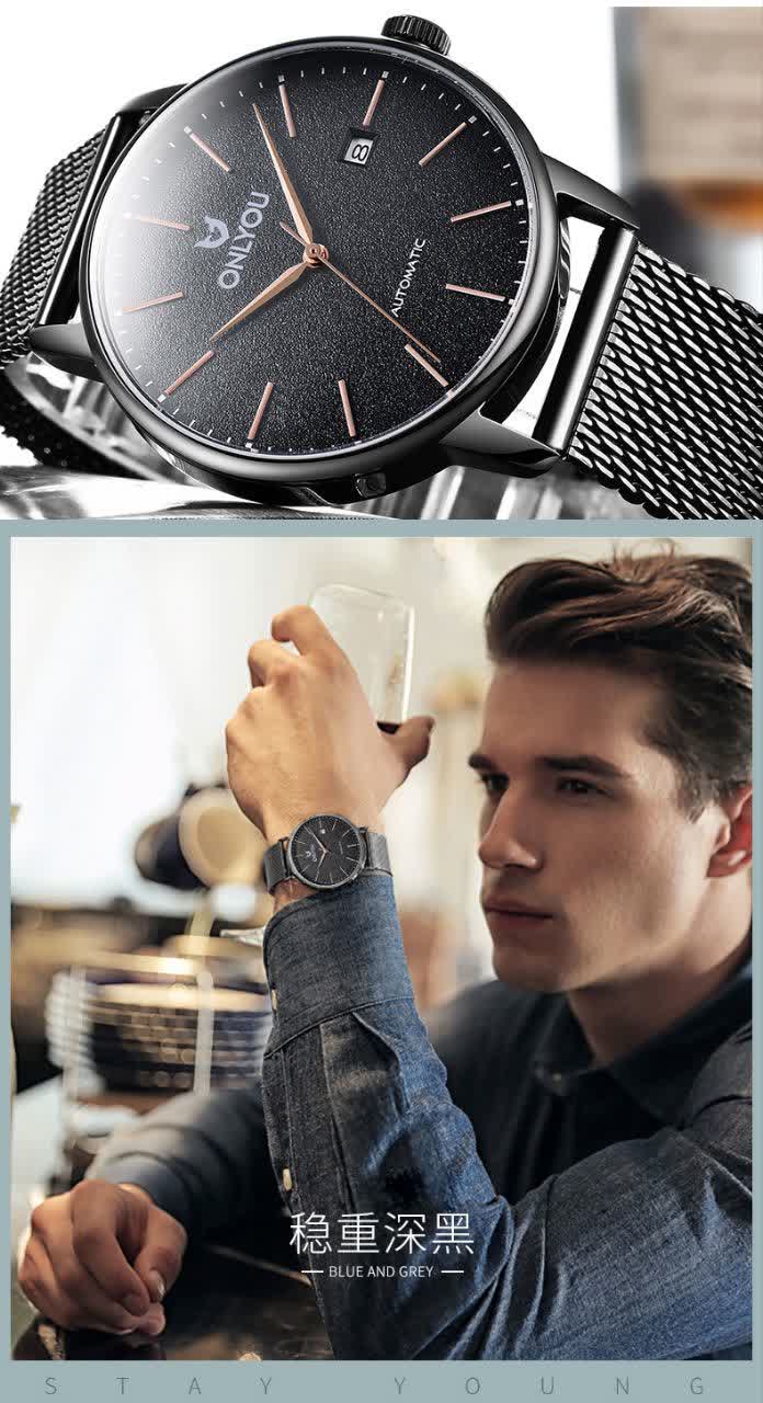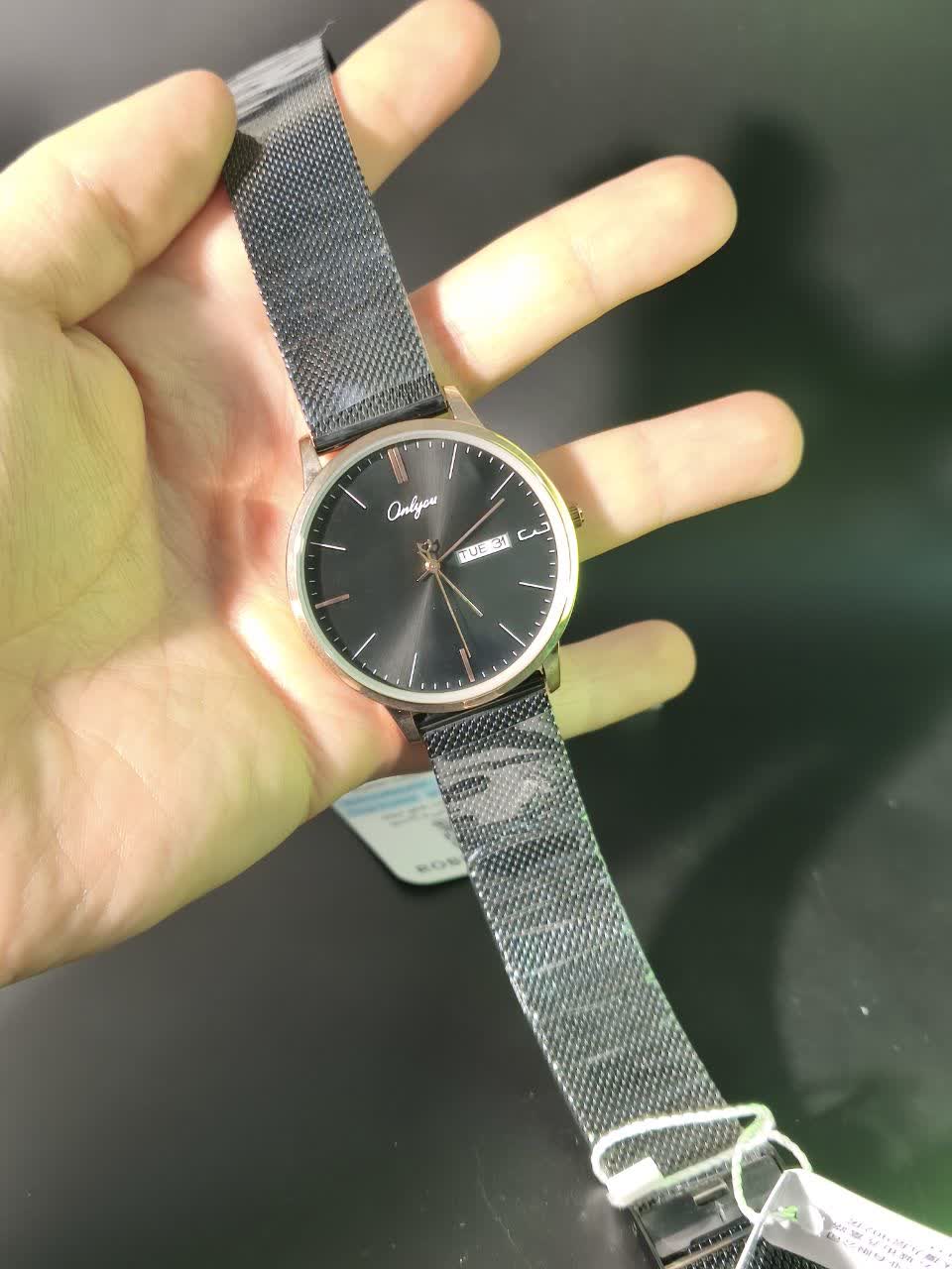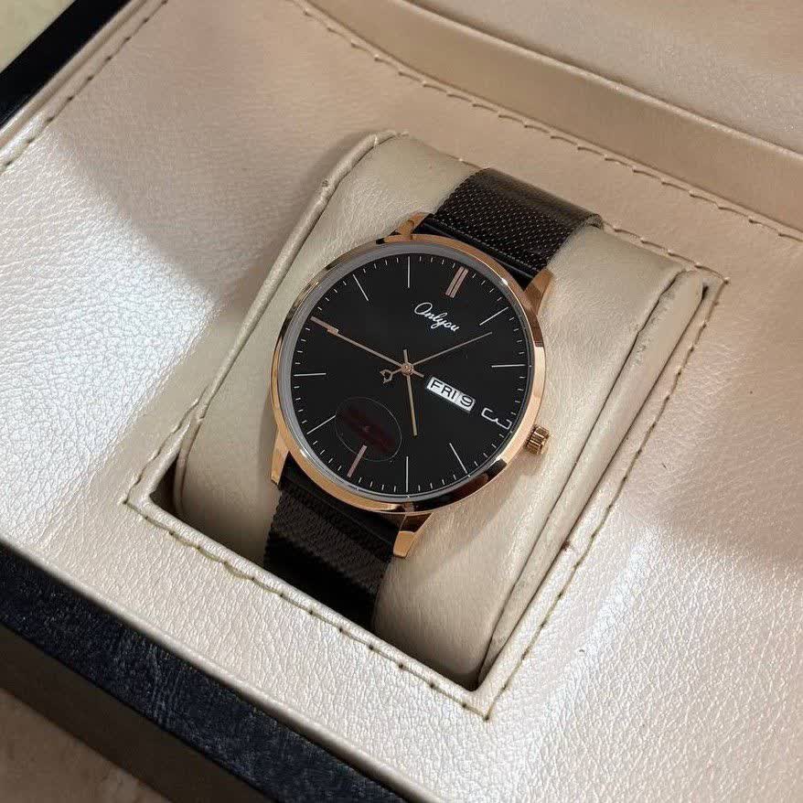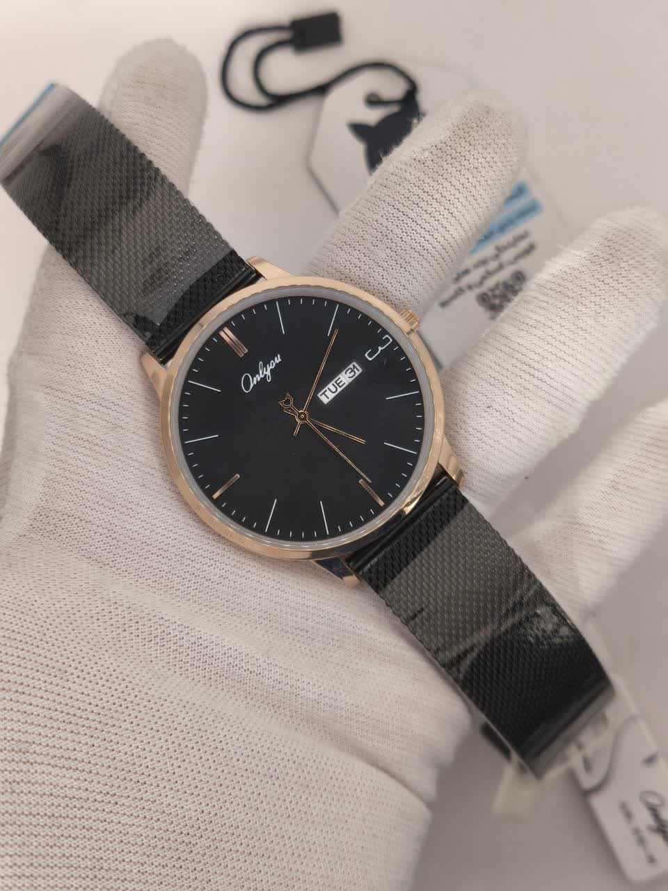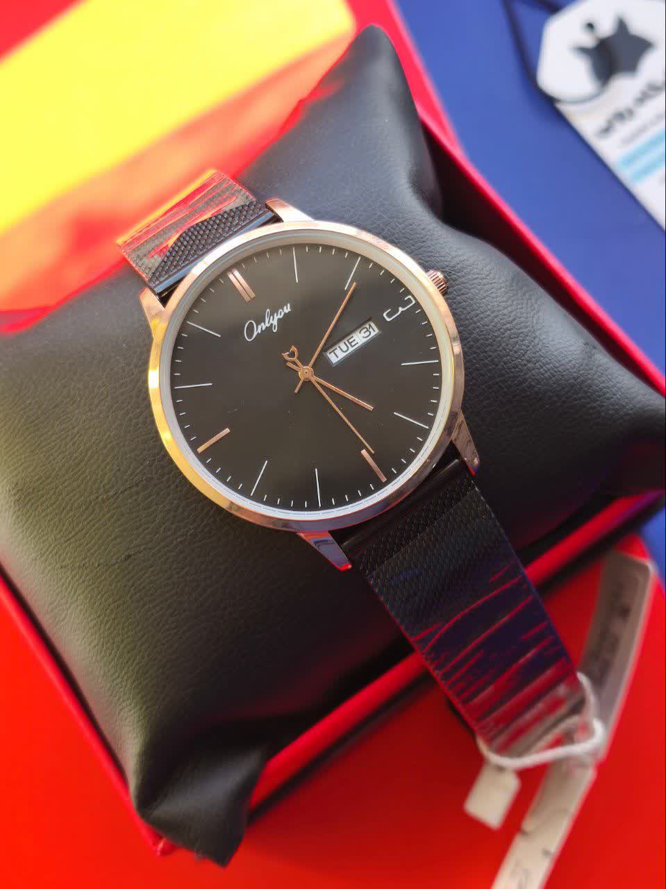 ساعت مچی مردانه کوارتز دو تاریخه موتور ژاپنی بند حصیری ONLYOU یک انتخاب خاص و تک تولید بدون نمونه مشابه برای آقایان شیک پوش است. این مدل با بند حصیری زنجیری استیل مشکی رنگ ثابت و ضد زنگ در کنار صفحه مشکی با قاب دور طلایی و فرم دایره ای جلوه ای متفاوت و جذاب ایجاد می کند. موتور ژاپن کوارتز با دقت بالا به همراه نمایش ایام هفته و تقویم عملکردی کامل ارائه می دهد و عقربه های شب تاب در کنار شیشه معدنی ضد خش کارایی آن را دو چندان کرده است. قاب استیل مقاوم خاصیت ضد آب بند ضد حساسیت پوستی و قفل فشاری ضامن دار امنیت و راحتی را تضمین می کند و بند به آسانی قابل کوچک و بزرگ کردن است. این ساعت بند استیل با کیفیت را می توانید با اطمینان از فروشگاه اینترنتی روبی مد تهیه کنید و استایلی خاص و ماندگار داشته باشید.