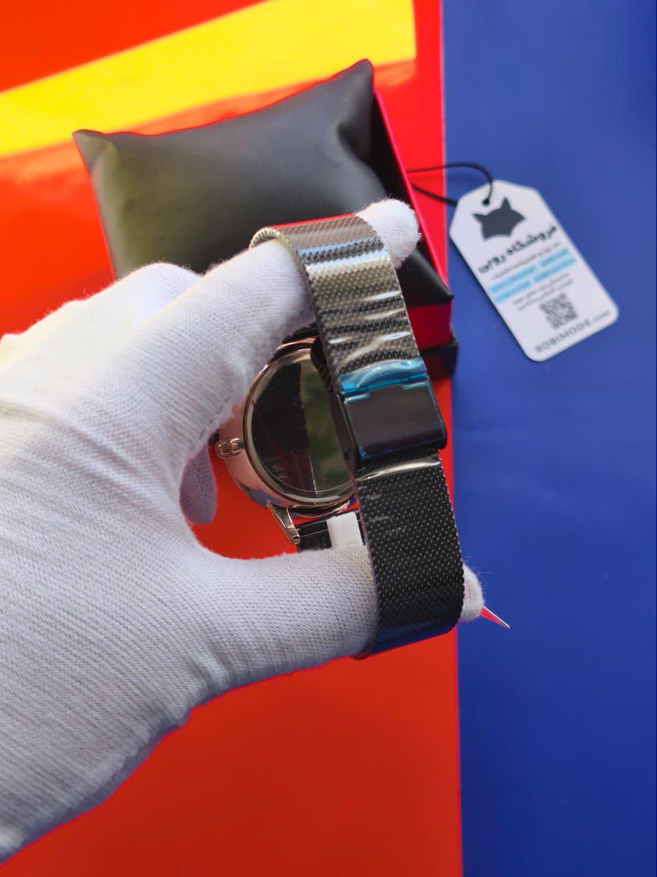 🌈 رنگ بند مشکی صفحه مشکی طاب دور ساعت طلایی می باشد