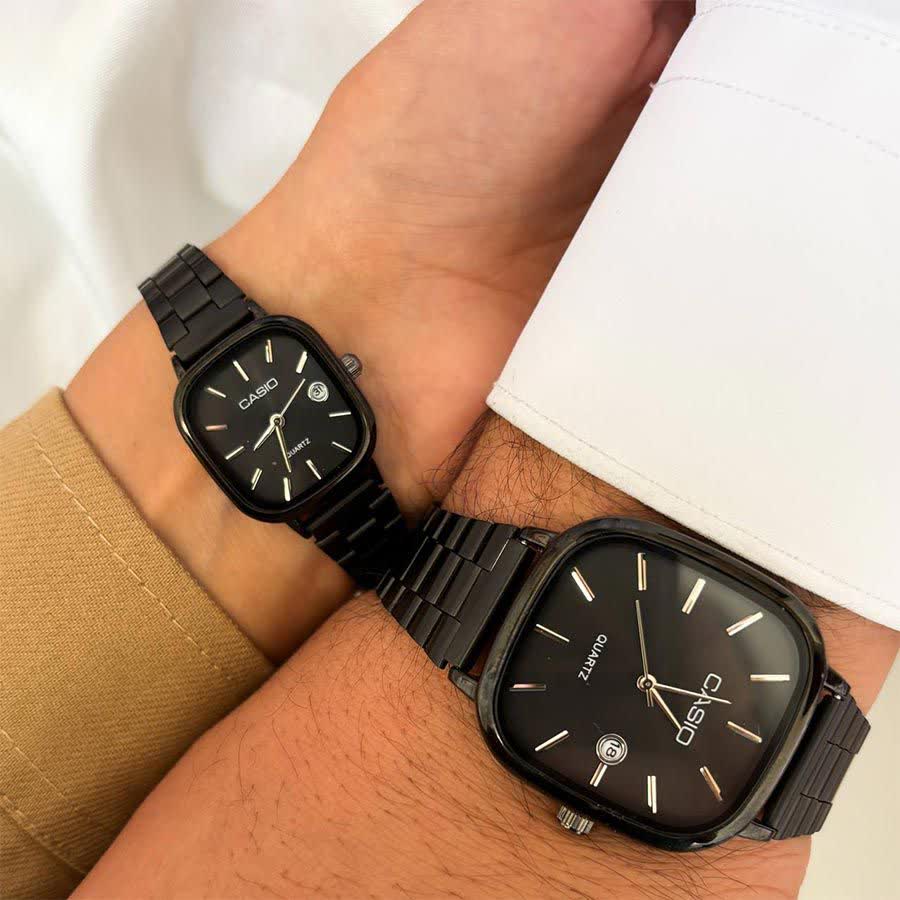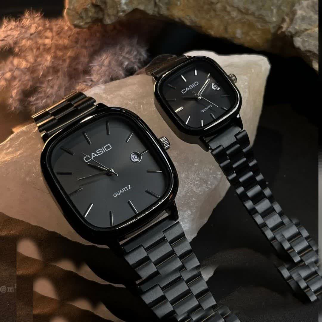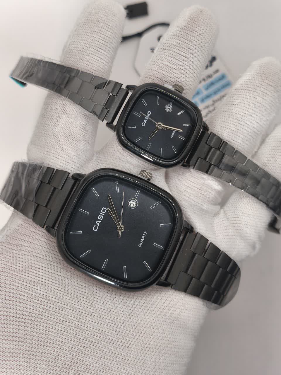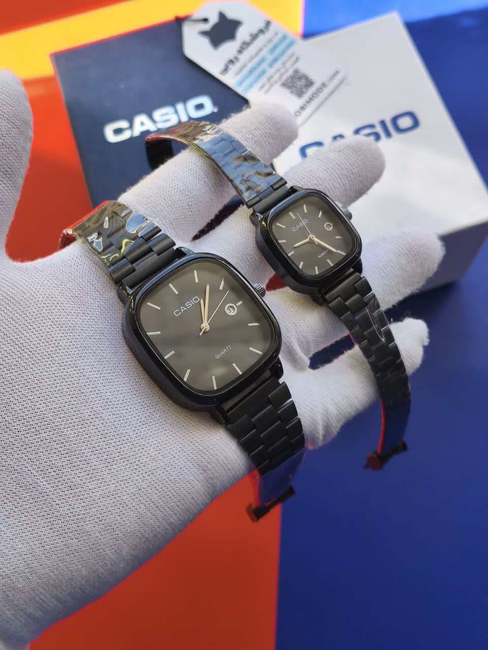 ست ساعت مچی زنانه و مردانه کاسیو اولدمانی CASIO فول بلک ژاپن با طراحی کلاسیک و استایل فول بلک شامل بند و صفحه مشکی یک انتخاب خاص و ترند اینستاگرام برای زوج های خوش سلیقه است. این مدل با کیفیت درجه یک و متفاوت با بازار عرضه شده و مجهز به موتور کوارتز شرکتی با موتور ژاپنی دقیق به همراه تقویم می باشد. بند استیل ضد زنگ رنگ ثابت و ضد حساسیت پوستی در کنار شیشه ضد خط و خش و خاصیت ضد آب دوام و ماندگاری بالایی را تضمین می کند. قفل آسان فشاری استفاده راحت و ایمن را فراهم کرده و رنگ های دیگر نیز موجود است که می توانید پیام دهید. این ست جذاب به همراه دو عدد جعبه رایگان از فروشگاه اینترنتی روبی مد قابل تهیه است و گزینه ای عالی برای هدیه و استفاده روزمره محسوب می شود.