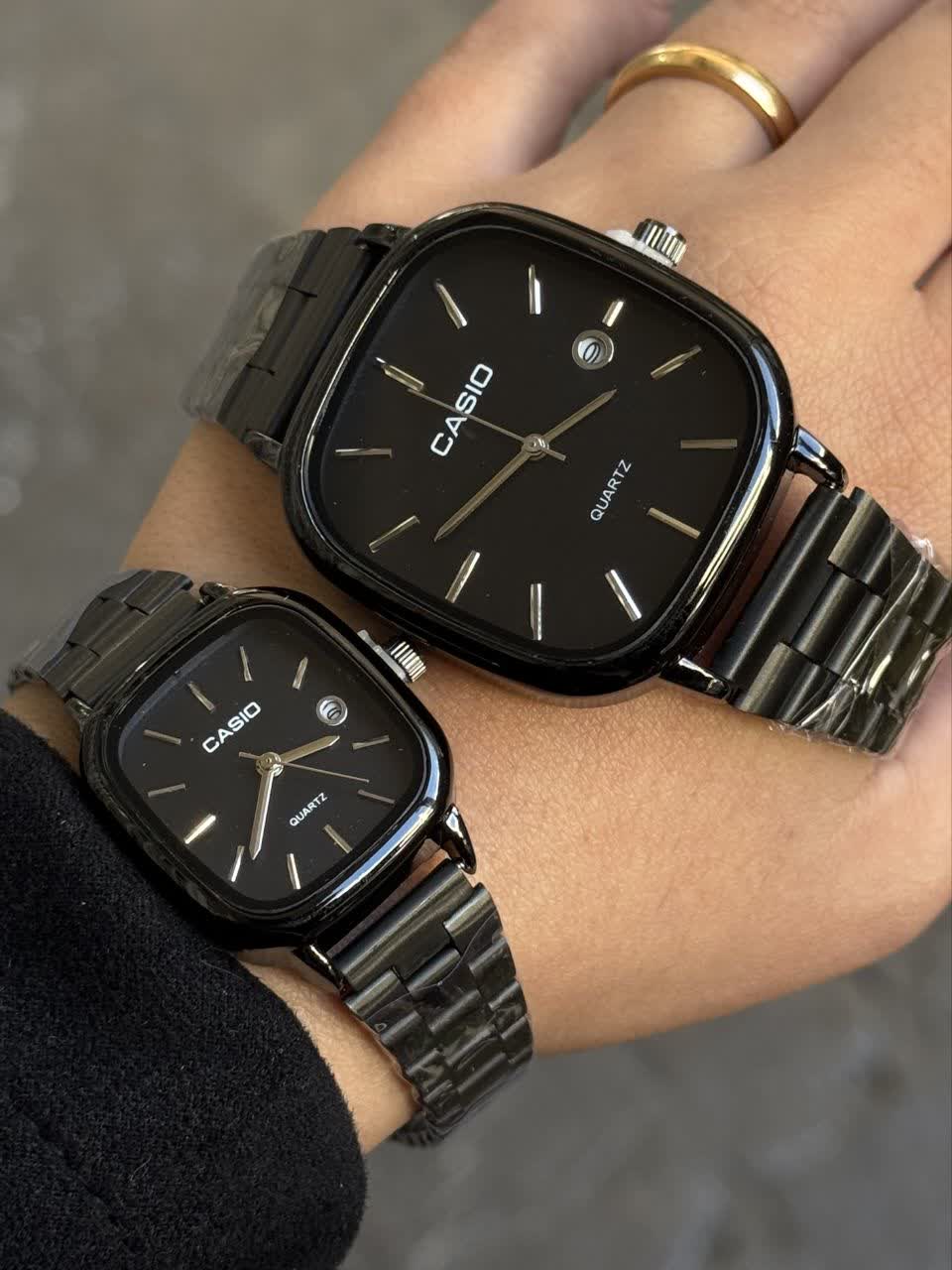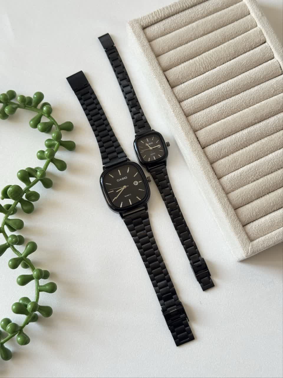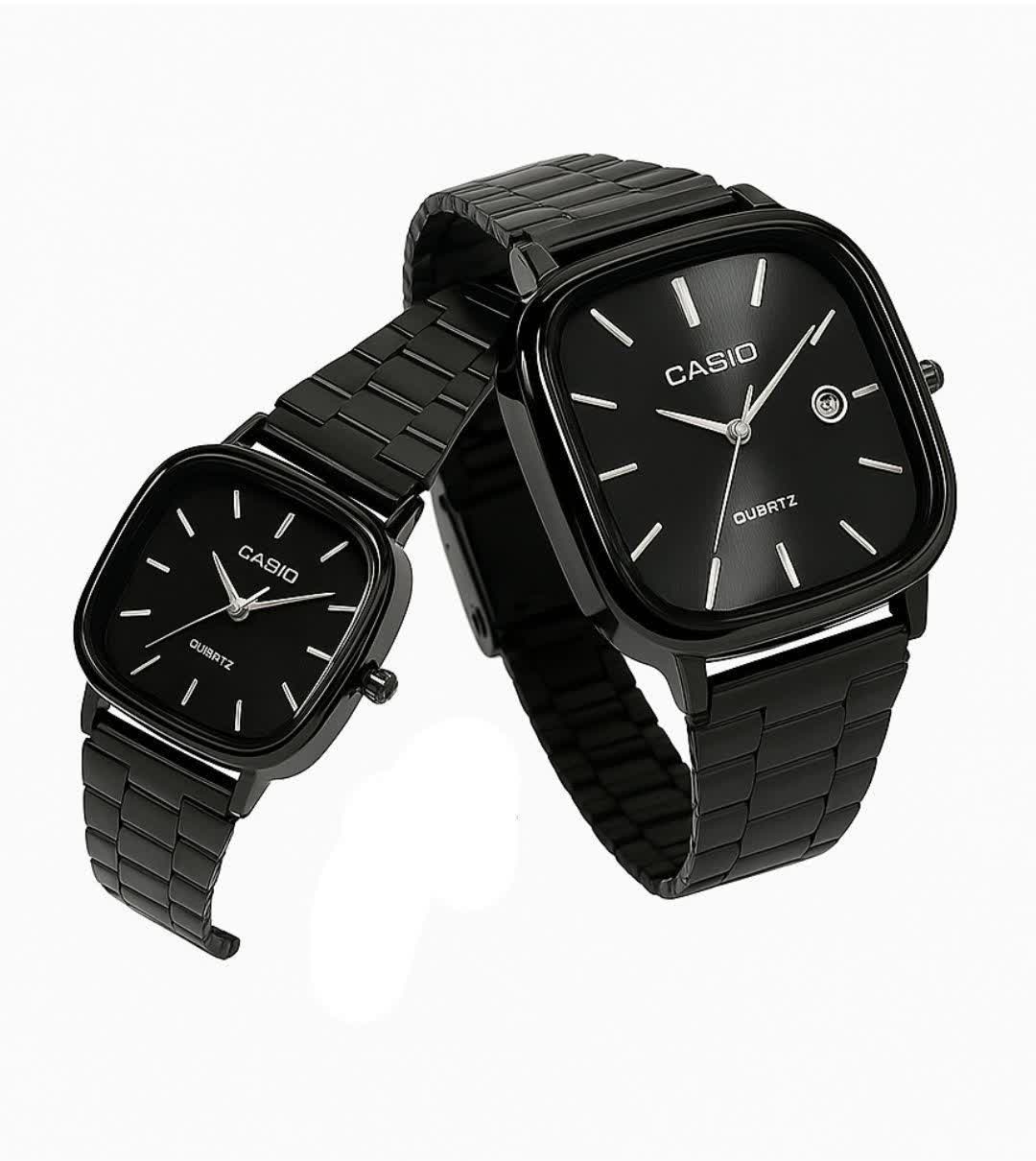 ست ساعت مچی زنانه و مردانه کاسیو اولدمانی CASIO فول بلک ژاپن با طراحی کلاسیک و استایل فول بلک شامل بند و صفحه مشکی یک انتخاب خاص و ترند اینستاگرام برای زوج های خوش سلیقه است. این مدل با کیفیت درجه یک و متفاوت با بازار عرضه شده و مجهز به موتور کوارتز شرکتی با موتور ژاپنی دقیق به همراه تقویم می باشد. بند استیل ضد زنگ رنگ ثابت و ضد حساسیت پوستی در کنار شیشه ضد خط و خش و خاصیت ضد آب دوام و ماندگاری بالایی را تضمین می کند. قفل آسان فشاری استفاده راحت و ایمن را فراهم کرده و رنگ های دیگر نیز موجود است که می توانید پیام دهید. این ست جذاب به همراه دو عدد جعبه رایگان از فروشگاه اینترنتی روبی مد قابل تهیه است و گزینه ای عالی برای هدیه و استفاده روزمره محسوب می شود.