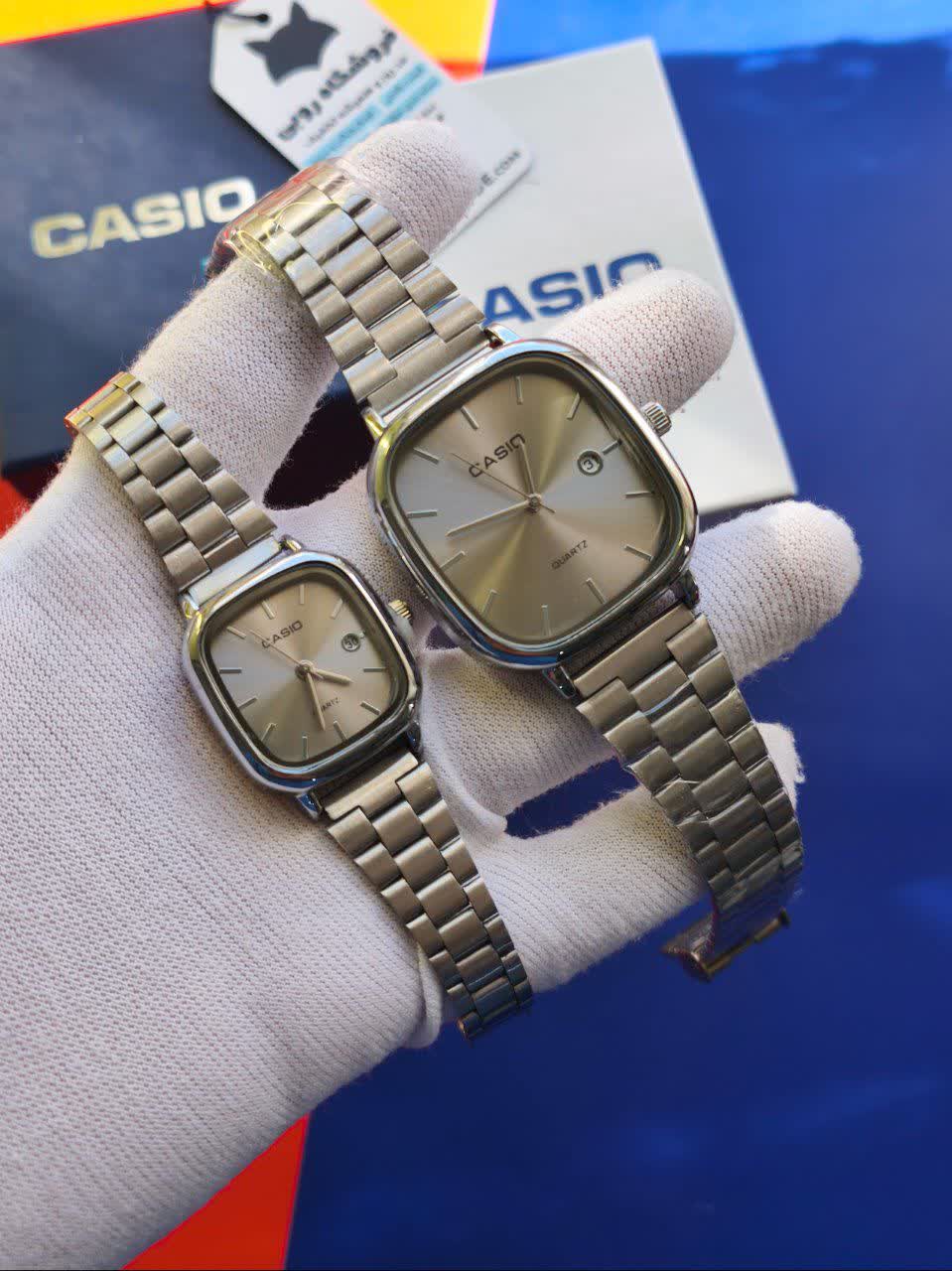 ست ساعت مچی زنانه و مردانه کاسیو اولد مانی CASIO صفحه طوسی ژاپن با طراحی کلاسیک و ترکیب بند نقره ای و صفحه طوسی انتخابی شیک و ترند اینستاگرام برای ست های دونفره خاص است. این مدل با کیفیت درجه یک و متفاوت با بازار عرضه شده و مجهز به موتور کوارتز شرکتی با موتور ژاپنی دقیق به همراه تقویم می باشد. بند استیل ضد زنگ رنگ ثابت و ضد حساسیت پوستی در کنار شیشه ضد خط و خش و خاصیت ضد آب دوام و ماندگاری بالایی را تضمین می کند. قفل آسان فشاری استفاده راحت و ایمن را فراهم کرده و رنگ های دیگر نیز موجود است که می توانید پیام دهید. این ست جذاب به همراه دو عدد جعبه رایگان از فروشگاه اینترنتی روبی مد قابل تهیه است و گزینه ای عالی برای هدیه و استفاده روزمره محسوب می شود.