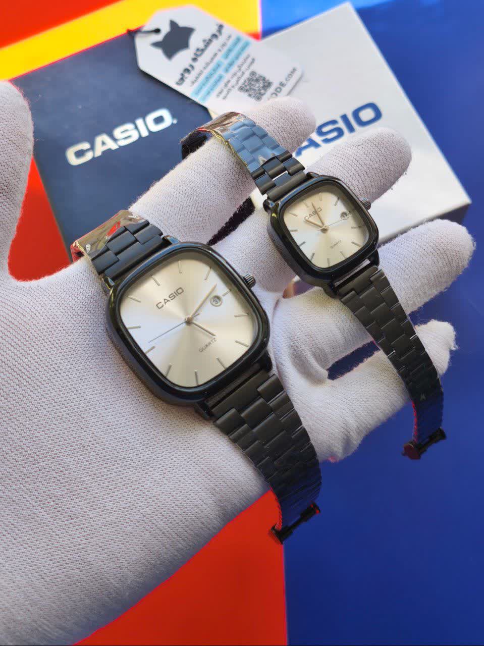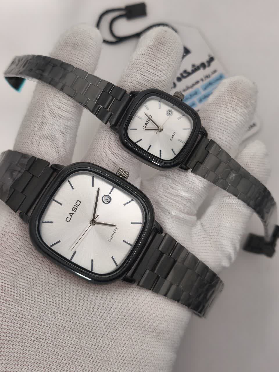 ست ساعت مچی زنانه و مردانه کاسیو اولدمانی CASIO صفحه سفید ژاپن با طراحی کلاسیک و ترکیب بند مشکی و صفحه سفید انتخابی شیک و ترند اینستاگرام برای زوج های خوش سلیقه است. این مدل با کیفیت درجه یک و متفاوت با بازار عرضه شده و مجهز به موتور کوارتز شرکتی با موتور ژاپنی دقیق به همراه تقویم می باشد. بند استیل ضد زنگ رنگ ثابت و ضد حساسیت پوستی در کنار شیشه ضد خط و خش و خاصیت ضد آب دوام و ماندگاری بالایی را تضمین می کند. قفل آسان فشاری استفاده راحت و ایمن را فراهم کرده و رنگ های دیگر نیز موجود است که می توانید پیام دهید. این ست جذاب به همراه دو عدد جعبه رایگان از فروشگاه اینترنتی روبی مد قابل تهیه است و گزینه ای عالی برای هدیه و استفاده روزمره محسوب می شود.