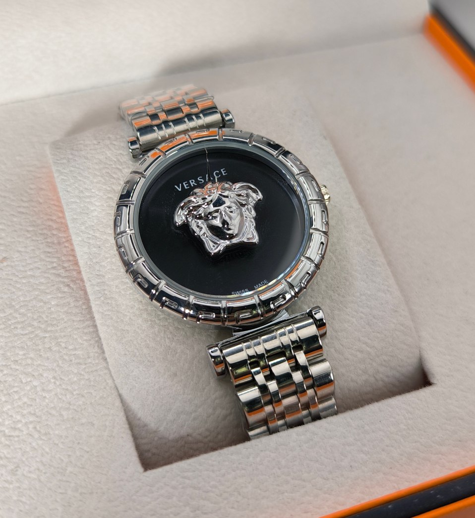 ساعت زنانه نقرهای از برند لوکس ورساچه با طراحی خاص و تندیس برجسته لوگوی ورساچه روی صفحه جلوهای بینظیر به استایل شما میبخشد این مدل با بند استیل مقاوم و قفل پروانهای مخفی علاوه بر زیبایی از راحتی و امنیت برخوردار است شیشه هارد گلش ضد خش و قابلیت ضد آب بودن آن تضمین دوام بالا در استفاده روزمره را فراهم میکند موتور ژاپنی دقیق و قدرتمند این ساعت عملکردی مطمئن را ارائه میدهد و همراه با جعبه شکیل تقدیم میگردد این محصول خاص و متفاوت با نمونههای بازاری را میتوانید از فروشگاه اینترنتی روبی مد تهیه کنید و تجربهای متفاوت از خرید ساعت داشته باشید.