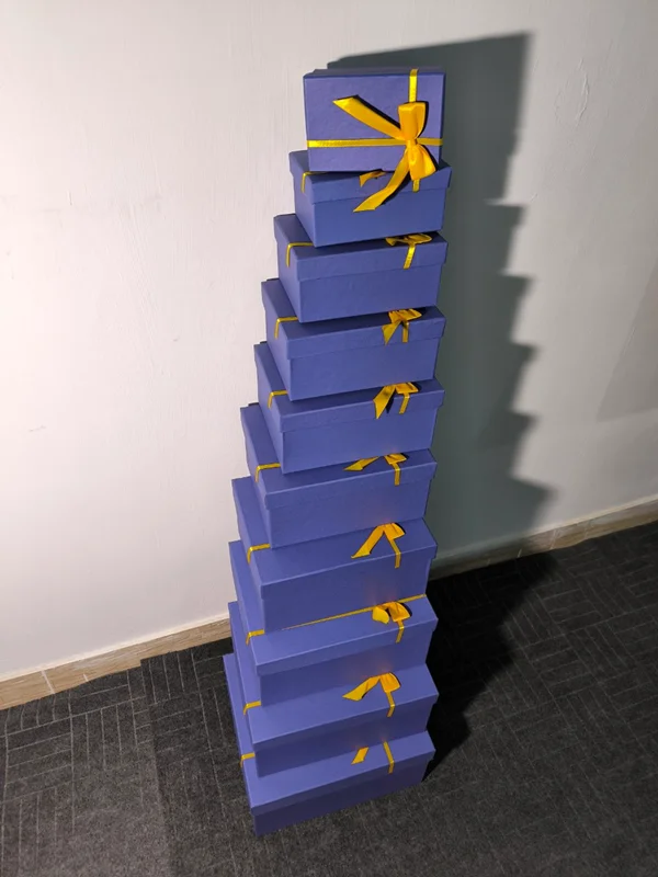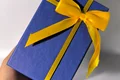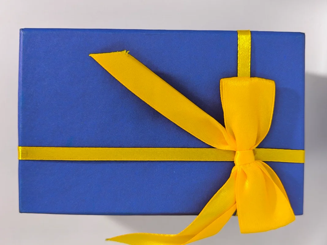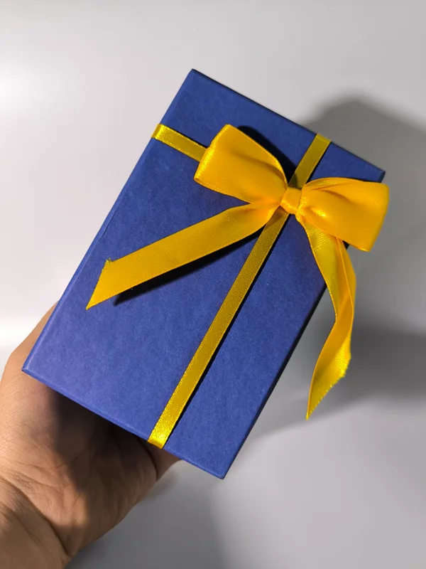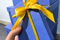 جعبه کادویی آبی ربان طلایی در ده سایز مختلف