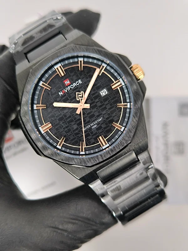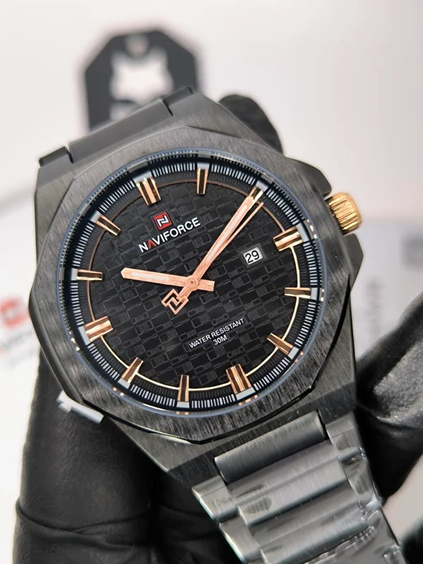 ساعت مچی استیل مردانه نیوی فورس مدل Nf9245 ترکیبی از طراحی مدرن و عملکرد دقیق است که برای آقایان خوشسلیقه ساخته شده برند نیوی فورس با تمرکز بر تولید ساعتهای اسپرت و مقاوم توانسته جایگاه ویژهای در بین طرفداران ساعتهای باکیفیت پیدا کند این مدل با موتور کوارتز دقیق، تقویم روزانه، صفحه شبنما، شیشه معدنی ضد خش و قفل سهتکه ضامندار عرضه میشود همچنین کاملاً ضد آب بوده و بهصورت ارجینال همراه با کارت گارانتی و جعبه اصلی ارائه میگردد برای خرید این ساعت خاص و شیک کافیست به فروشگاه اینترنتی روبی مد مراجعه کنید و استایل خود را حرفهایتر کنید.