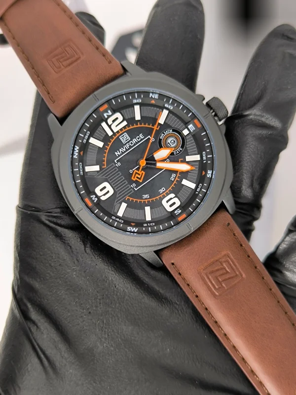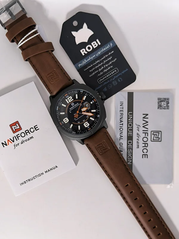 ساعت مچی عقربه ای مردانه نیوی فورس مدل Nf8078 یکی از انتخابهای خاص و باکیفیت برای آقایان خوشاستایل است برند نیوی فورس با طراحیهای مدرن و دوام بالا در ساخت ساعتهای اسپرت و کلاسیک شناخته میشود و در بین جوانان محبوبیت زیادی دارد این مدل با موتور کوارتز دقیق، تقویم روزانه، بند چرمی دور دوخت ضد تعریق، شیشه معدنی مقاوم، رنگ ثابت و قفل سگکی عرضه میشود همچنین کاملاً ضد آب بوده و بهصورت اورجینال همراه با کارت گارانتی و جعبه اصلی ارائه میگردد برای تهیه این ساعت خاص و جذاب کافیست به فروشگاه اینترنتی روبی مد مراجعه کنید و استایل خود را به سطحی حرفهایتر ارتقا دهید.