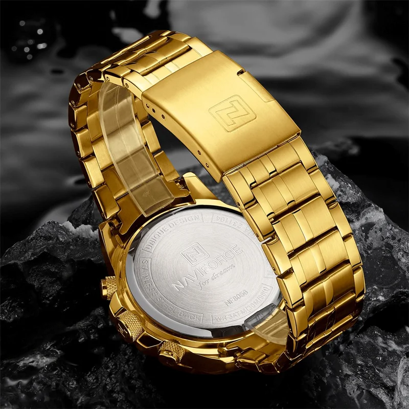 ساعت مچی ارجینال نیوی فورس NAVIFORCE مدل Nf8056 #مردانه #کد28490🏷️قیمت تخفیفی 1750 (ارسال رایگان) ❌ قیمت فروشگاه های رقیب 2+م🌈 رنگ تمام طلایی ▫️ارجینال با کارت گارانتی و جعبه ▫️تقویم دار▫️موتور ژاپن▫️ سه موتور فعال ▫️تقویم دار ▫️ضد آب ▫️بند استیل توپُر▫️شیشه معدنی ضد خش ▫️رنگ ثابت تضمینی ☑️ جذابیت دو چندان