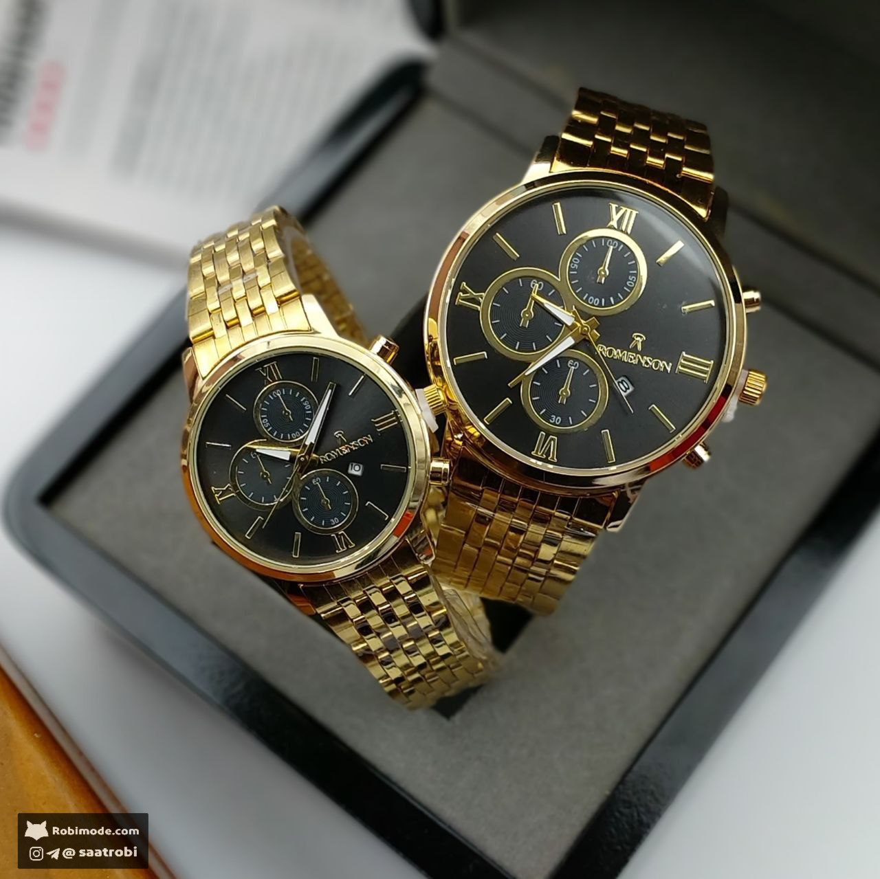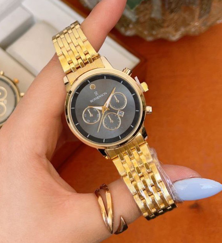 ساعت مچی زنانه رومانسون ROMANSON 🏷️قیمت تخفیفی 650 (ارسال رایگان) ❌ قیمت فروشگاه های دیگر 900+ت🌈 بند طلایی آجری صفحه مشکی ▫️دارای روز شمار▫️قفل کلیپسی ▫️بند استیل ▫️موتورکوارتز▫️طرح کرنوگراف ▫️رنگ طلایی ☑️ مناسب سخت پسند ها