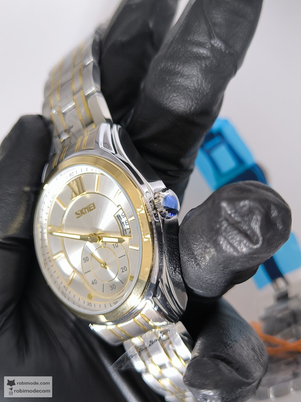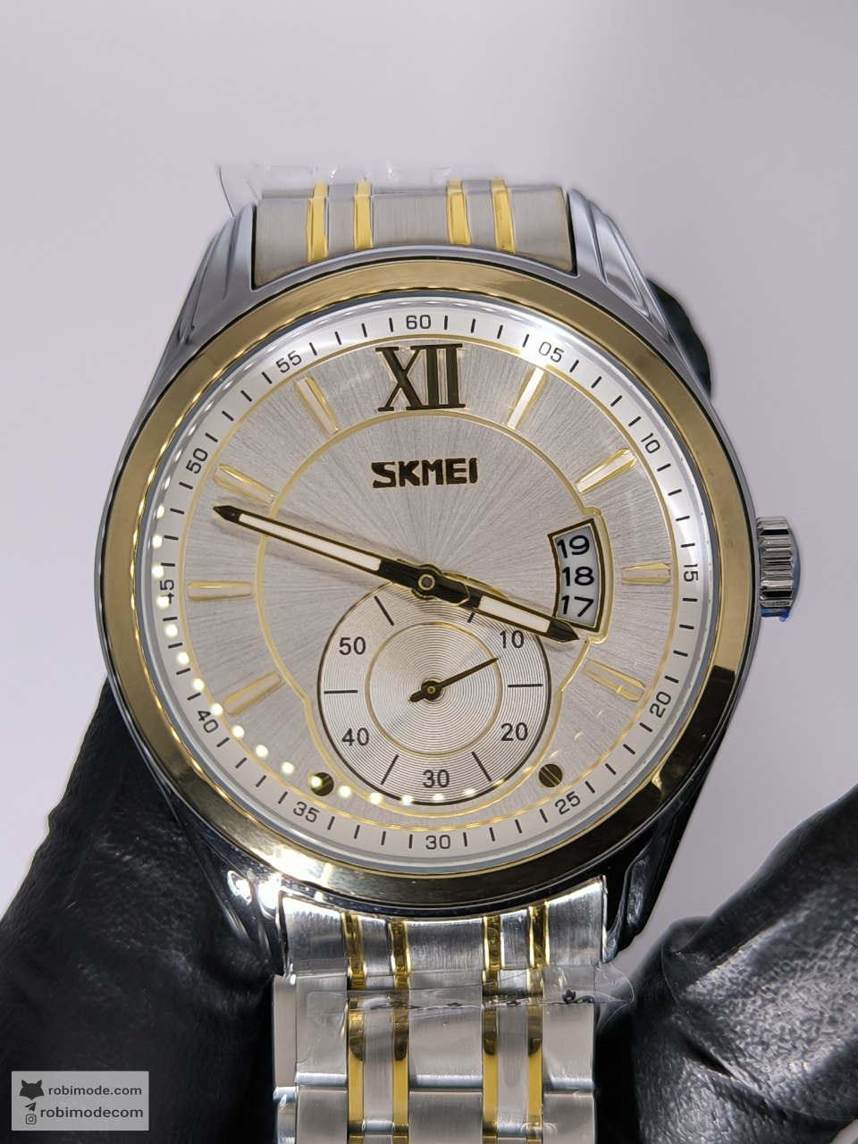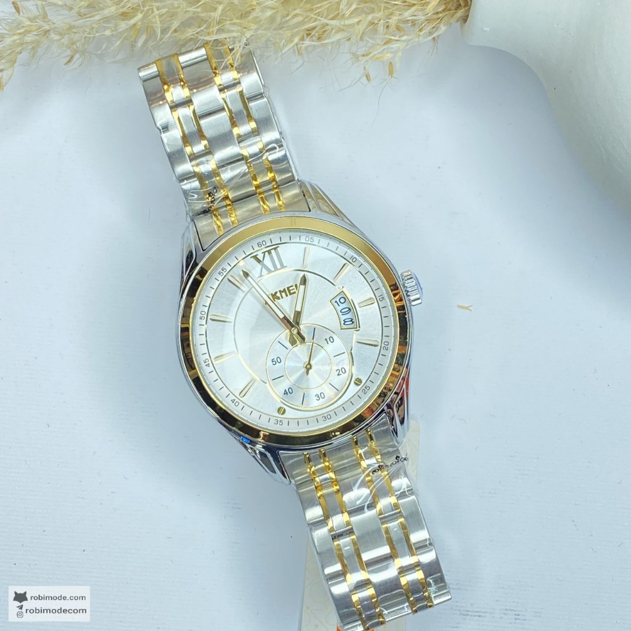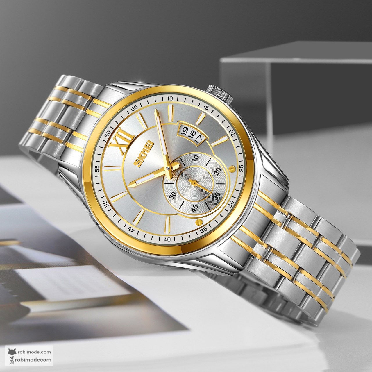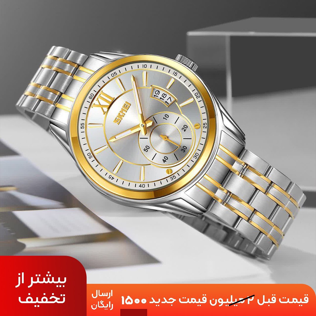 ساعت مردانه اسکمی SKMEI اصل مدل 9319 🔻در طرح بیشتر از تخفیف🔺🏷️قیمت تخفیفی 1500 (ارسال رایگان) 🌈 رنگ نقره ای رگه طلایی ▫️قفل مخفی ▫️ضمانت ۱ ساله▫️ کژوال، لوکس، رسمی و کلاسیک▫️ضد آب صدرصد ▫️ارجینال ▫️بند استیل ضد زنگ ▫️تقویم دار ▫️شیشه معدنی ضد خش ▫️نوع قفل کلیپسی ضامن دار☑️ ساده ولی همیشه جذاب و مدروز