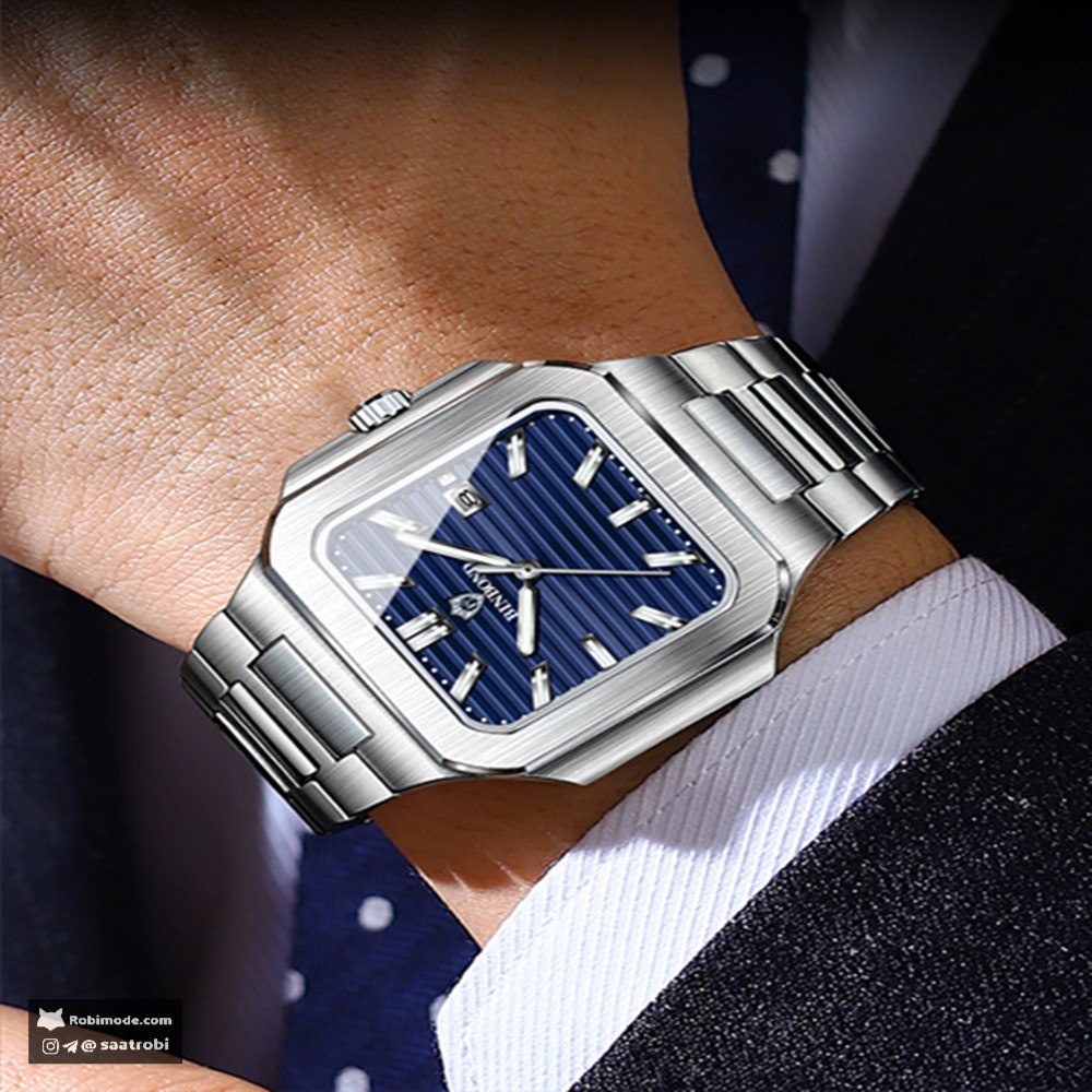 توضیحات بیشتر: ساعت مچی مردانه بین باند BIN BOND ارجینال با طراحی شرکتی و بند استیل فولاد انتخابی شیک و مقاوم برای آقایان خوشسلیقه است این مدل با قطر صفحه ۴۵ میلیمتر و ضخامت ۱۱ میلیمتر عرضه شده و دارای شیشه سافایر ضدخش موتور کوارتز دقیق و قابلیت شبنماست همچنین ویژگیهایی مثل روز شمار مقاومت در برابر آب قفل دو پروانه و کارت گارانتی معتبر آن را به گزینهای مطمئن تبدیل کرده است این محصول از طریق فروشگاه اینترنتی روبی مد قابل تهیه است.