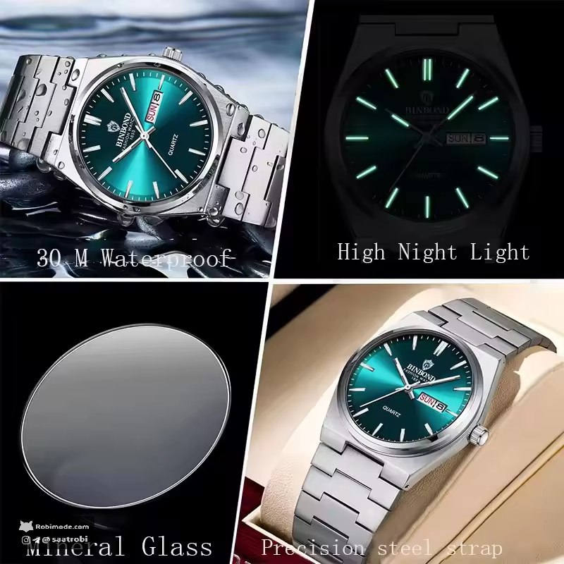 ساعت مچی عقربه ای مردانه بین باند BIN BOND ارجینال در شیش رنگ
