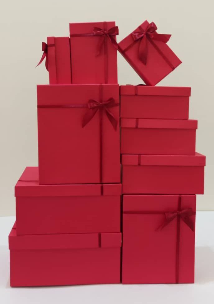 جعبه کادویی قرمز ربان کرمی در ده سایز مختلف